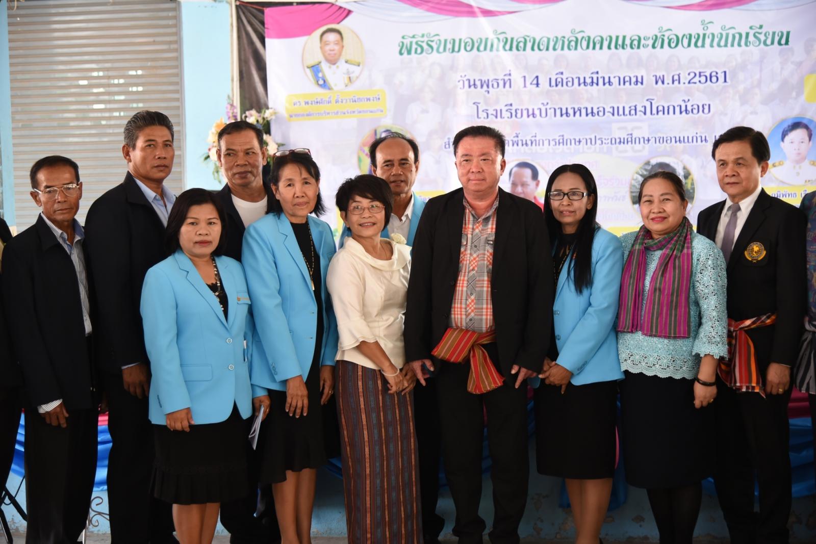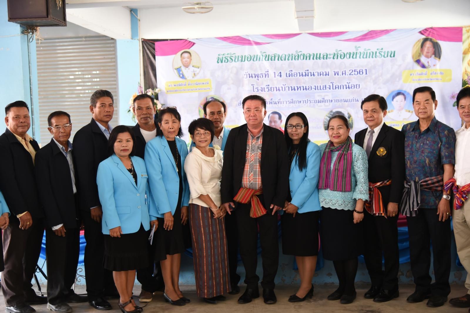 เมื่อ 14 มีนาคม 2561 นายกองค์การบริหารส่วนจังหวัดขอนแก่น ดร.พงษ์ศักดิ์ ตั้งวานิชกพงษ์ เป็นประธานในพิธีมอบหลังคากันสาดและห้องน้ำนักเรียน โรงเรียนหนองแสงโคกน้อย โดยมี ดร.วรโชติ พัฒน์ดำรงจิตร ประธานสโมสรไทย-เดนมาร์ค หนองเรือ ประธานคณะกรรมการสถานศึกษาขั้นพื้นฐานโรงเรียนสนามบิน ดร.สายัณห์ ผาน้อย รองอธิการบดีวิทยาลัยบัณฑิตเอเชีย นางประภาพร สำเรียงจิตร รองผอ. สพป.ขอนแก่น เขต 1 นายอร่าม ลอยคลัง ผอ.รร.หนองแสงโคกน้อย ตลอดจนผู้นำชุมชน ผู้ปกครองนักเรียน คณะครูโรงเรียนบ้านหนองแสงโคกน้อยร่วมเป็นเกียรติ ณ โรงเรียนบ้านหนองแสงโคกน้อย ตำบลพระลับ อำเภอเมือง จังหวัดขอนแก่น