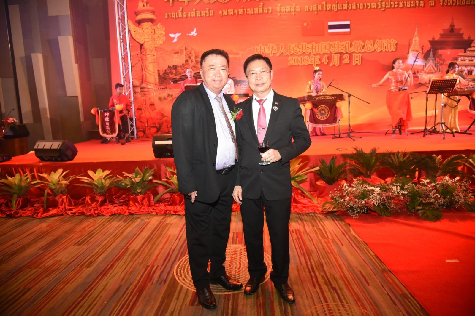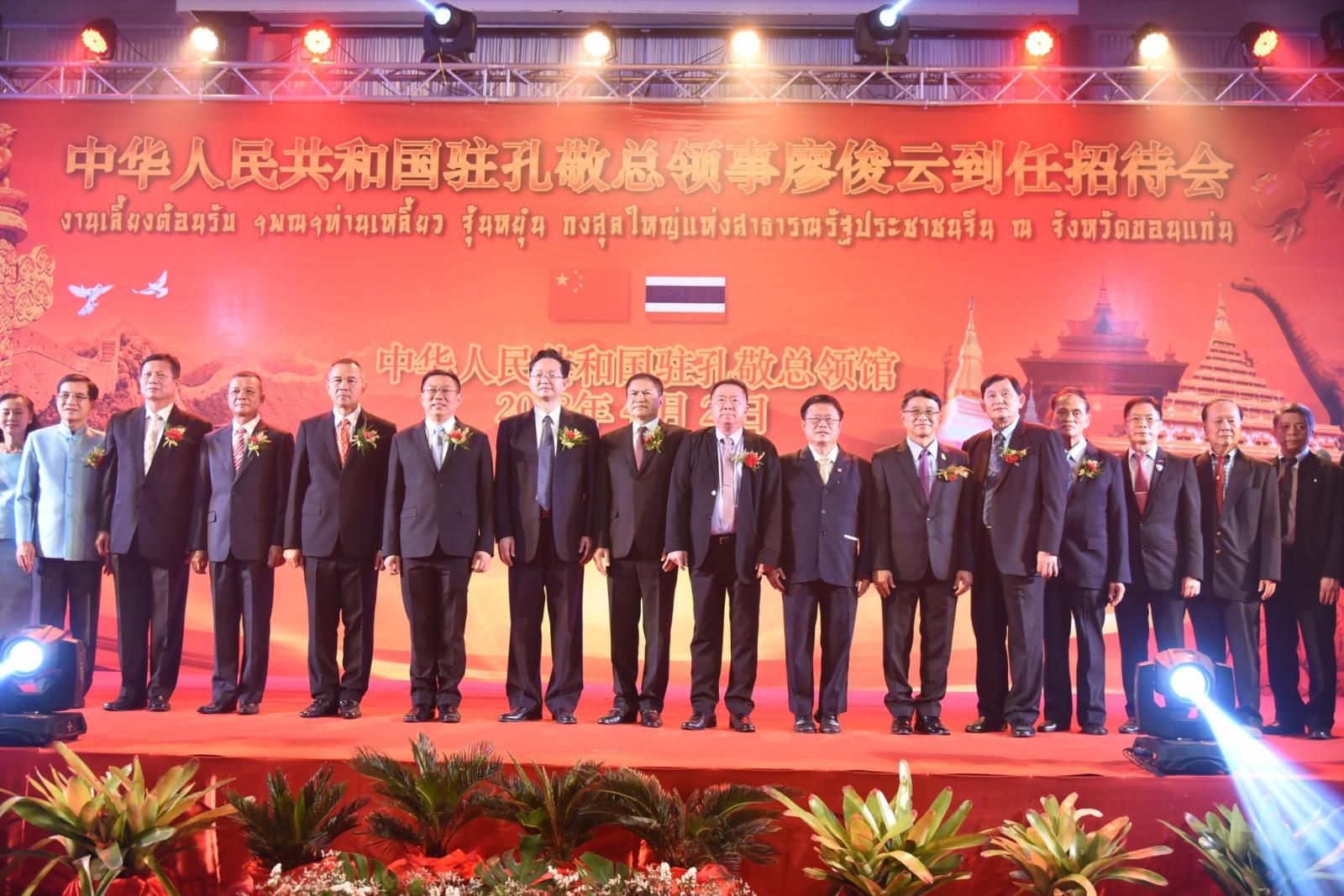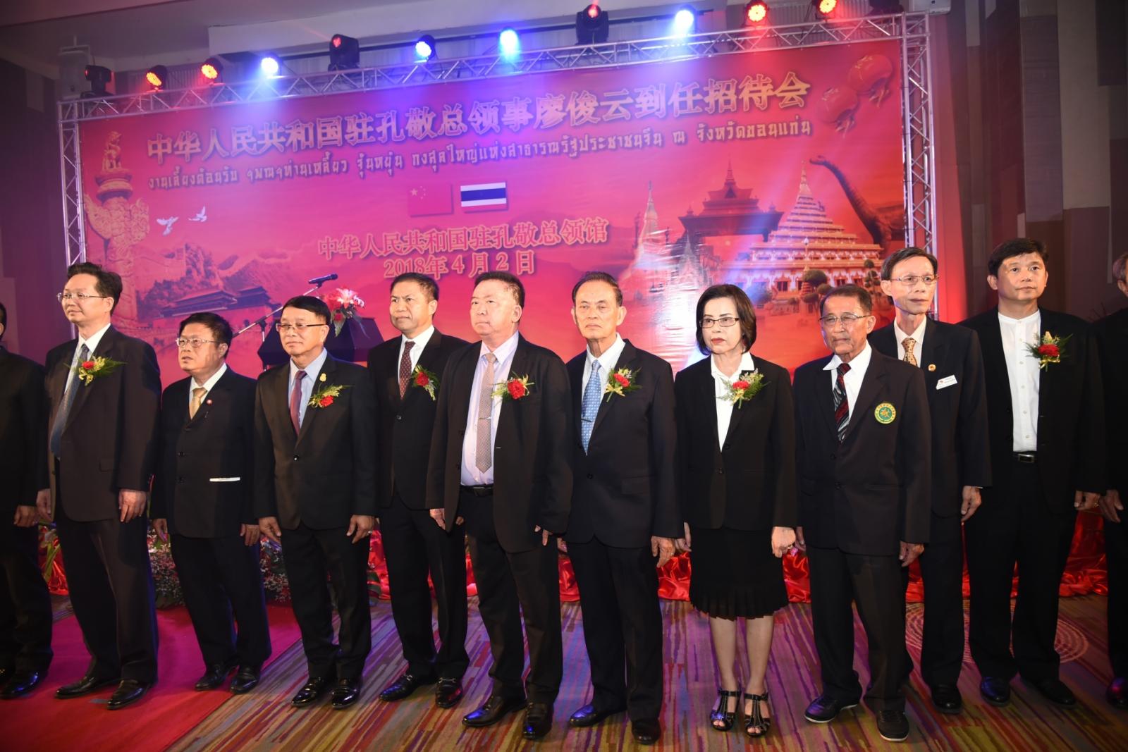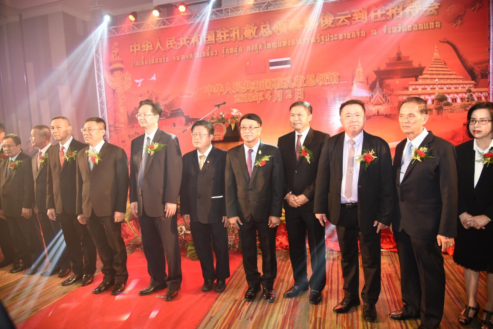 ดร.พงษ์ศักดิ์ ตั้งวานิชกพงษ์ นายกองค์การบริหารส่วนจังหวัดขอนแก่น ร่วมเป็นเกียรติและมอบแจกันดอกไม้แสดงความยินดีแก่ ฯพณฯ เหลี้ยว จุ้น หยุ๋น (Mr. Liao Junyun) กงสุลใหญ่แห่งสาธารณรัฐประชาชนจีน ประจำจังหวัดขอนแก่น ในโอกาสเข้ารับตำแหน่งใหม่ ณ โรงแรมพลูแมน ราชาออคิด ขอนแก่น เมื่อ 2 เมษายน 2561