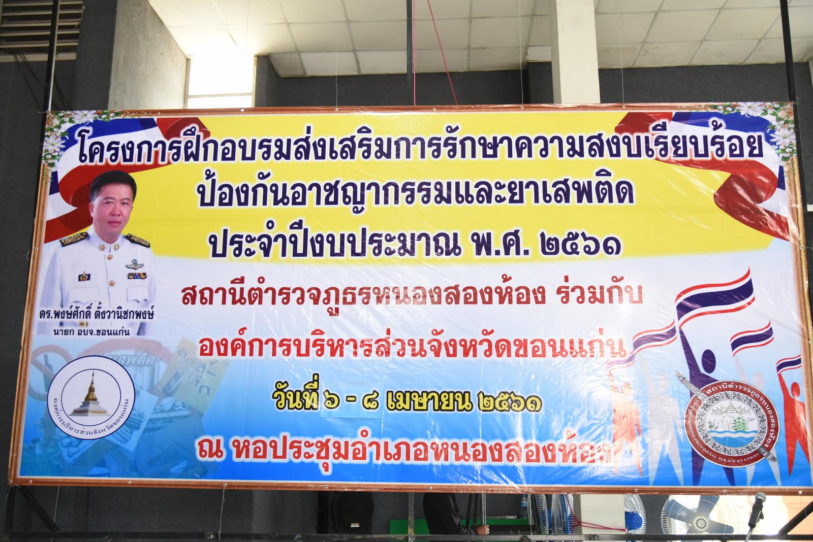ดร.พงษ์ศักดิ์ ตั้งวานิชกพงษ์ นายกองค์การบริหารส่วนจังหวัดขอนแก่น เป็นประธานเปิดโครงการ” ส่งเสริมการรักษาความสงบเรียบร้อย ป้องกันอาชญากรรมและยาเสพติด ประจำปีงบประมาณ พ.ศ. 2561 ” โดยมี พ.ต.ท.ศิระ ภูมิสถาน สวป.สภ.หนองสองห้อง กล่าวรายงาน พ.ต.อ.บรเมศร์ สายคำทอน ผกก.สภ.หนองสองห้อง นายศิริชัย ฉัตรชัยพลรัตน์ ส.อบจ.ขอนแก่น เขต อ.หนองสองห้อง ร่วมเป็นเกียรติ ณ หอประชุมอำเภอหนองสองห้อง จังหวัดขอนแก่น เมื่อวันที่ 6 เมษายน 2561