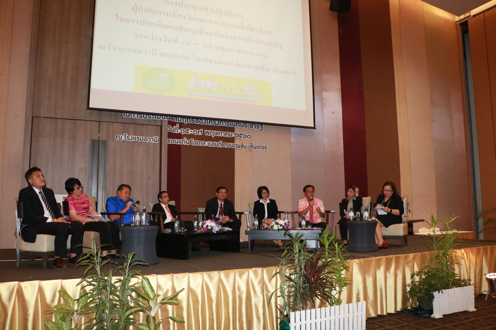 ร่วมเสวนาและประชุมเชิงปฏิบัติการผู้กำกับงานจังหวัดและหน่วยงานที่เกี่ยวข้อง ในการประเมินผลสัมฤทธิ์ของโครงการเน็ตประชารัฐ