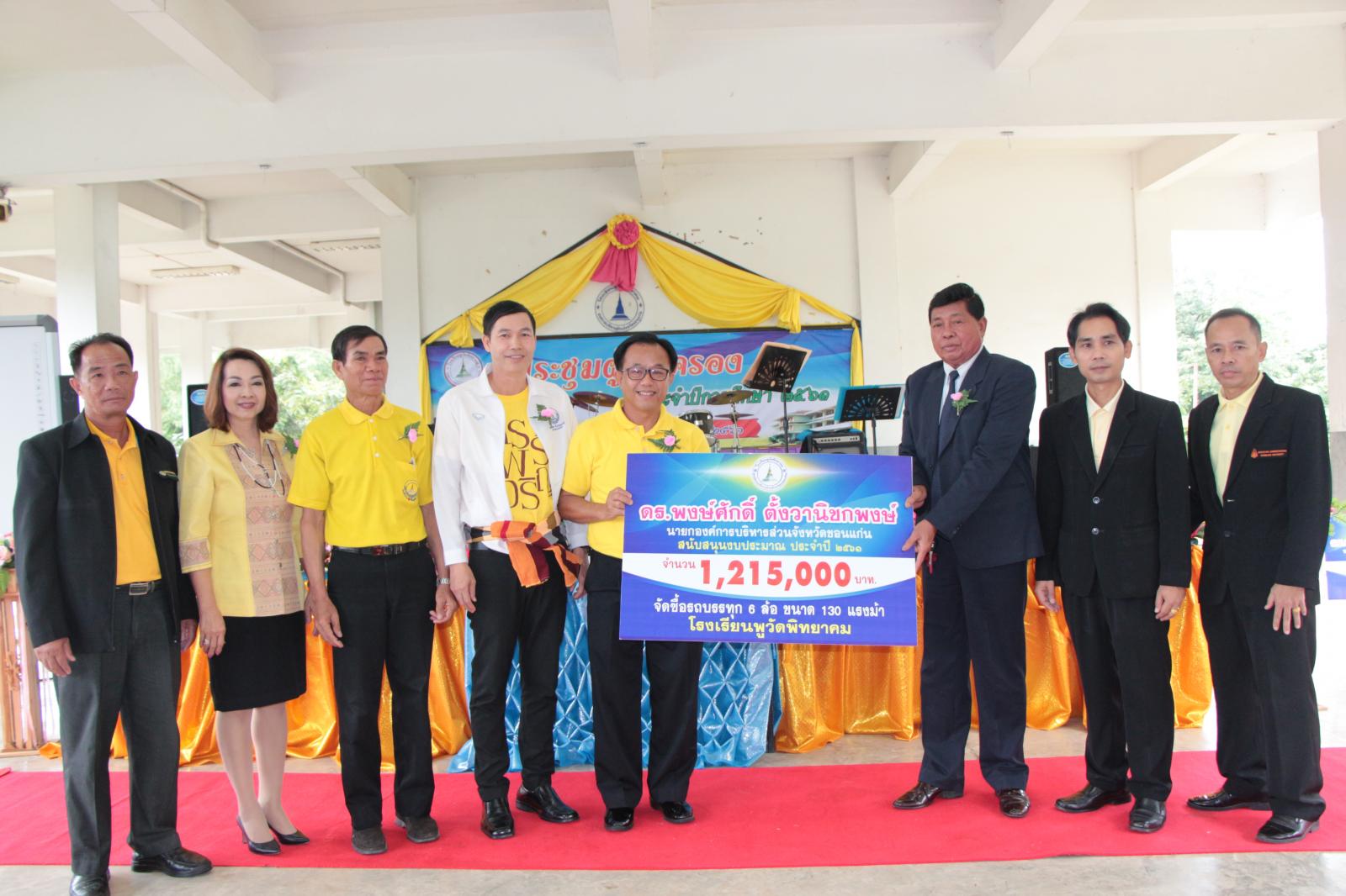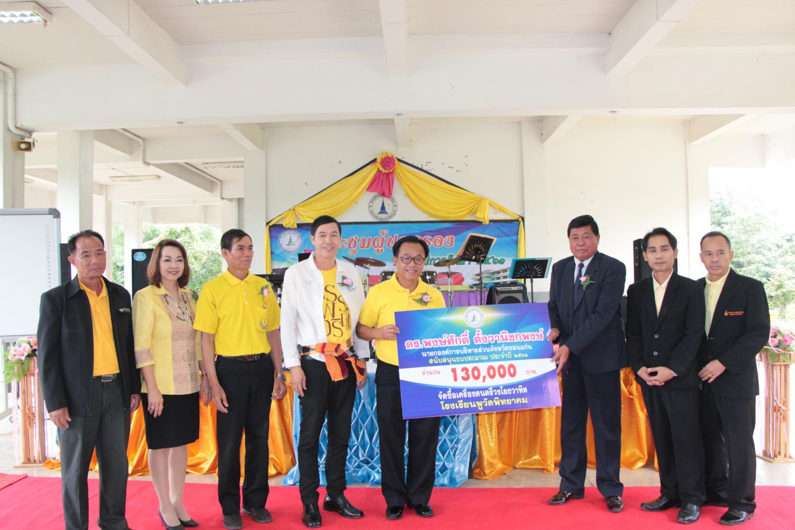 วันที่ 26 กรกฎาคม 2561 เวลา 10.00 น. นายก อบจ.ขอนแก่น ดร.พงษ์ศักดิ์ ตั้งวานิชกพงษ์ มอบหมายให้ รองปลัด อบจ.ขอนแก่น นายธาดา พรหมสาขา ณ สกลนคร เป็นประธานในกิจกรรมการประชุมผู้ปกครองนักเรียน ประจำปีการศึกษา 2561และพบปะผู้ปกครองนักเรียนและกล่าวให้โอวาทนักเรียน โดยมี ส.อบจ.ขอนแก่น อ.อุบลรัตน์ ด.ต.สุเมชิน รัตนไตรพันธ์ รองผู้อำนวยการโรงเรียนพูวัดพิทยาคม นายเบญจพล บรรพตะธิ และคณะผู้บริหาร ครูในสังกัด อบจ.ขอนแก่น ร่วมต้อนรับ ณ โรงเรียนพูวัดพิทยาคม