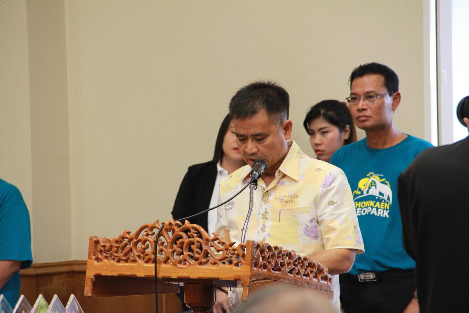 โดยมีผอ.สำนักการช่าง นายวิรัติ นาคมชม เป็นผู้กล่าวรายงาน อีกทั้งยังให้สัมภาษณ์กับทางประชาสัมพันธ์จังหวัดเกี่ยวกับความคืบหน้าของGEOPARKขอนแก่น ณ ห้องประชุมแก่นเมือง ชั้น ๑ ศาลากลางจังหวัดขอนแก่น (หลังใหม่)