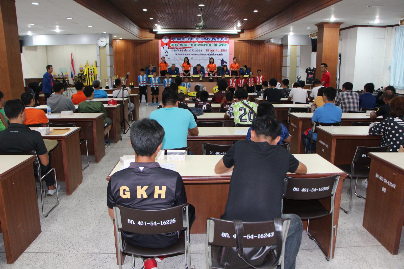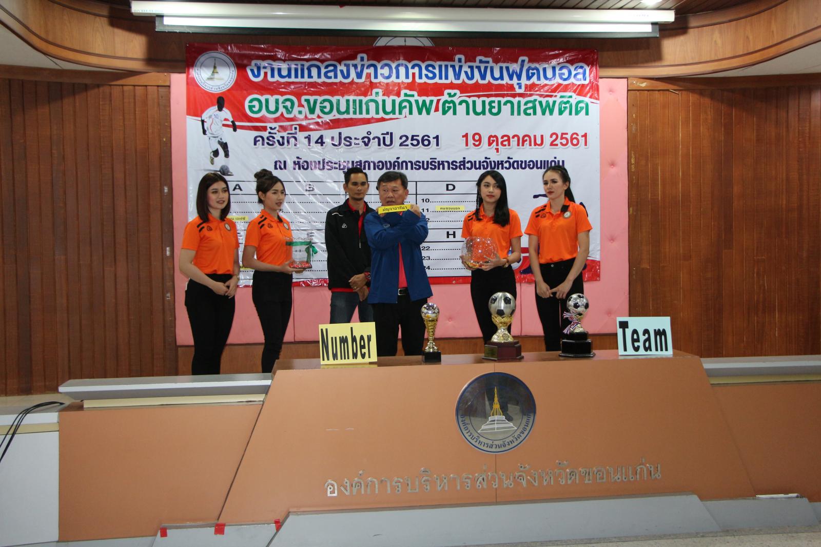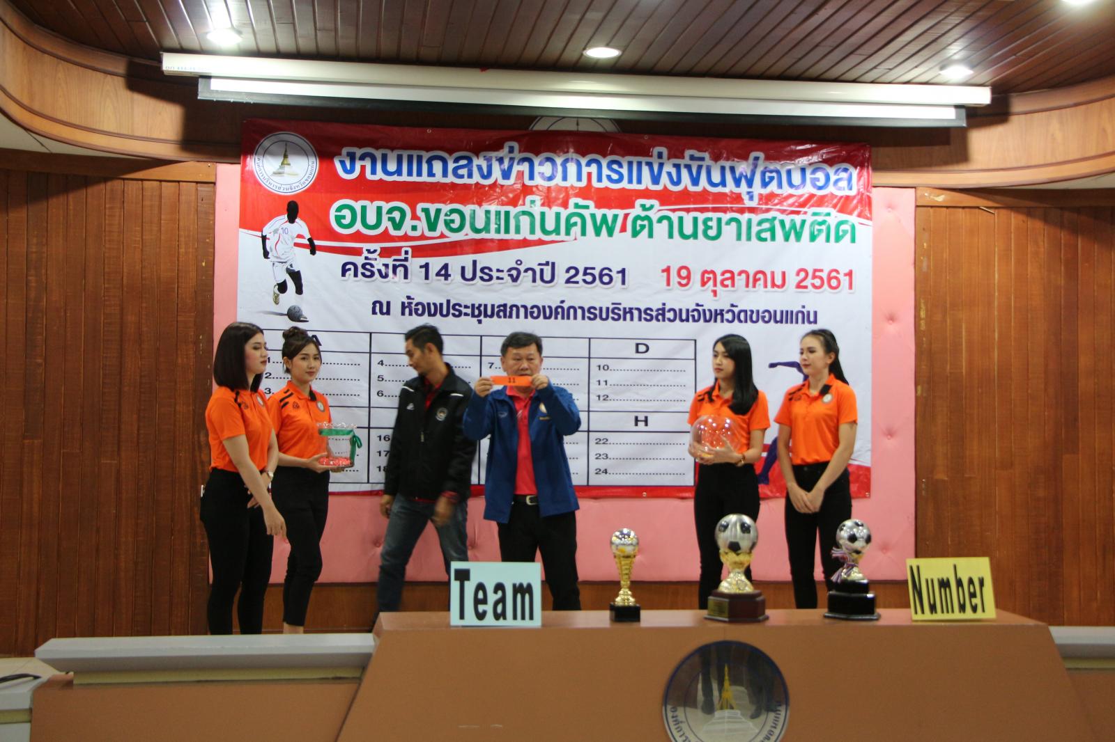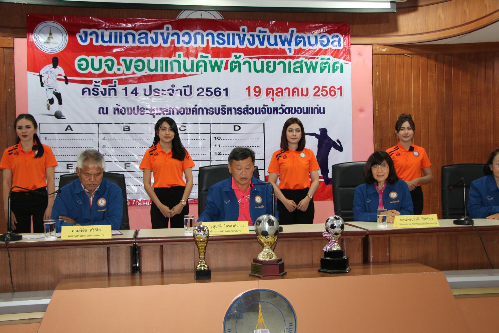 งานแถลงข่าวการแข่งขันกีฬาฟุตบอล อบจ.ขอนแก่น คัพ ต้านยาเสพติด ครั้งที่ 14 ประจำปี 2561 และจับฉลากแบ่งสายการแข่งขัน