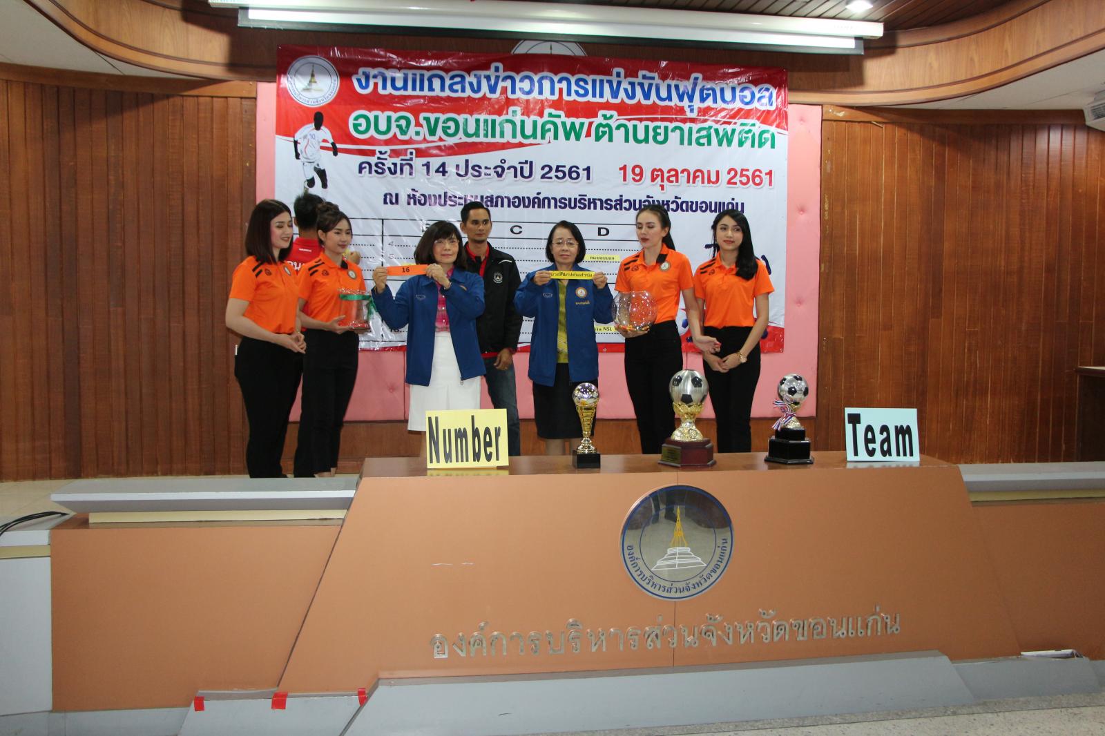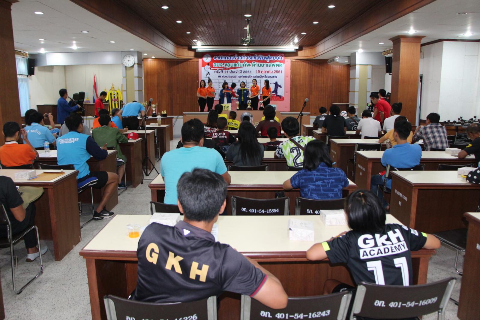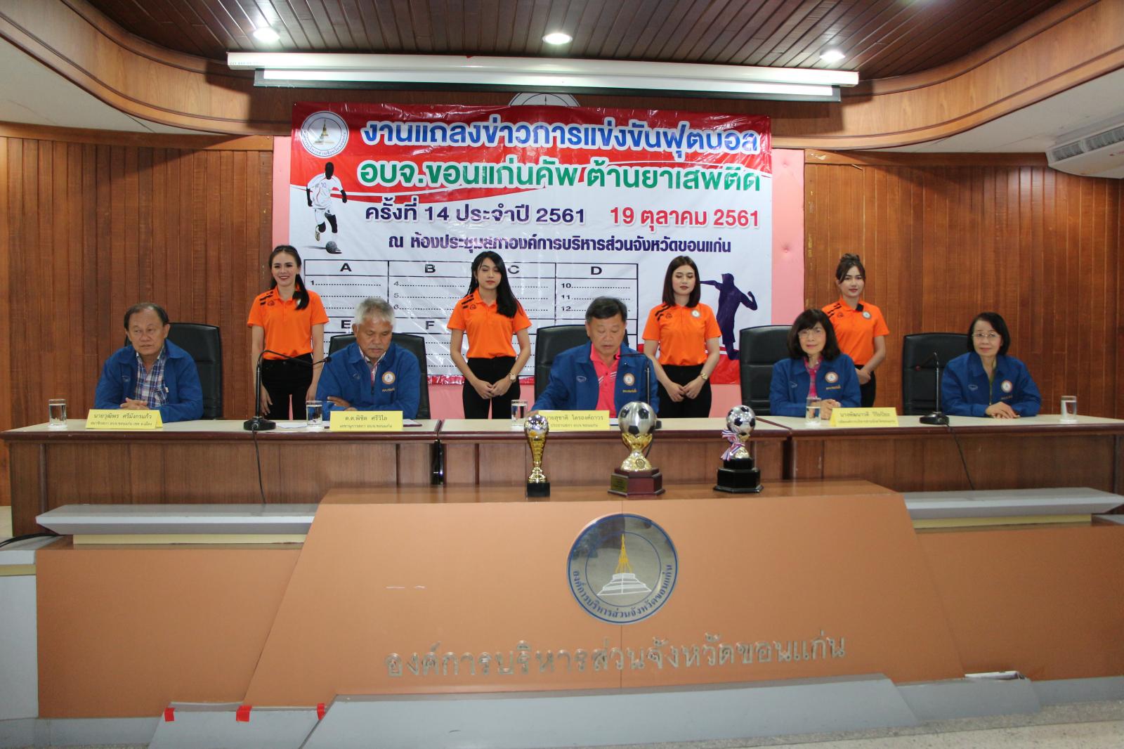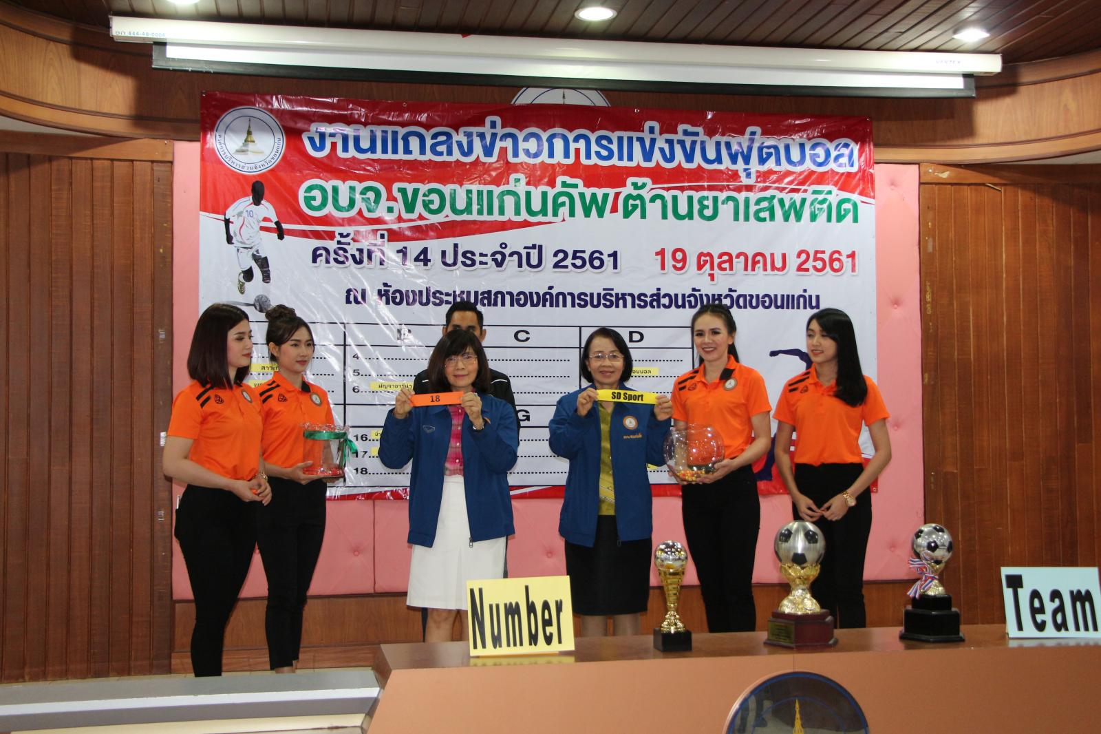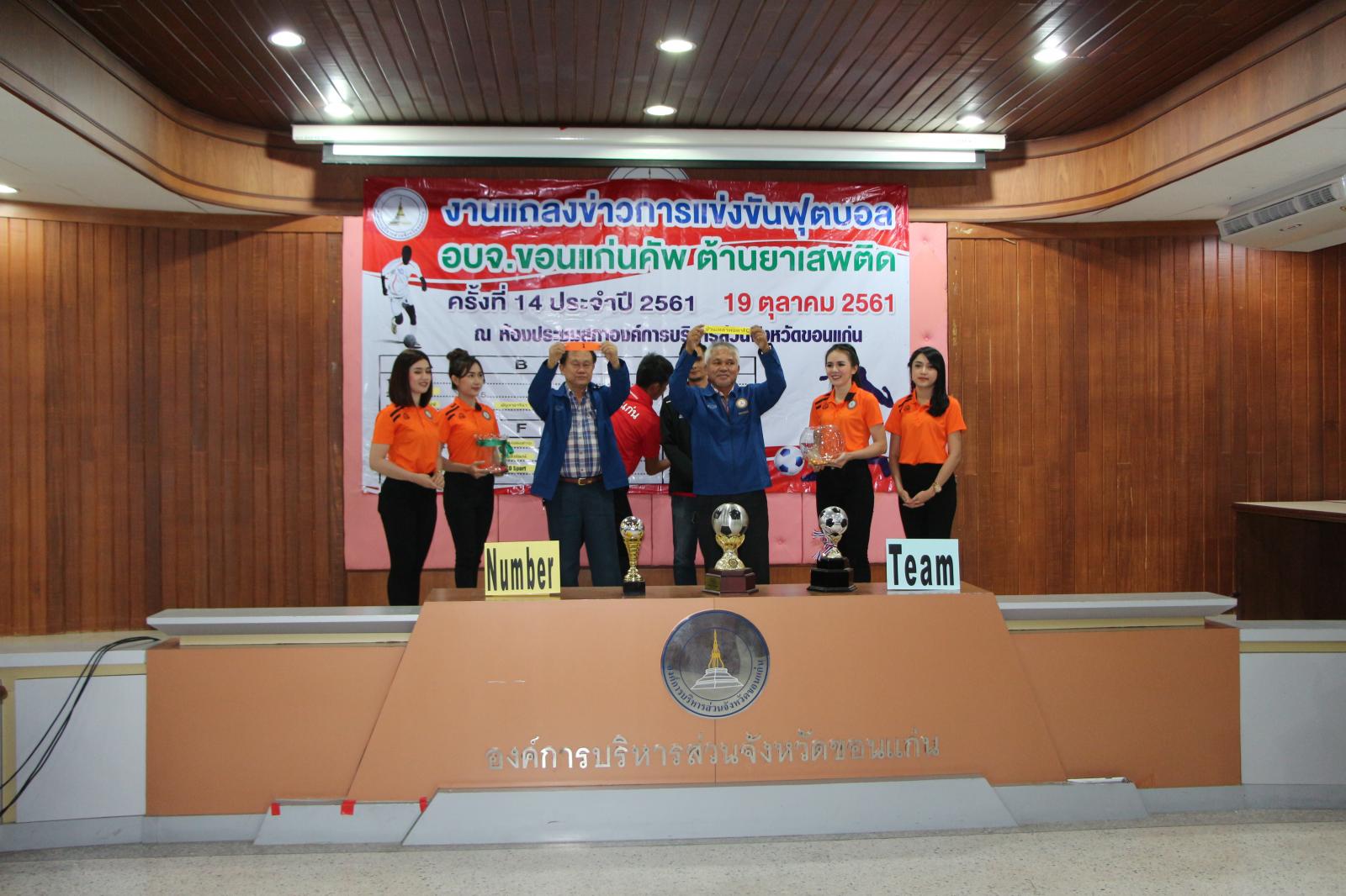 งานแถลงข่าวการแข่งขันกีฬาฟุตบอล อบจ.ขอนแก่น คัพ ต้านยาเสพติด ครั้งที่ 14 ประจำปี 2561 และจับฉลากแบ่งสายการแข่งขัน