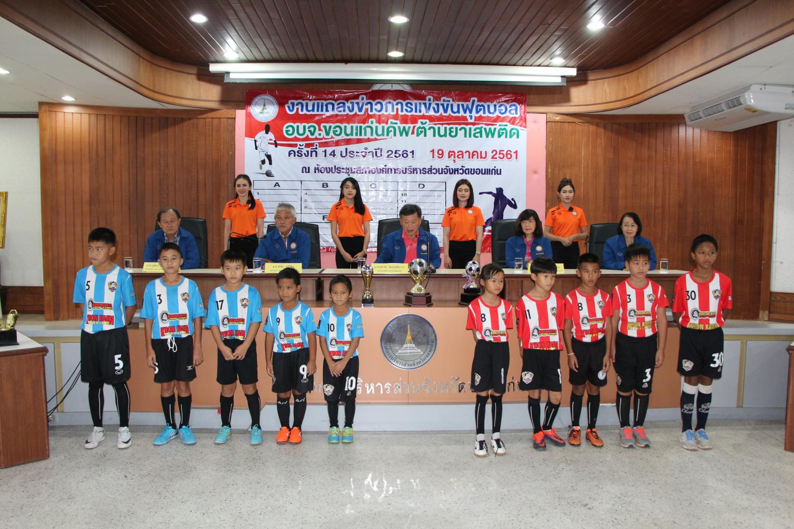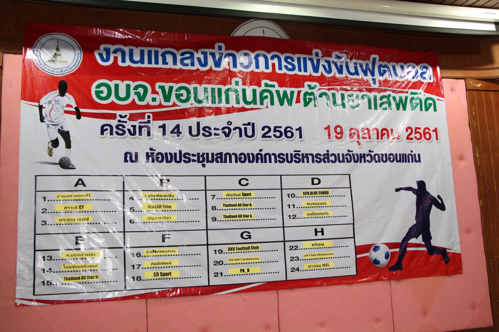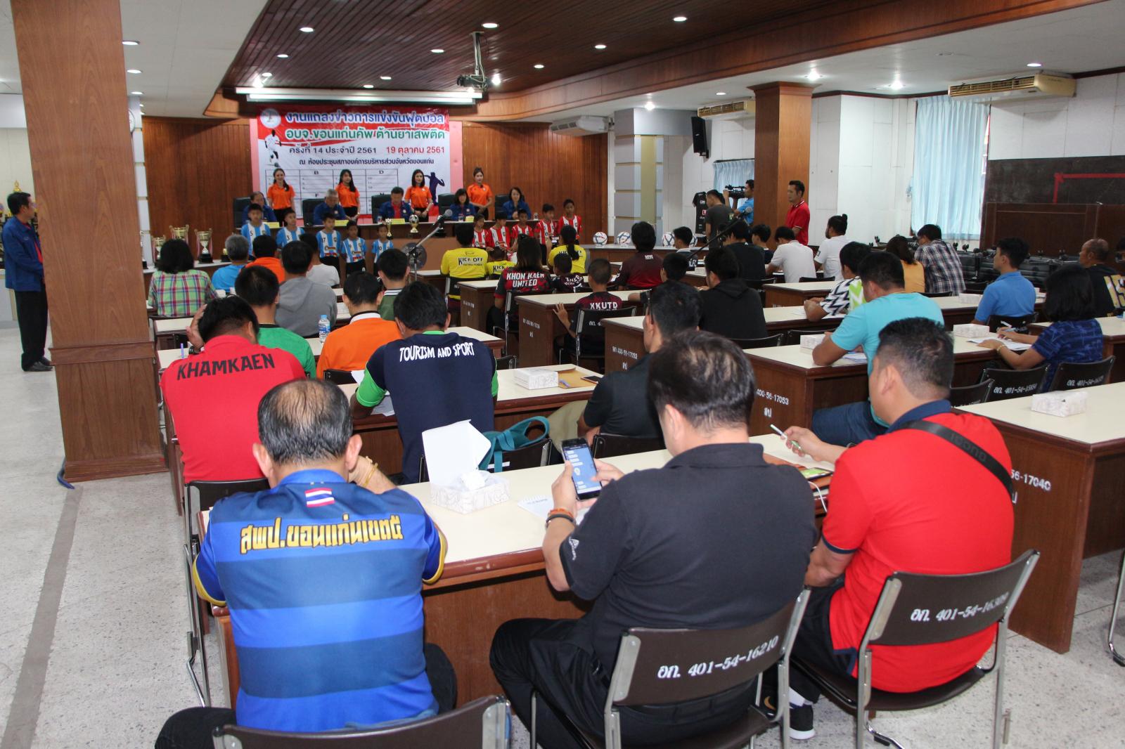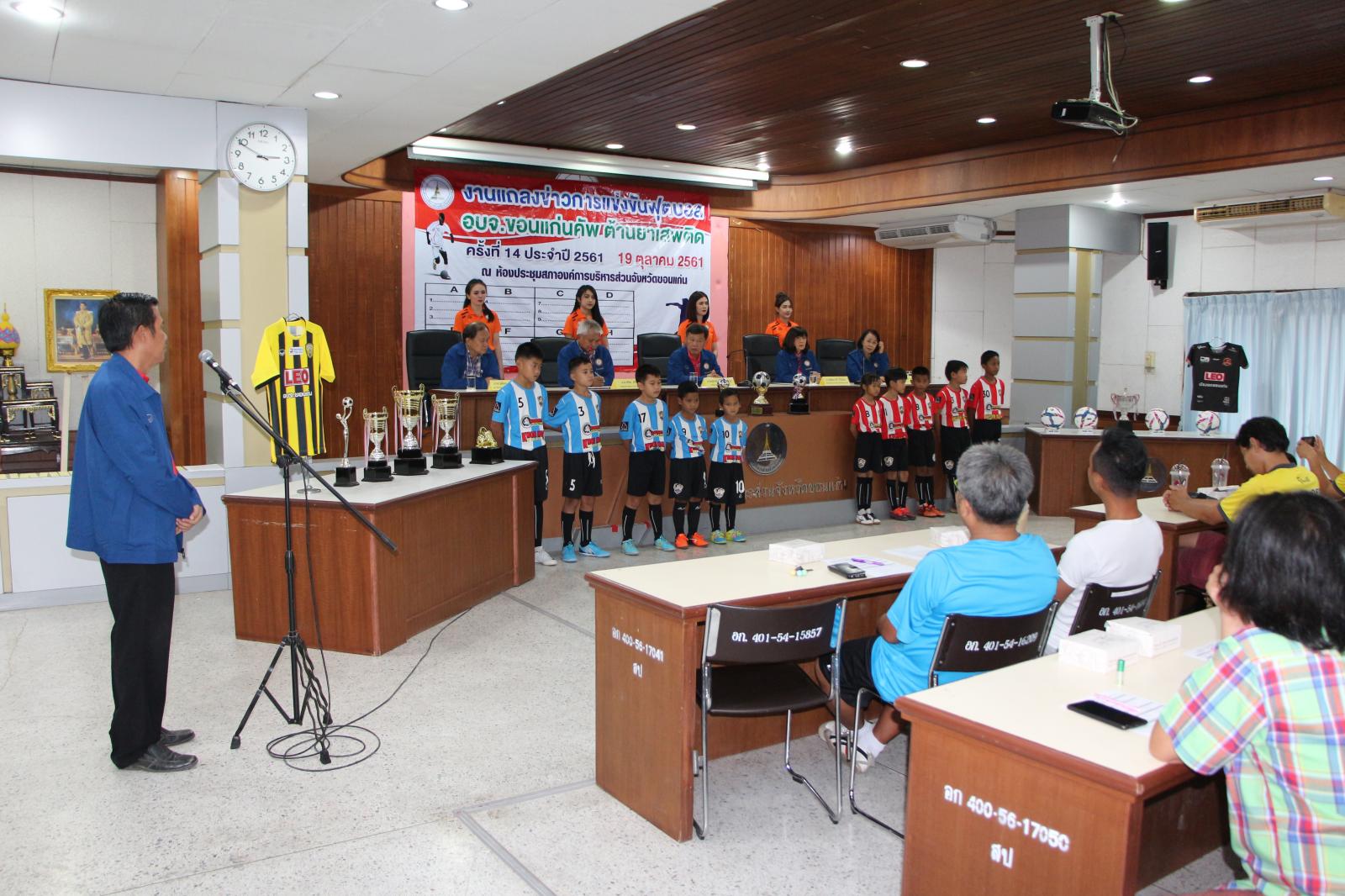 งานแถลงข่าวการแข่งขันกีฬาฟุตบอล อบจ.ขอนแก่น คัพ ต้านยาเสพติด ครั้งที่ 14 ประจำปี 2561 และจับฉลากแบ่งสายการแข่งขัน