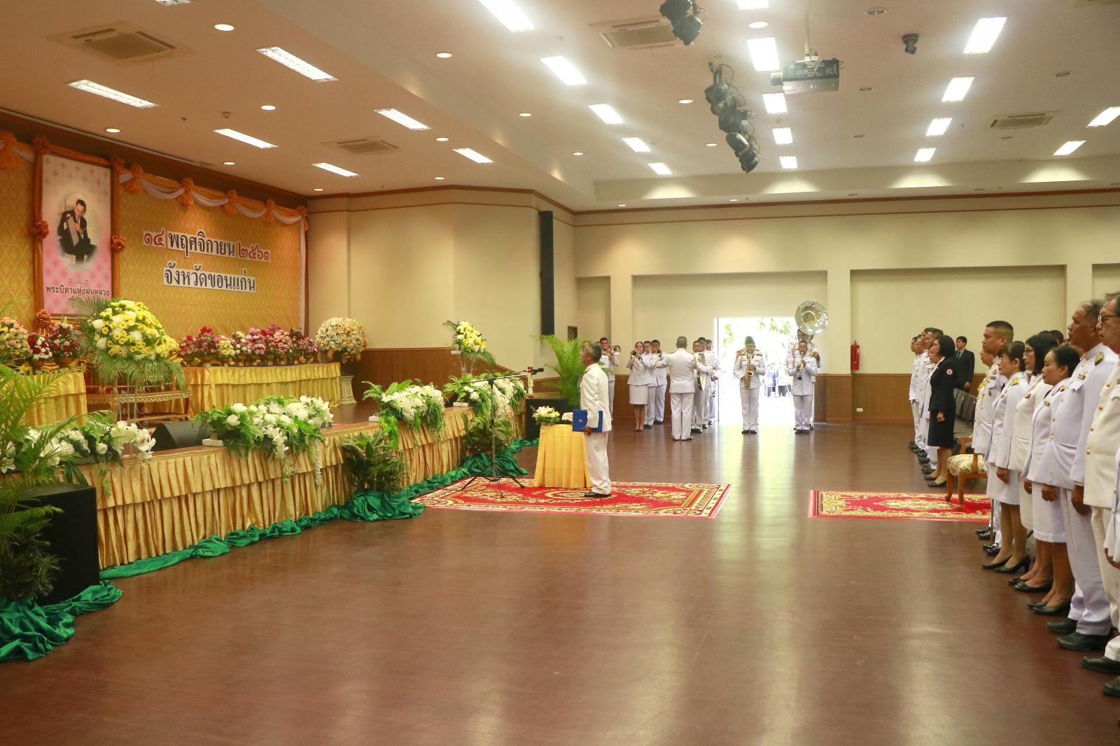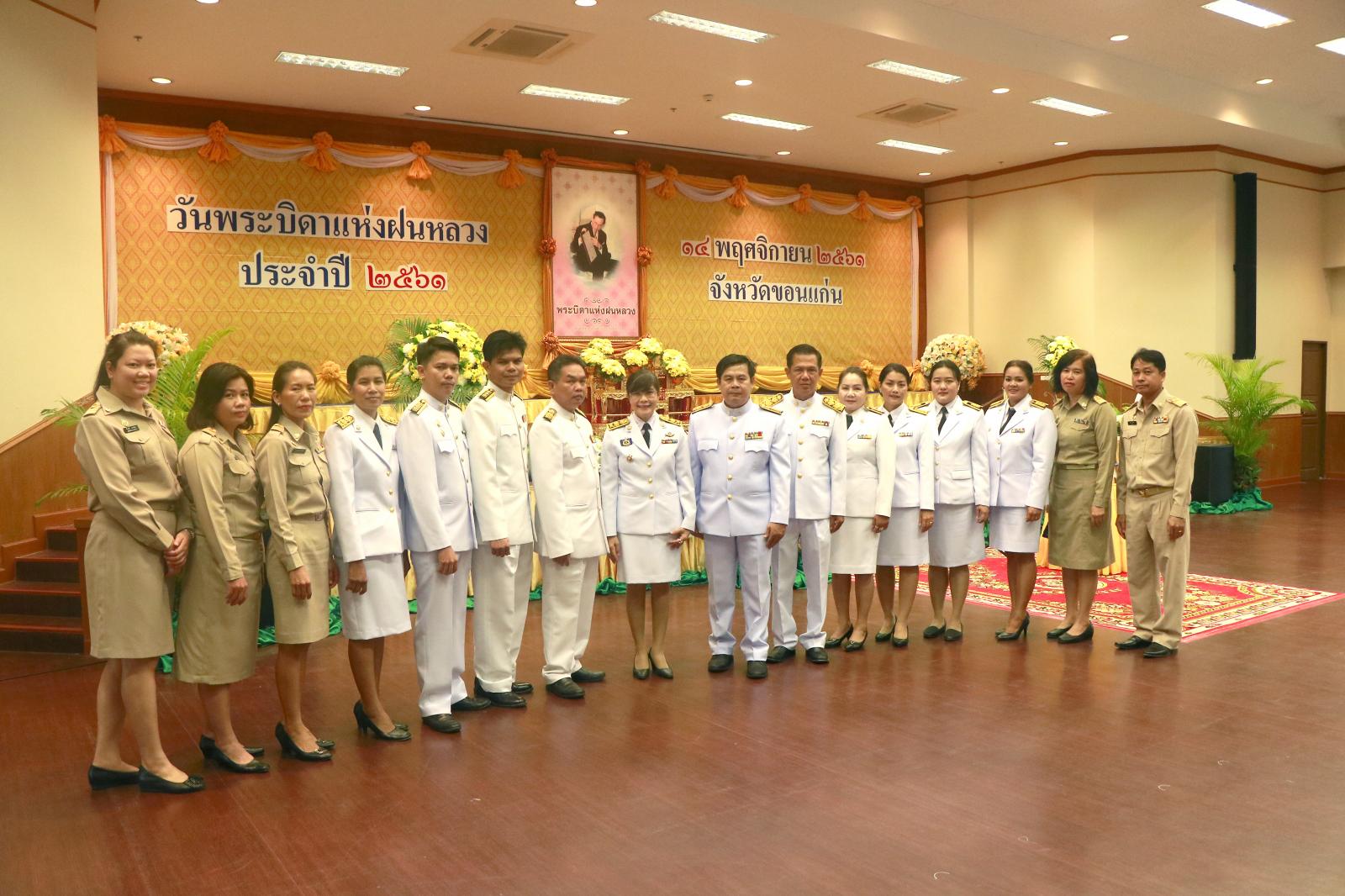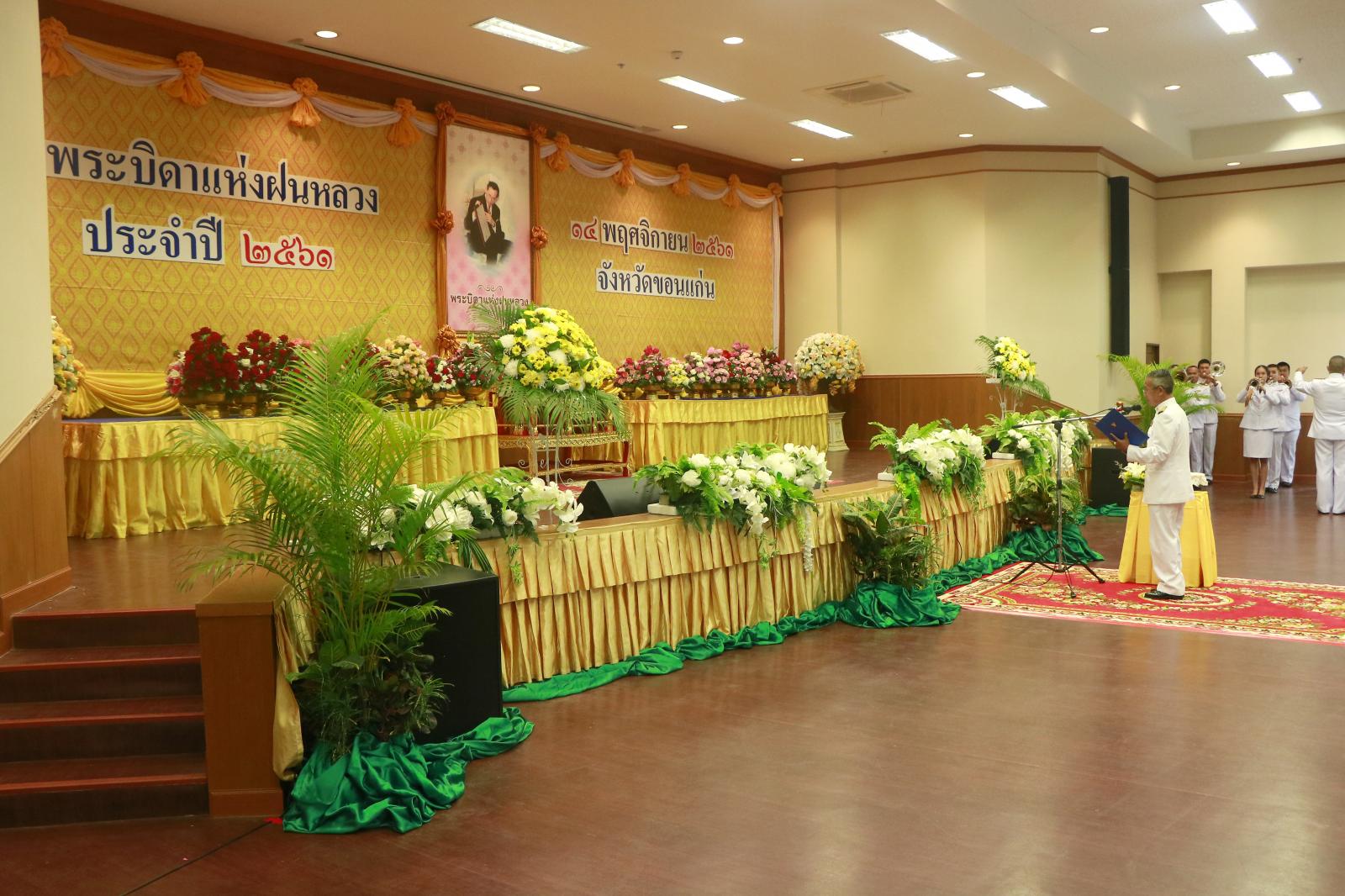 เมื่อวันพุธที่ 14 พฤศจิกายน 2561 เวลา 08.15 นายก อบจ.ขอนแก่น ดร.พงษ์ศักดิ์ ตั้งวานิชกพงษ์ มอบหมายให้ ปลัดอบจ.ขอนแก่น นางพัฒนาวดี วิริยปิยะ ผอ.กองแผนและงบประมาณ นายเพ็ชร มูลป้อม ข้าราชการ และพนักงาน อบจ.ขอนแก่นร่วมพิธีวางพานพุ่มดอกไม้สดถวายแด่พระบาทสมเด็จพระปรมินทรมหาภูมิพลอดุลยเดช บรมนาถบพิตร เนื่องในวันพระบิดาแห่งฝนหลวง ประจำปี 2561 โดยมี รองผู้ว่าราชการจังหวัดขอนแก่น นายปานทอง สระคูพันธ์ เป็นประในพิธี ณ ห้องประชุมแก่นเมือง ศาลากลางจังหวัดขอนแก่น (หลังใหม่) ชั้น 1 อ.เมือง จ.ขอนแก่น