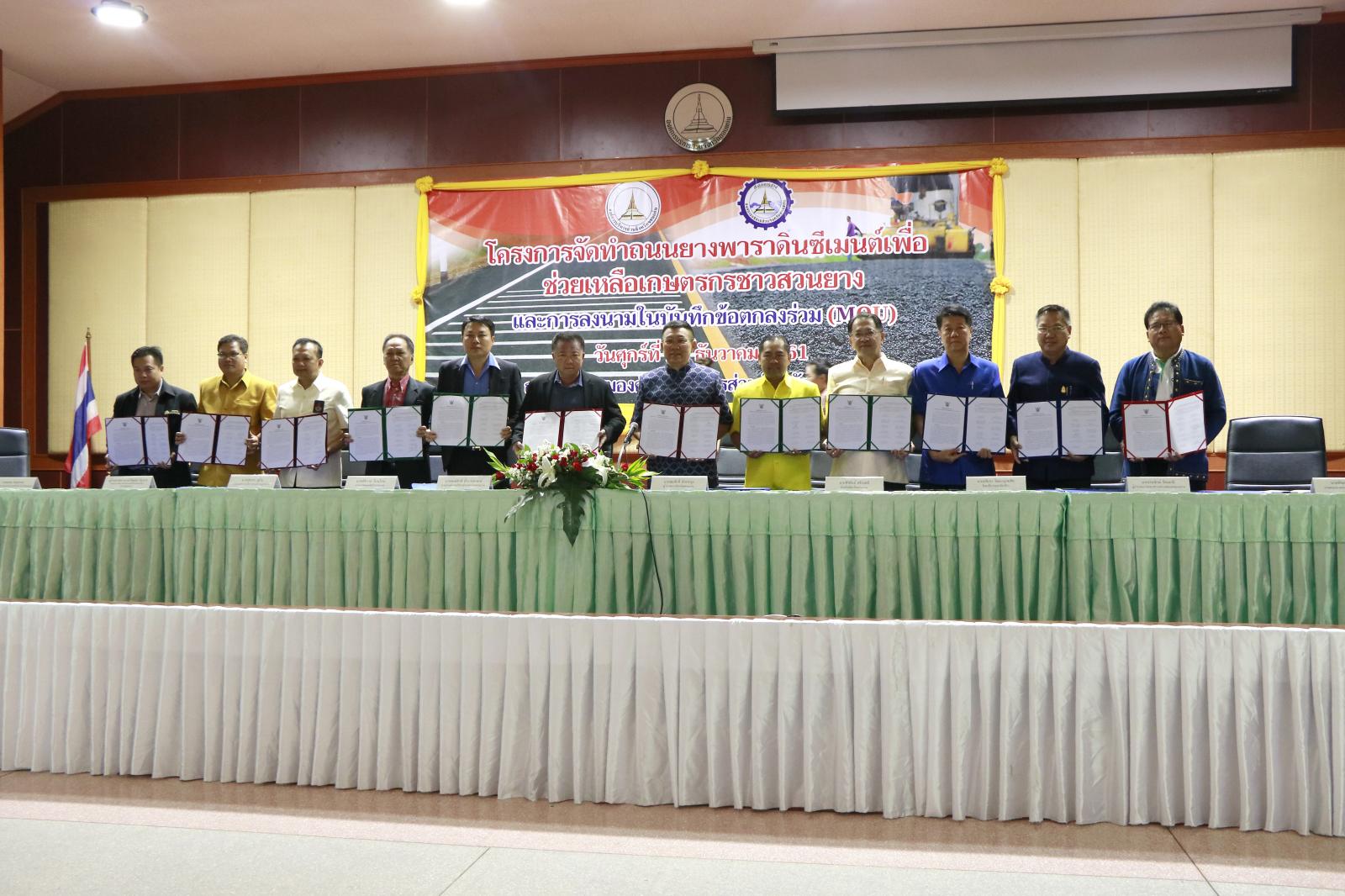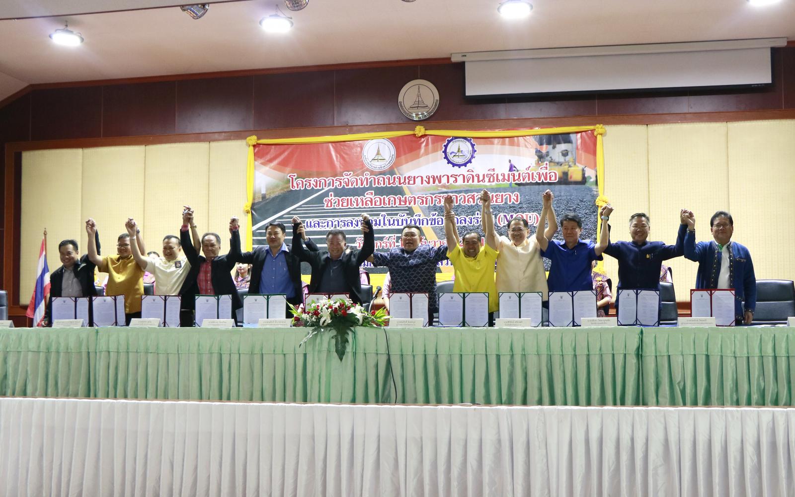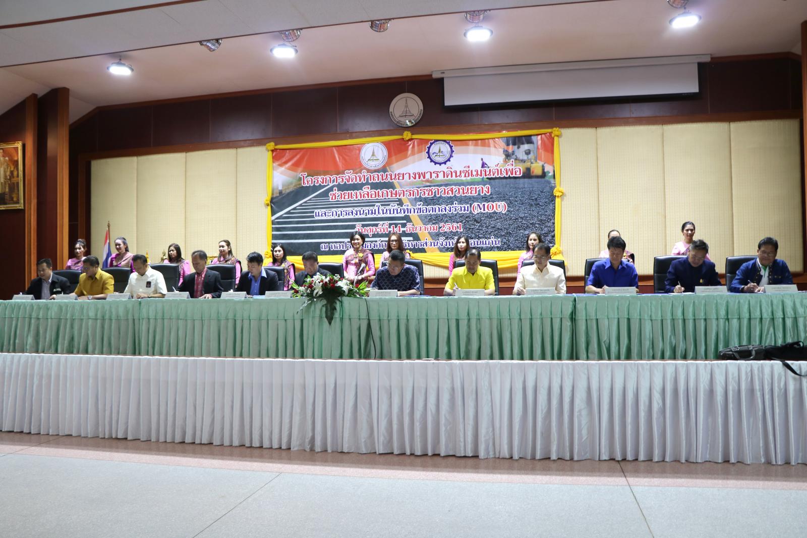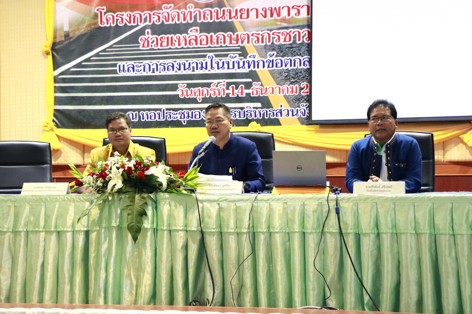 เมื่อวันที่ 14 ธันวาคม 2561 เวลา 09.00 น. ดร.พงษ์ศักดิ์ ตั้งวานิชกพงษ์ นายก อบจ.ขอนแก่น กล่าวรายงานในพิธีเปิดโครงการจัดทำถนนลาดยางพาราดินซีเมนต์เพื่อช่วยเหลือเกษตรกรชาวสวนยาง โดยมี ดร.สมศักดิ์ จังตระกุล ผู้ว่าราชการจังหวัดขอนแก่น เป็นประธาน และร่วมลงนามบันทึกข้อตกลงร่วม (MOU) ซึ่งมีผู้แทนจาก มหาวิทยาลัยเทคโนโลยีพระจอมเกล้าพระนครเหนือ การยางแห่งประเทศไทย สาขาจังหวัดขอนแก่น องค์กรปกครองส่วนท้องถิ่นในเขตจังหวัดขอนแก่น ท้องถิ่นจังหวัดขอนแก่น แขวงทางหลวงชนบทจังหวัดขอนแก่น มหาวิทยาลัยราชมงคลอีสานวิทยาเขตขอนแก่น เกษตรและสหกรณ์จังหวัดขอนแก่น ร่วมลงนามบันทึกข้อตกลงในครั้งนี้ด้วย ในโอกาสนี้มี นายสุชาติ ไตรองค์ถาวร ประธานสภา อบจ.ขอนแก่น, นายปรัชญา ผิวผาง เลขานุการ นายก อบจ.ขอนแก่น ,นายวุฒิพร ศรีมังกรแก้ว ส.อบจ.ขอนแก่น อ.เมือง เขต 2 ,นางพัฒนาวดี วิริยปิยะ ปลัด อบจ.ขอนแก่น หัวหน้าส่วนราชการ ข้าราชการ พนักงาน อบจ.ขอนแก่น ร่วมเป็นเกียรติ ณ หอประชุมองค์การบริหารส่วนจังหวัดขอนแก่น อ.เมืองขอนแก่น จ.ขอนแก่น