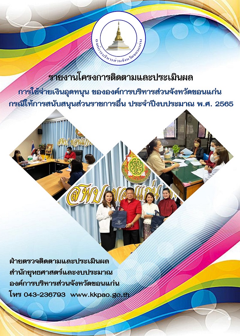 รายงานโครงการติดตามและประเมินผล การใช้จ่ายเงินอุดหนุน ขององค์การบริหารส่วนจังหวัดขอนแก่น กรณีให้การสบับสนุนส่วนราชการอื่น ประจำปีงบประมาณ พ.ศ. 2565
