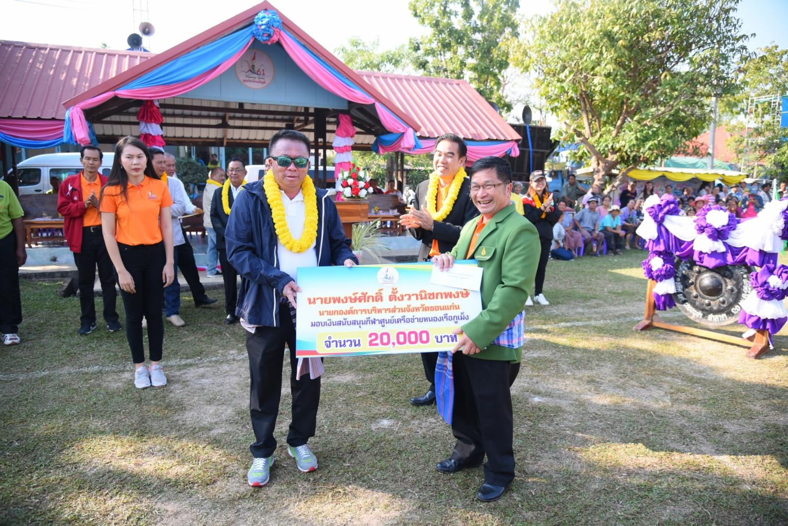 วันที่ 21 ธันวาคม 2561 เวลา 08.30 น. ดร.พงษ์ศักดิ์ ตั้งวานิชกพงษ์ นายกองค์การบริหารส่วนจังหวัดขอนแก่น เป็นประธานเปิดการแข่งขันกีฬาศูนย์เครือข่ายหนองเรือภูเม็งต้านยาเสพติด ประจำปีการศึกษา 2561 ณ สนามกีฬาโรงเรียนบ้านเม็ง อำเภอหนองเรือ จังหวัดขอนแก่น