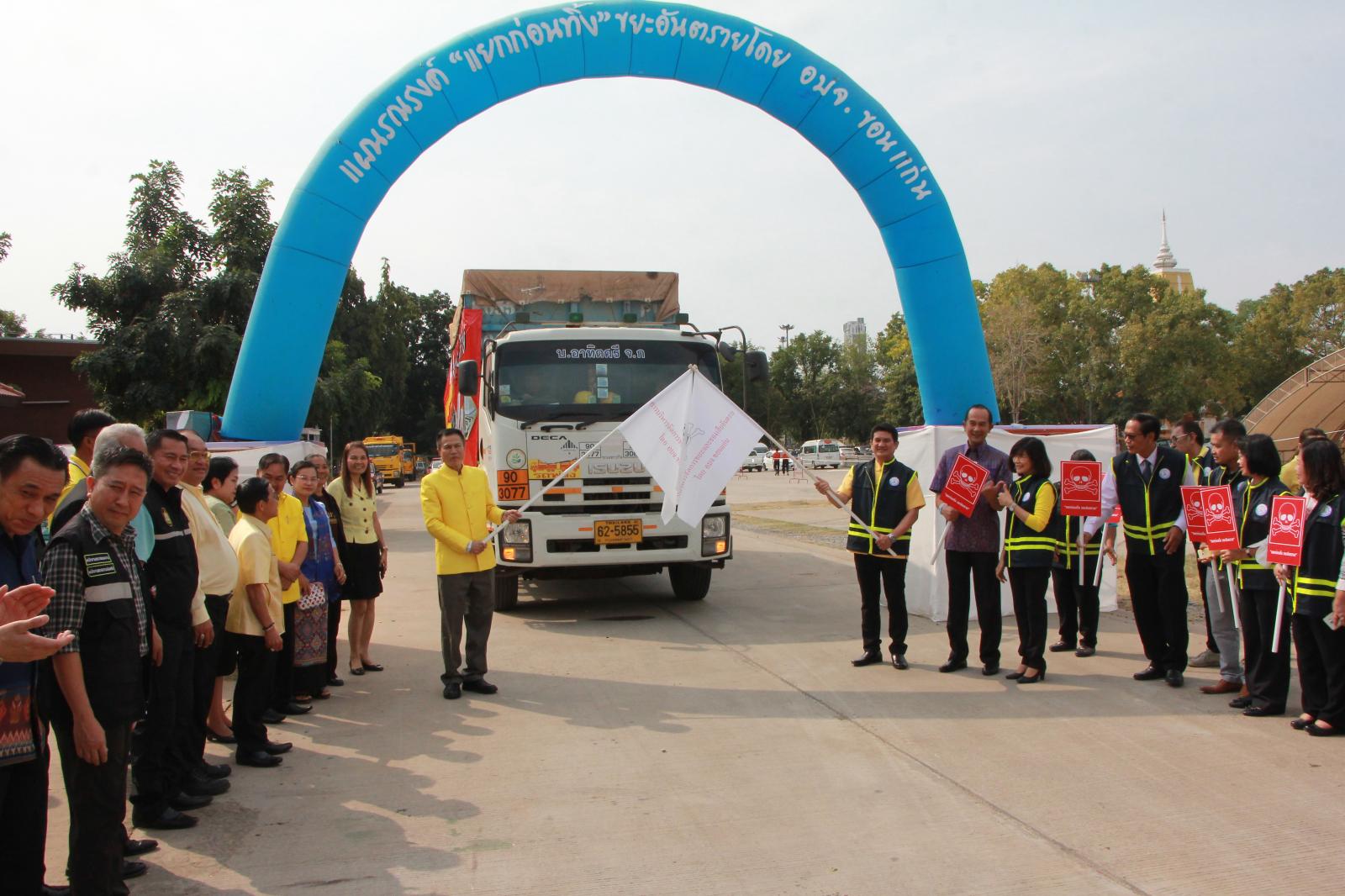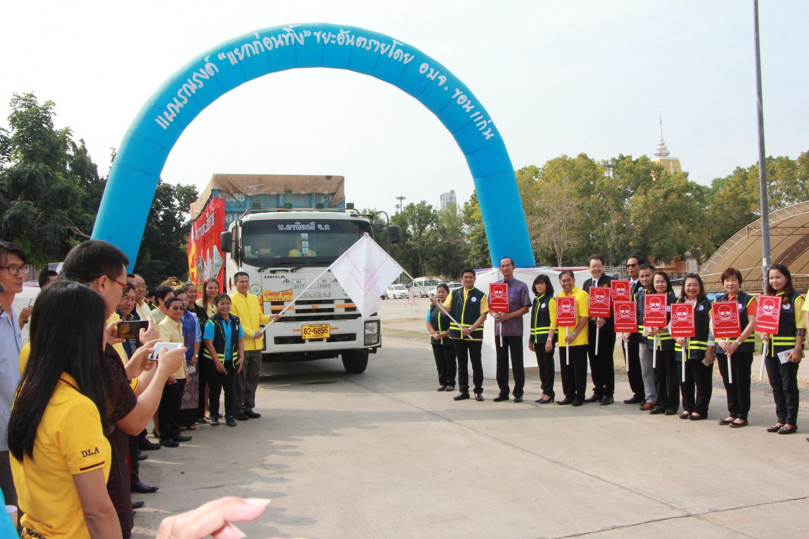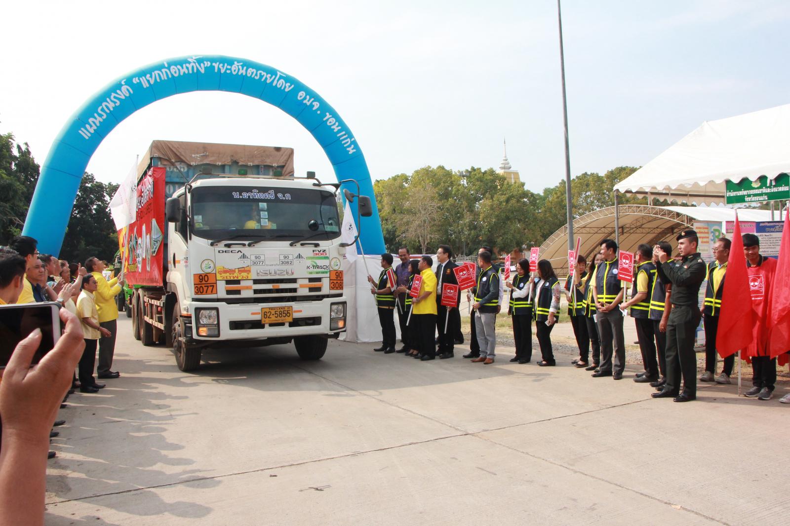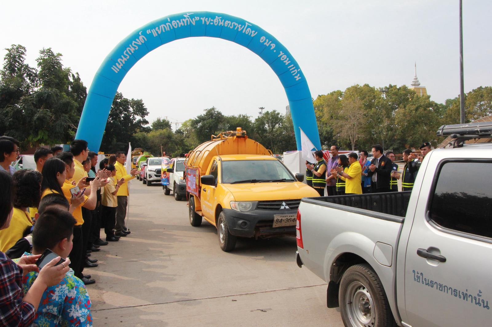 เมื่อวันที่ 9 มกราคม 2562 เวลา 09.30 น. ดร.พงษ์ศักดิ์ ตั้งวานิชกพงษ์ นายก อบจ.ขอนแก่น มอบหมายให้ นายสิทธิกุล ภูคำวงศ์ รองนายก อบจ.ขอนแก่น, นางพัฒนาวดี วิริยปิยะ ปลัด อบจ.ขอนแก่น, นางสาวนงลักษณ์ รัตนจันทร์ รองปลัด อบจ.ขอนแก่น และหัวหน้าส่วนราชการ อบจ.ขอนแก่น ร่วมพิธีเปิดกิจกรรมตามแผนรณรงค์ “แยกขยะก่อนทิ้ง” เพื่อขับเคลื่อนการจัดการขยะมูลฝอย ประจำปีงบประมาณ พ.ศ. 2562 โดยมีนายสันติ เหล่าบุญเสงี่ยม รองผู้ว่าราชการจังหวัดขอนแก่น เป็นประธานในพิธี ณ บริเวณหน้าศาลากลางจังหวัดขอนแก่น (บริเวณศาลาผูกเสี่ยว)