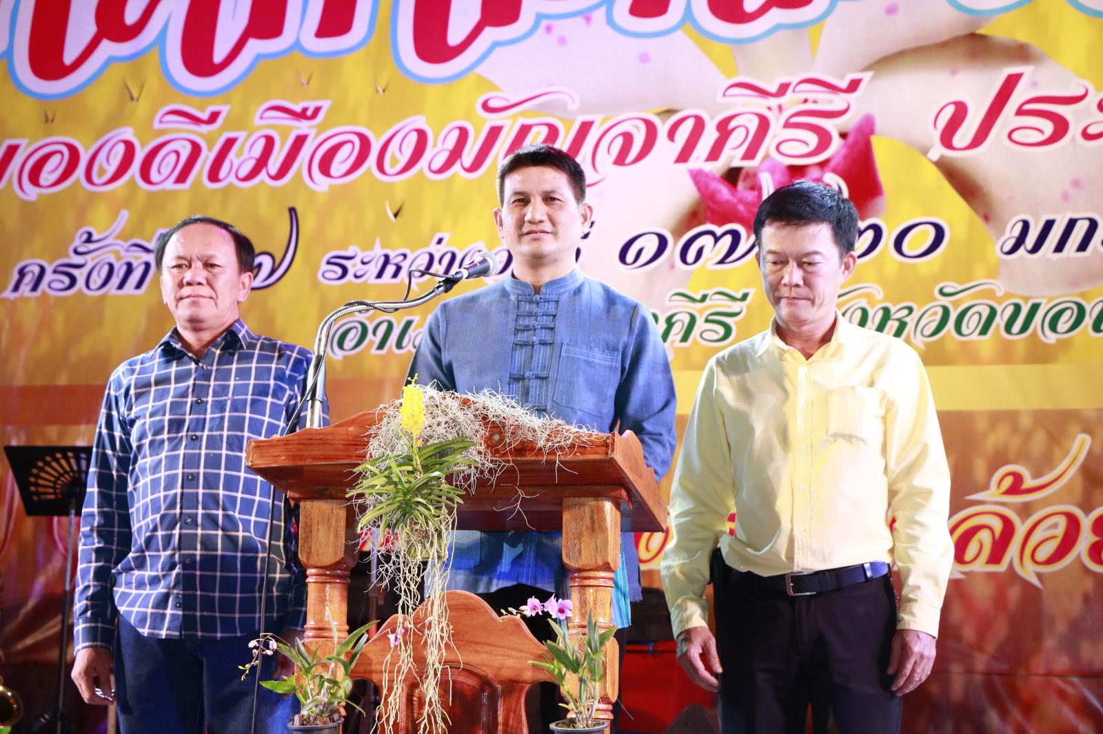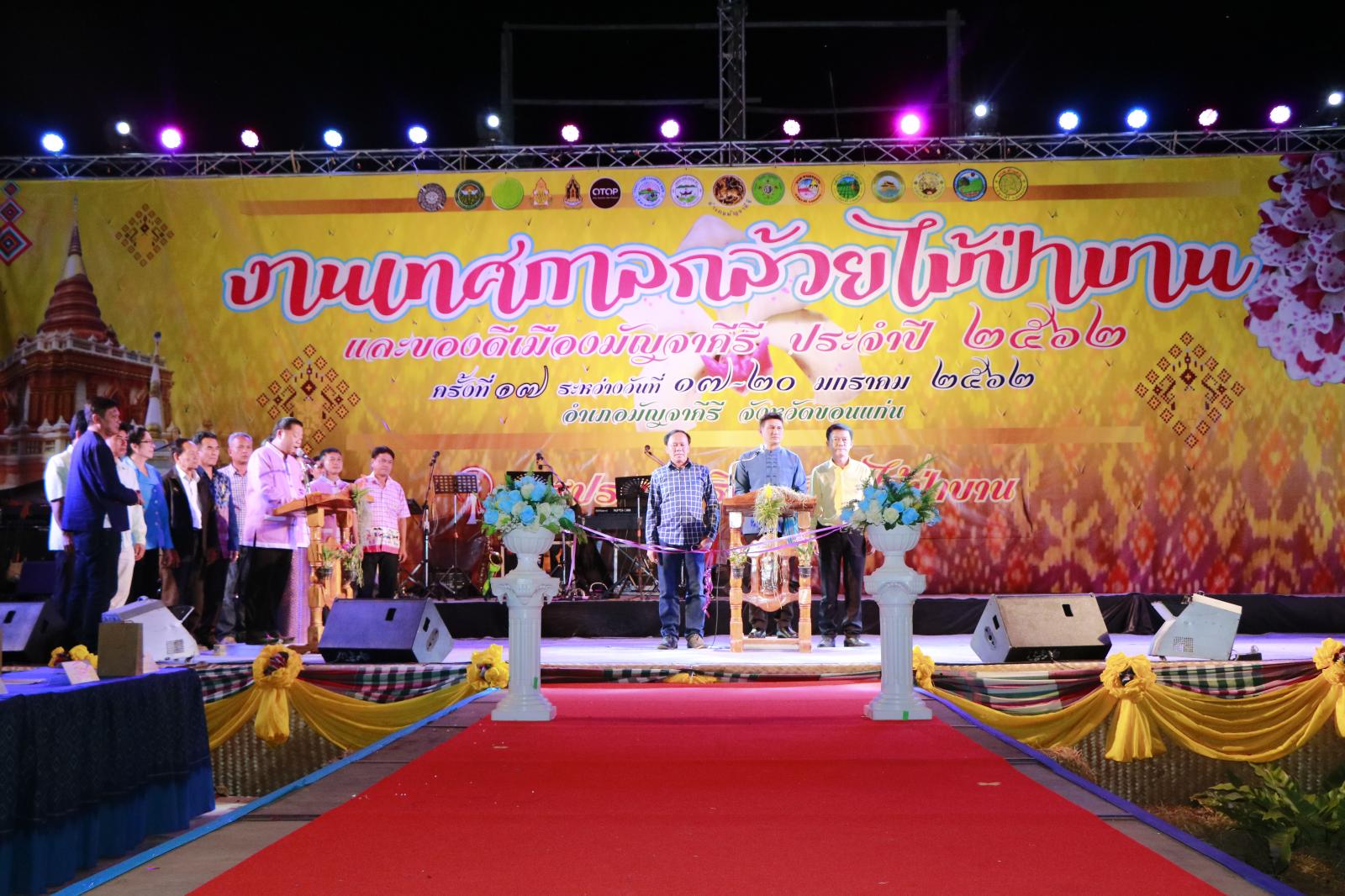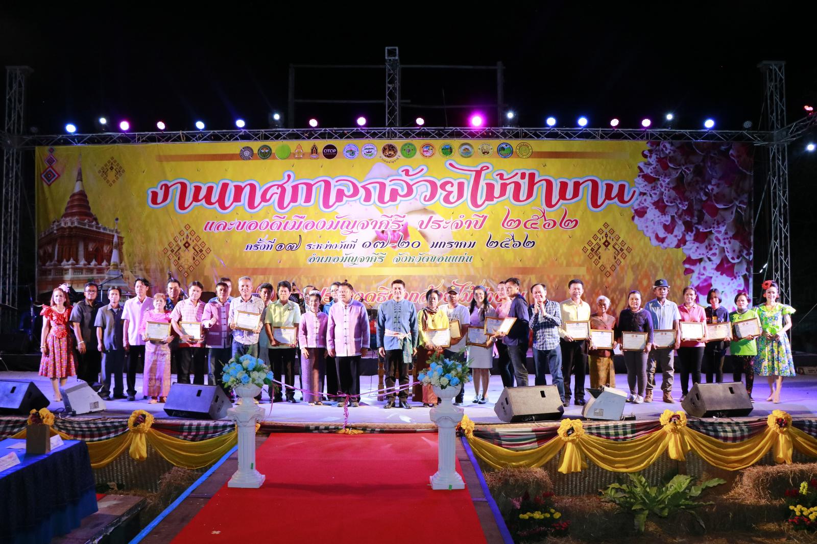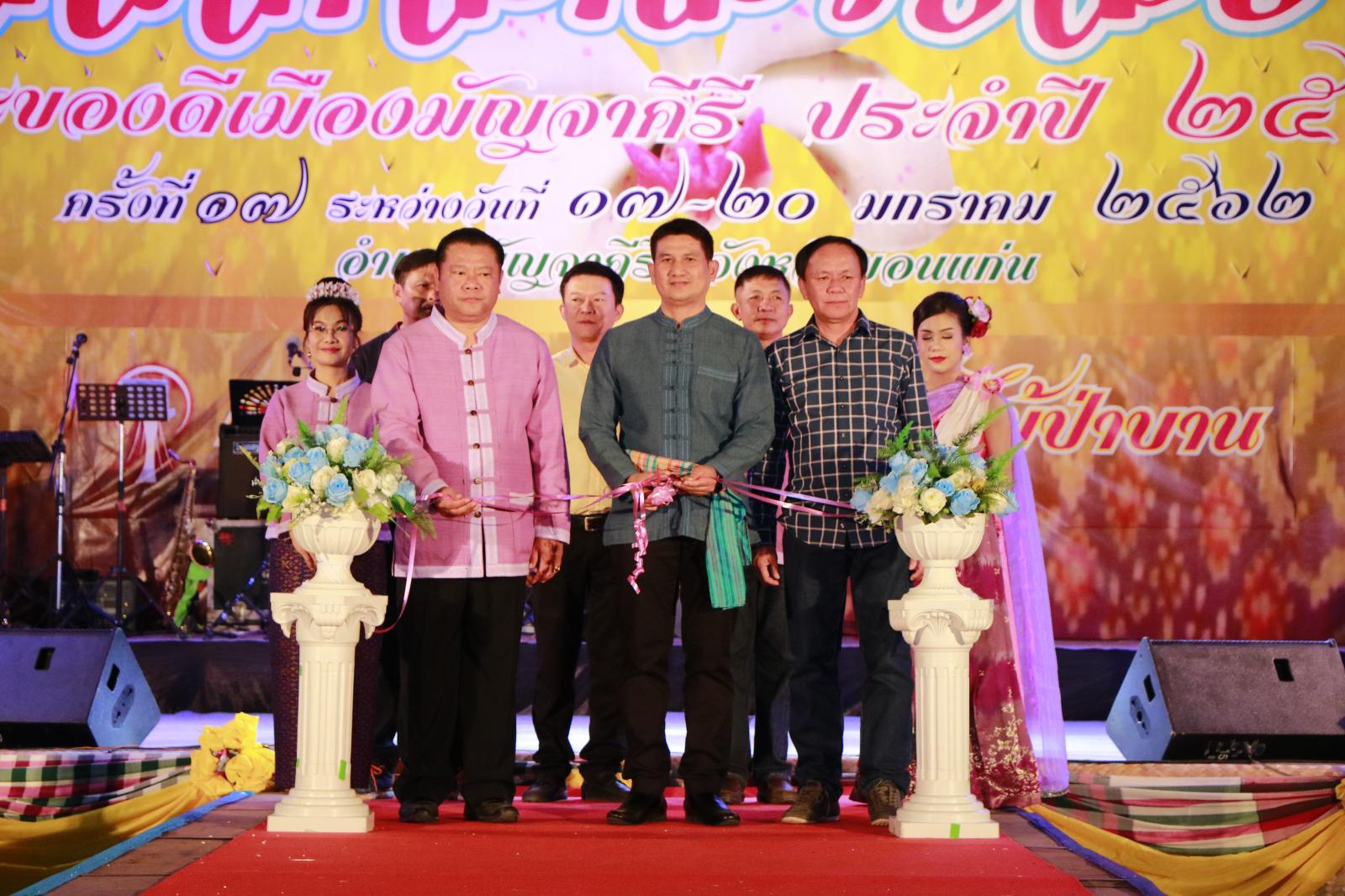เมื่อวันที่ 18 มกราคม 2562 เวลา 18.00 น. ดร.พงษ์ศักดิ์ ตั้งวานิชกพงษ์ นายก อบจ.ขอนแก่น มอบหมายให้ นายสิทธิกุล ภูคำวงศ์ รองนายก อบจ.ขอนแก่น เป็นประธานเปิดการประกวดธิดากล้วยไม้ป่าบานมัญจาคีรี ประจำปี 2562 ในงานเทศกาลกล้วยไม้ป่าบาน และของดีเมืองมัญจาคีรี ประจำปี 2562 โดยมี นายสันติ จัตุพันธ์ นายอำเภอมัญจาคีรี กล่าวรายงาน ในโอกาสนี้มี นายสุพร ค้อนดี ส.อบจ.ขอนแก่น เขต อ.มัญจาคีรี ผู้นำท้องที่ ผู้นำท้องถิ่น เข้าร่วมเป็นเกียรติ ณ สนามหน้าที่ว่าการอำเภอมัญจาคีรี อ.มัญจาคีรี จ.ขอนแก่น