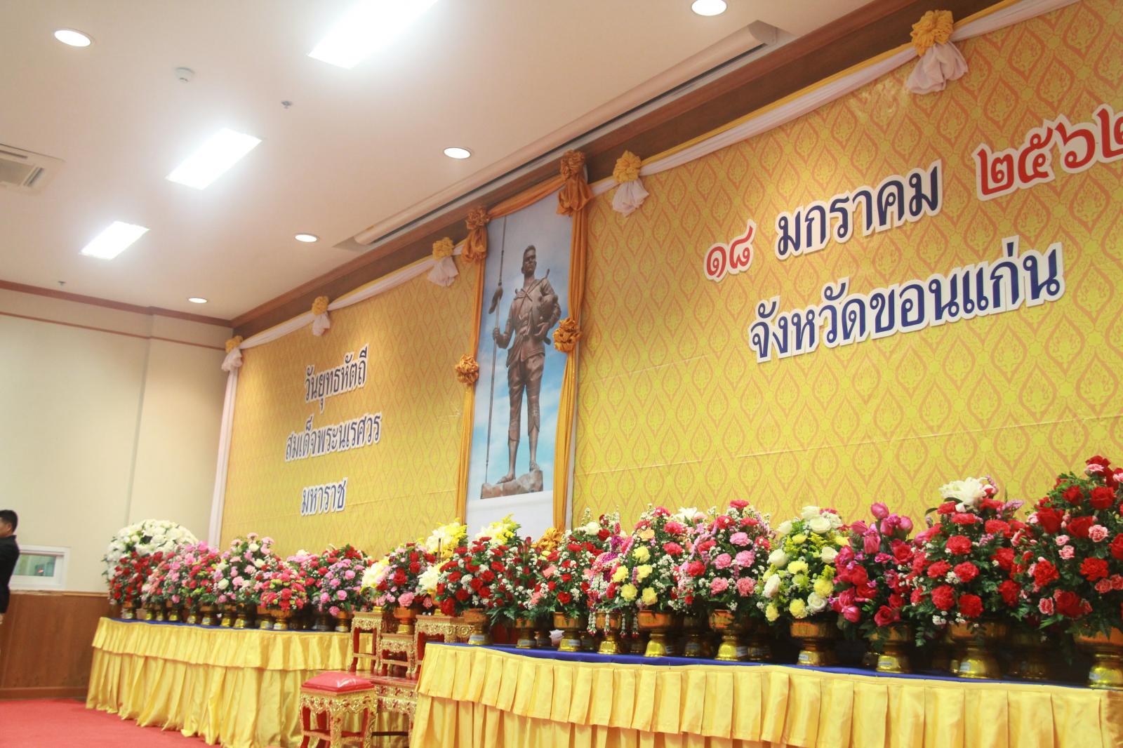 เมื่อวันที่ 18 มกราคม 2562 เวลา 08.00 น. ดร.พงศักดิ์ ตั้งวานิชกพงษ์ นายก อบจ.ขอนแก่น ได้มอบหมายให้ นางพัฒนาวดี วิริยปิยะ ปลัด อบจ.ขอนแก่น พร้อมด้วยนางสาวนงลักษณ์ รัตนจันทร์ รองปลัด อบจ.ขอนแก่น หัวหน้าส่วนราชการข้าราชการอบจ.ขอนแก่น ร่วมงานพิธีวางพานพุ่มถวายสักการะ วันยุทธหัตถีสมเด็จพระนเรศวรมหาราช เพื่อแสดงออกถึงความจงรักภักดีและน้อมรำลึกถึงพระกรุณาธิคุณต่อสมเด็จพระนเรศวรมหาราช ณ ห้องประชุมแก่นเมือง ศาลากลางจังหวัดขอนแก่น หลังใหม่ ชั้น1 อ.เมืองขอนแก่น จ.ขอนแก่น