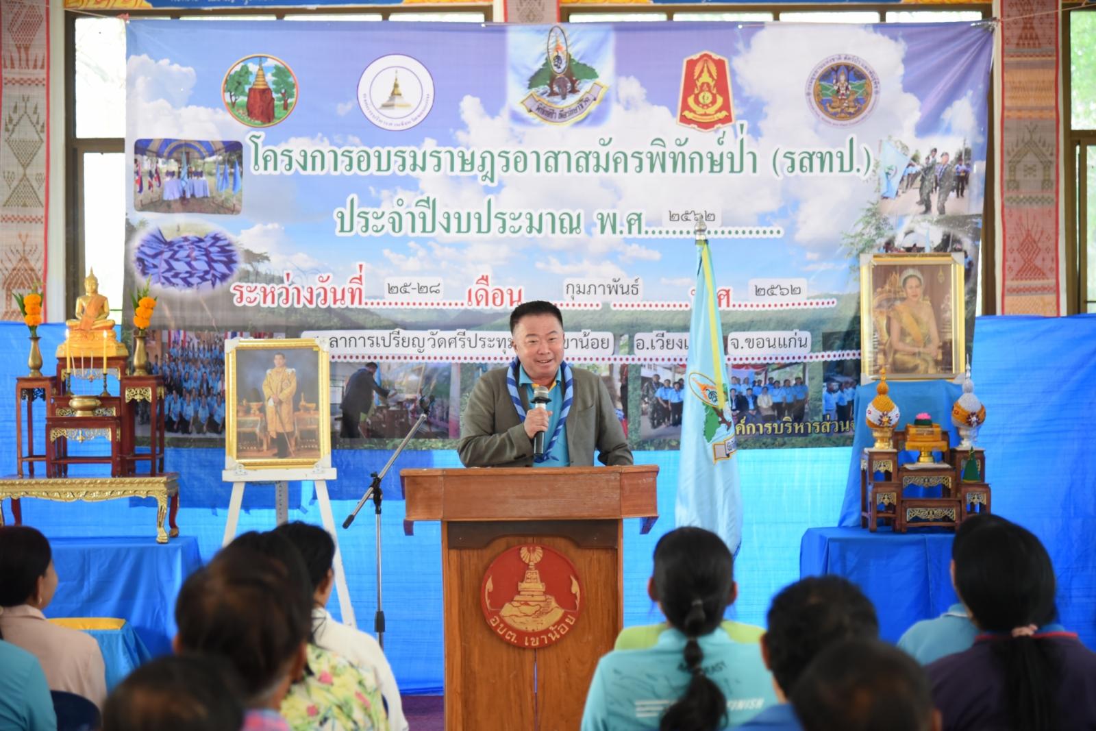 วันที่ 26 กุมภาพันธ์ 2562 ดร.พงษ์ศักดิ์ ตั้งวานิชกพงษ์ นายกองค์การบริหารส่วนจังหวัดขอนแก่น เป็นประธานในพิธีเปิดโครงการอบรมราษฎรอาสาสมัครพิทักษ์ป่า (รสทป.) ประจำปีงบประมาณ พ.ศ.2562 ณ ศาลาการเปรียญวัดศรีประทุม ตำบลเขาน้อย อำเภอเวียงเก่า จังหวัดขอนแก่น