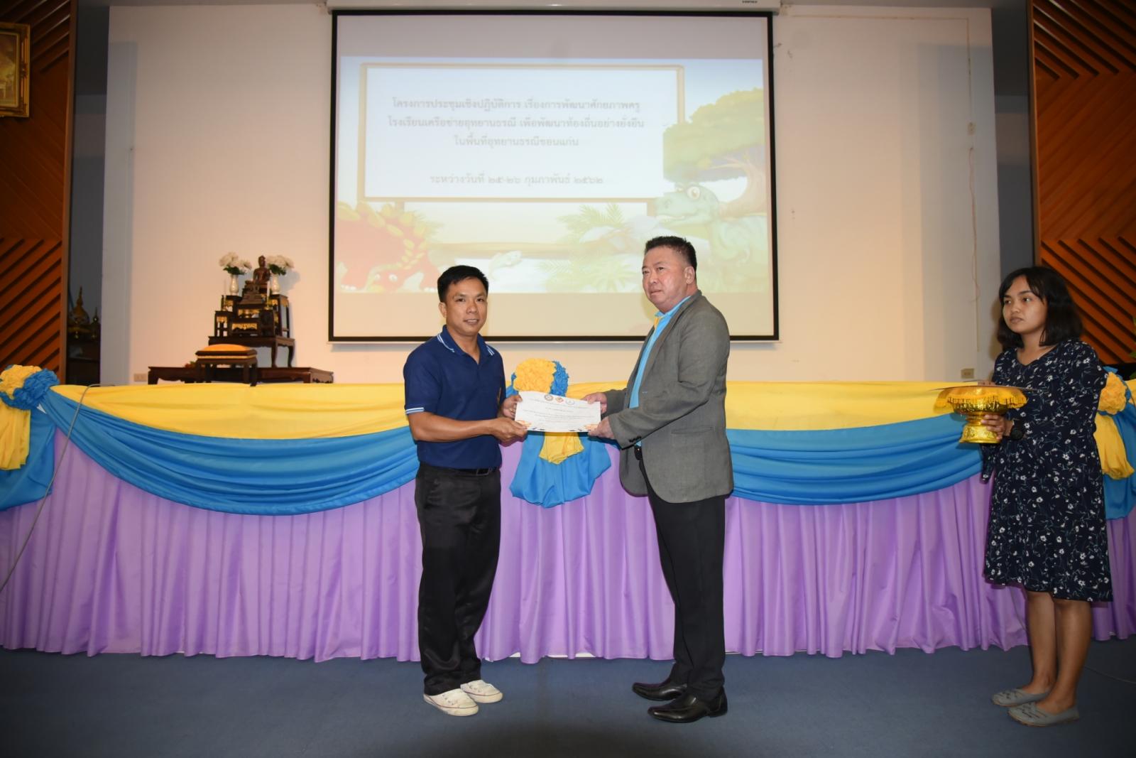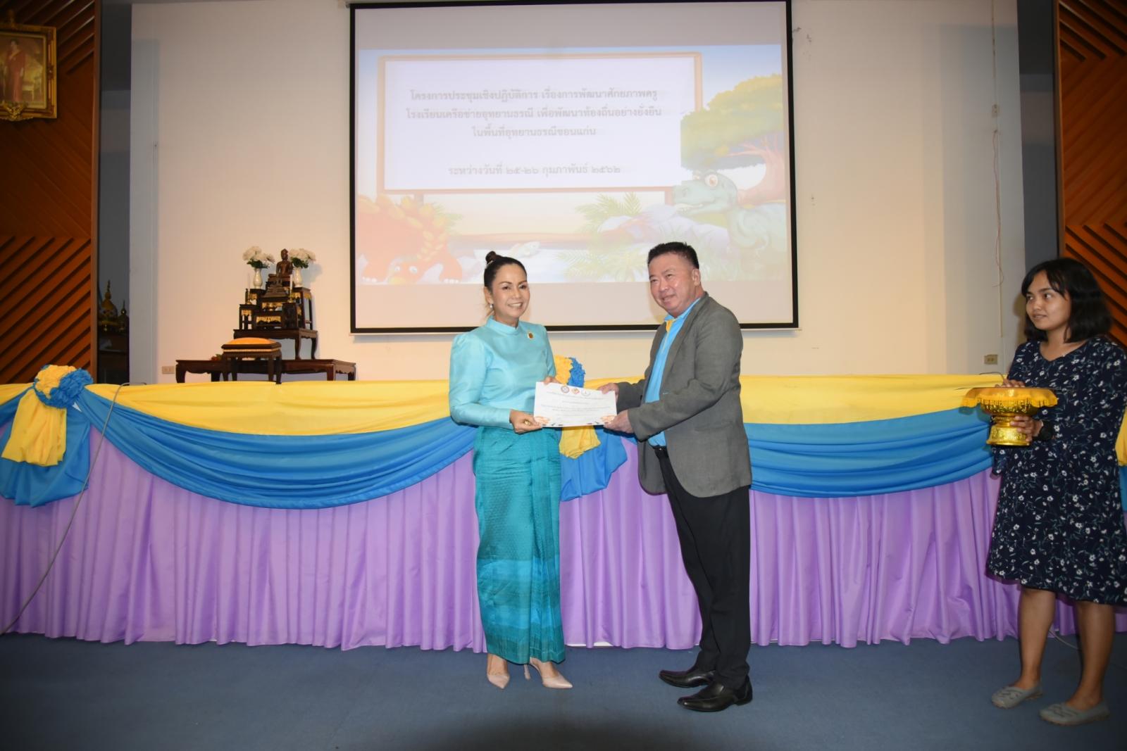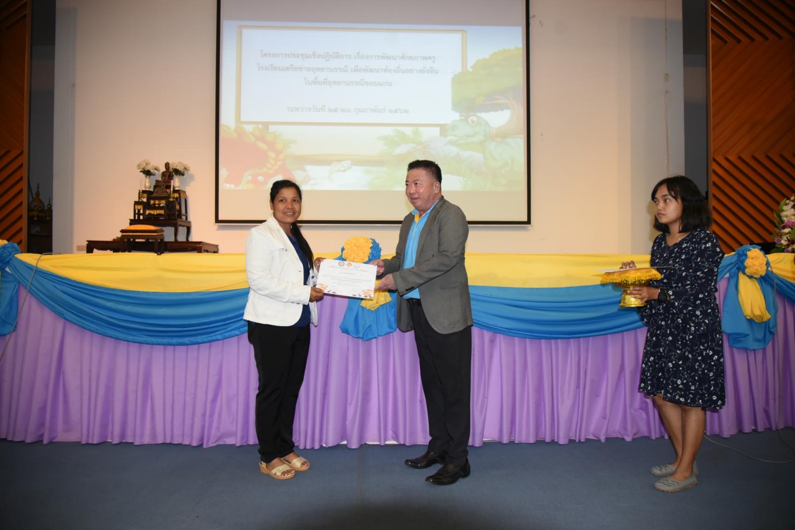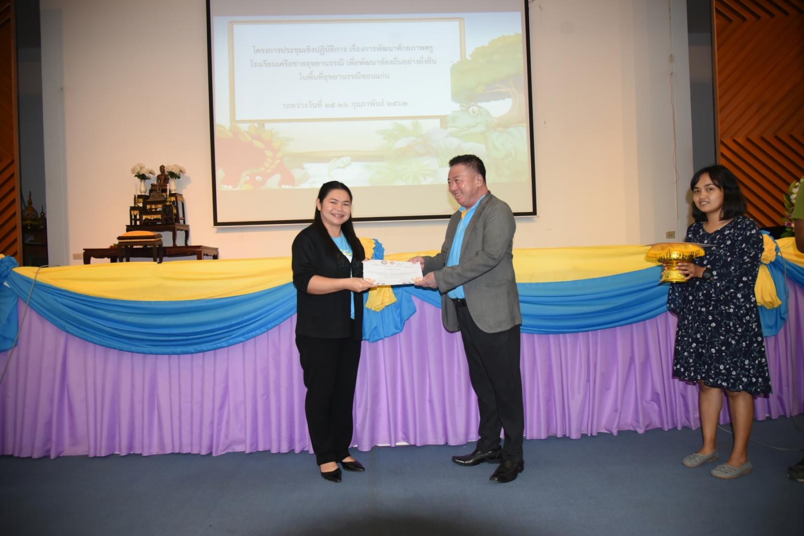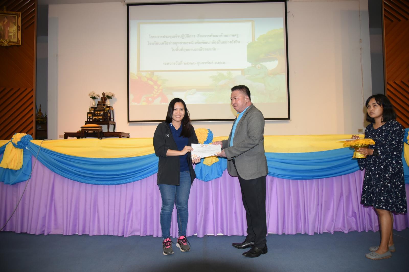 มอบเกียรติบัตรแก่ผู้เข้าร่วมโครงการประชุมเชิงปฎิบัติการ เรื่องการพัฒนาศักยภาพครูโรงเรียนเครือข่ายอุทยานธรณี