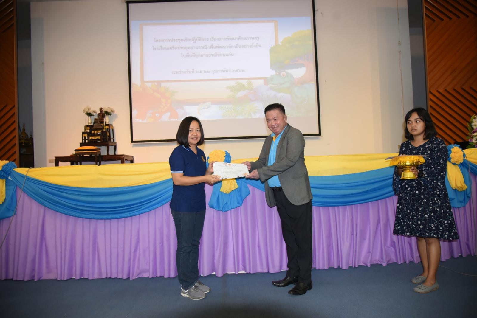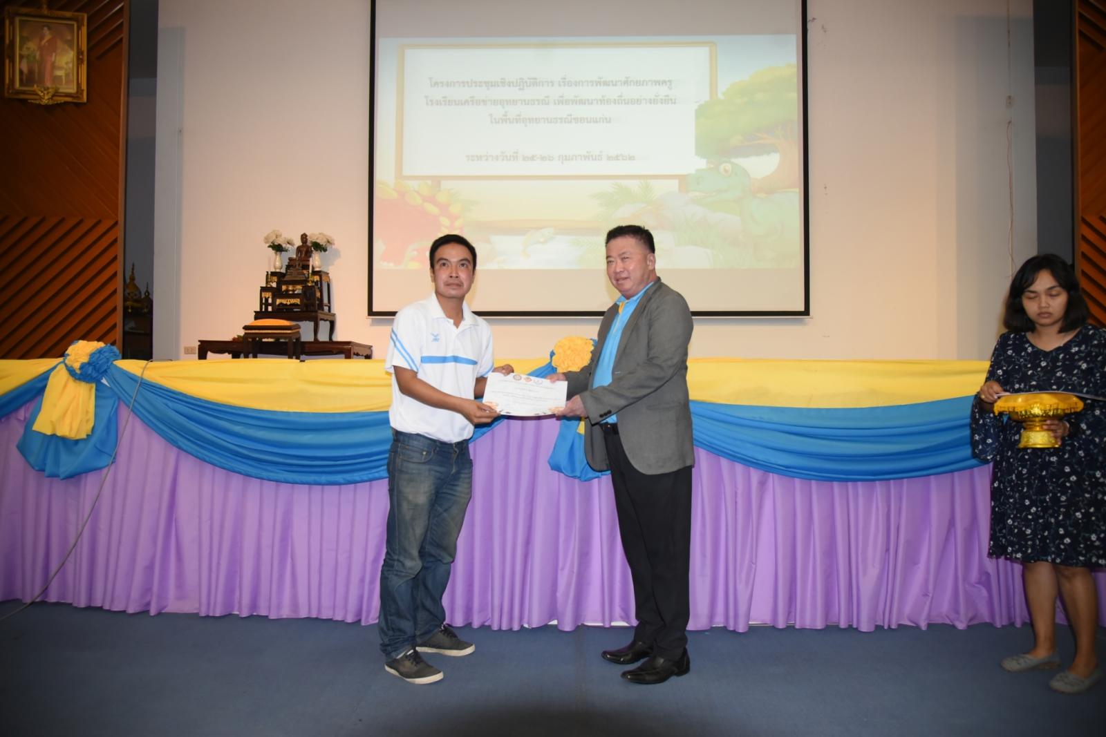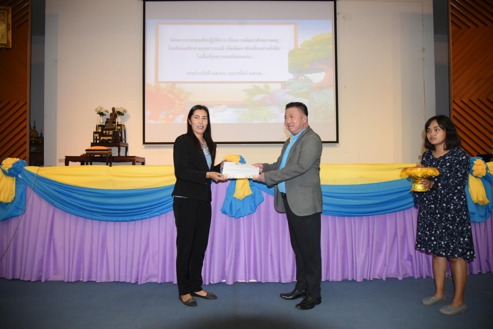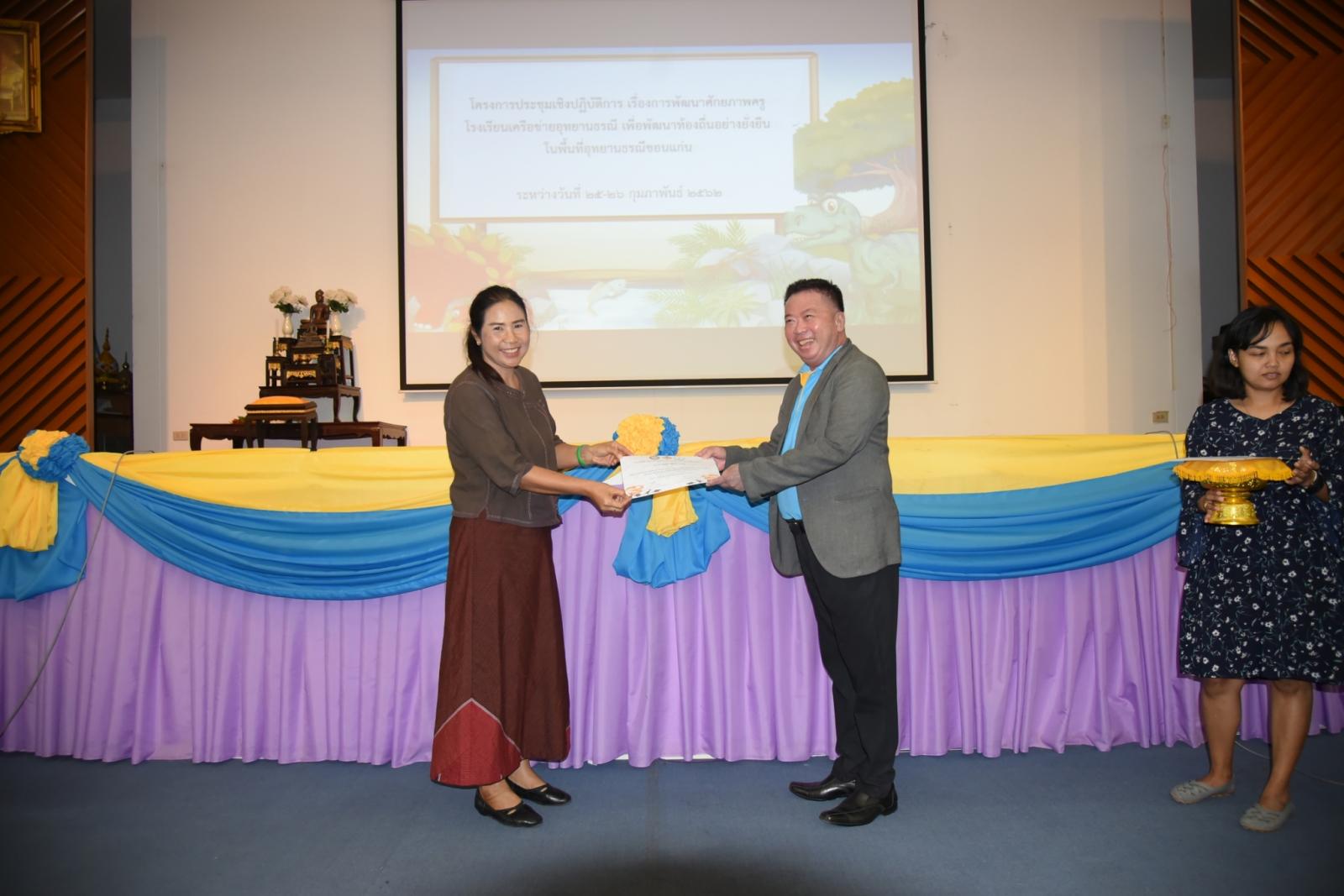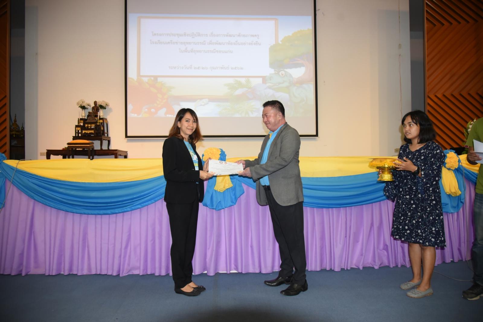 มอบเกียรติบัตรแก่ผู้เข้าร่วมโครงการประชุมเชิงปฎิบัติการ เรื่องการพัฒนาศักยภาพครูโรงเรียนเครือข่ายอุทยานธรณี