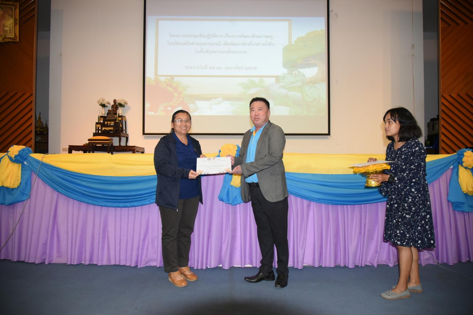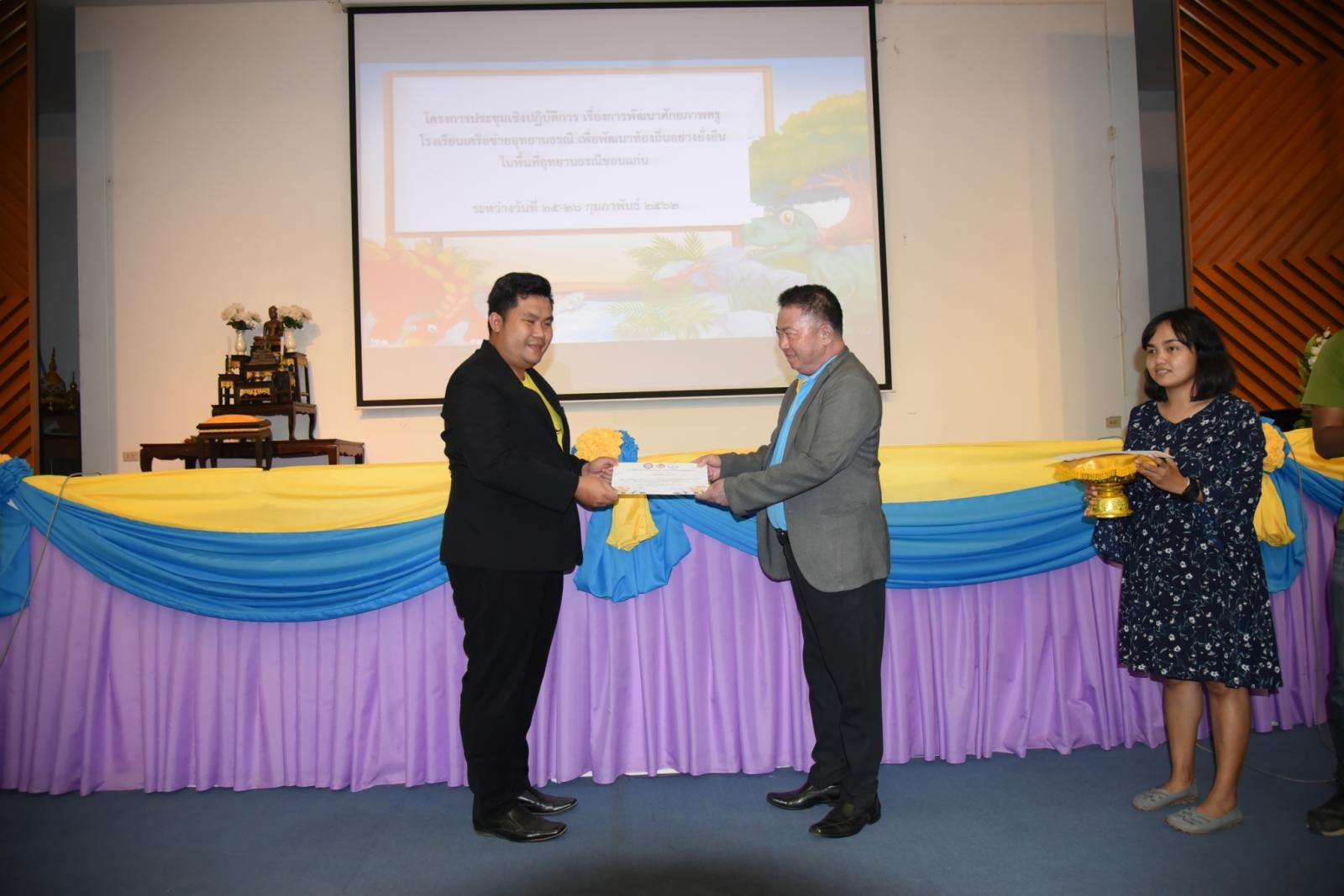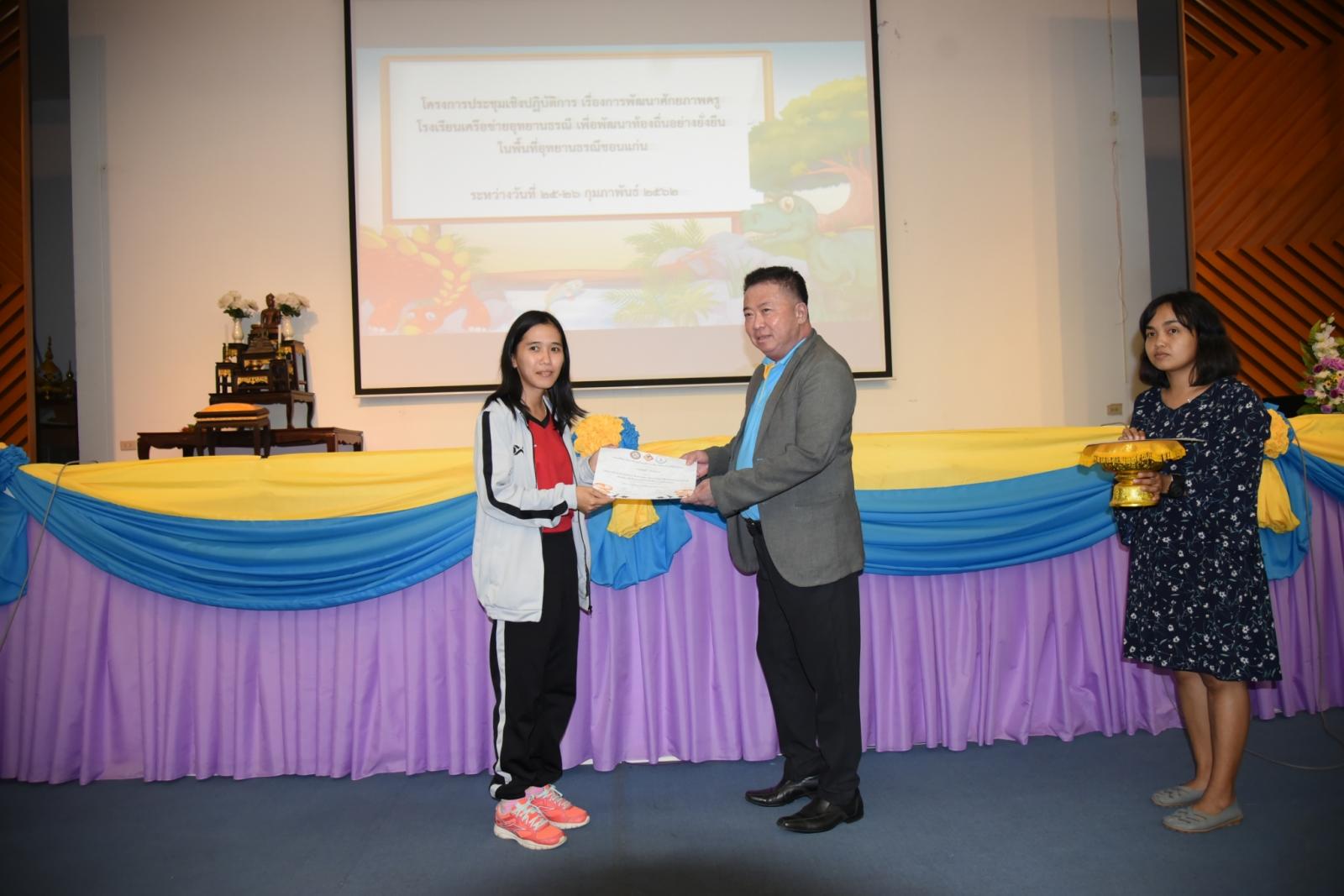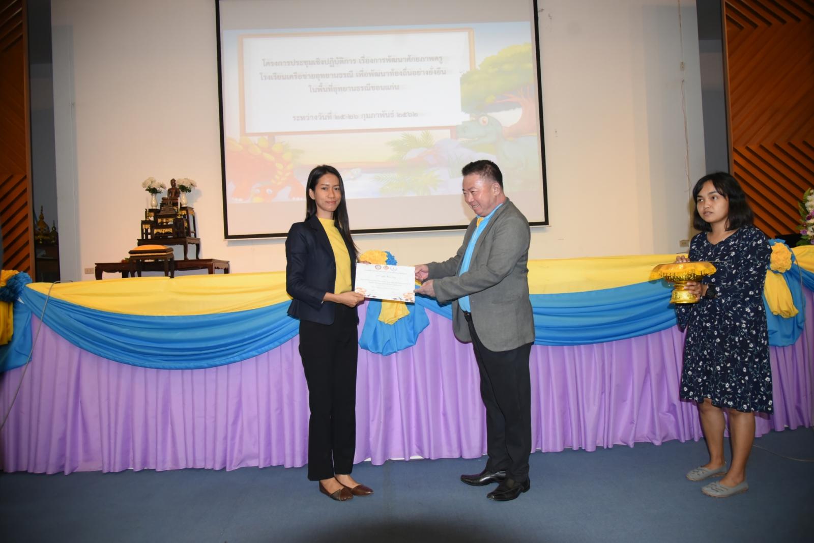 มอบเกียรติบัตรแก่ผู้เข้าร่วมโครงการประชุมเชิงปฎิบัติการ เรื่องการพัฒนาศักยภาพครูโรงเรียนเครือข่ายอุทยานธรณี