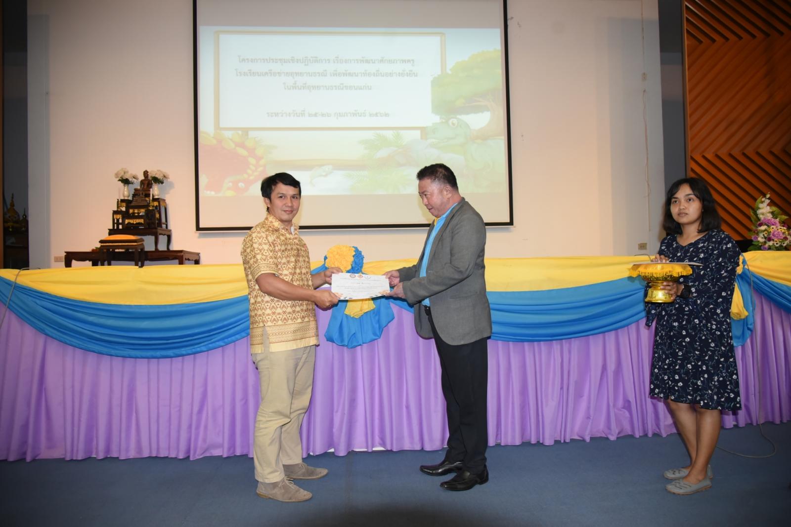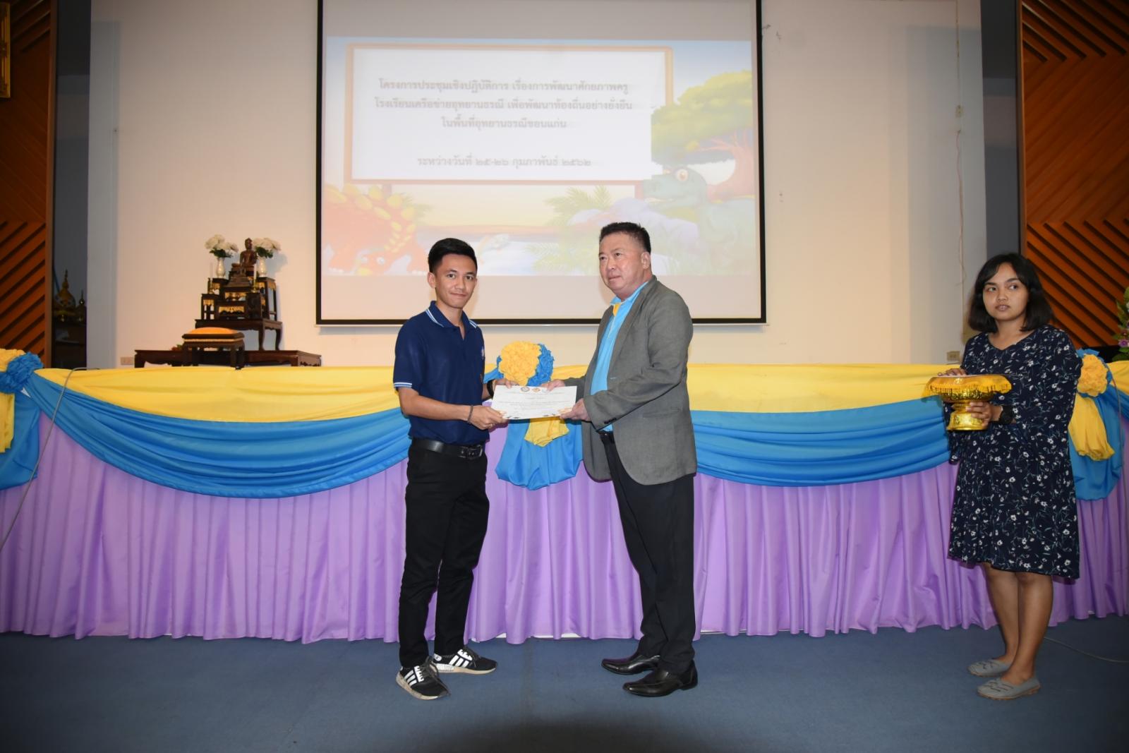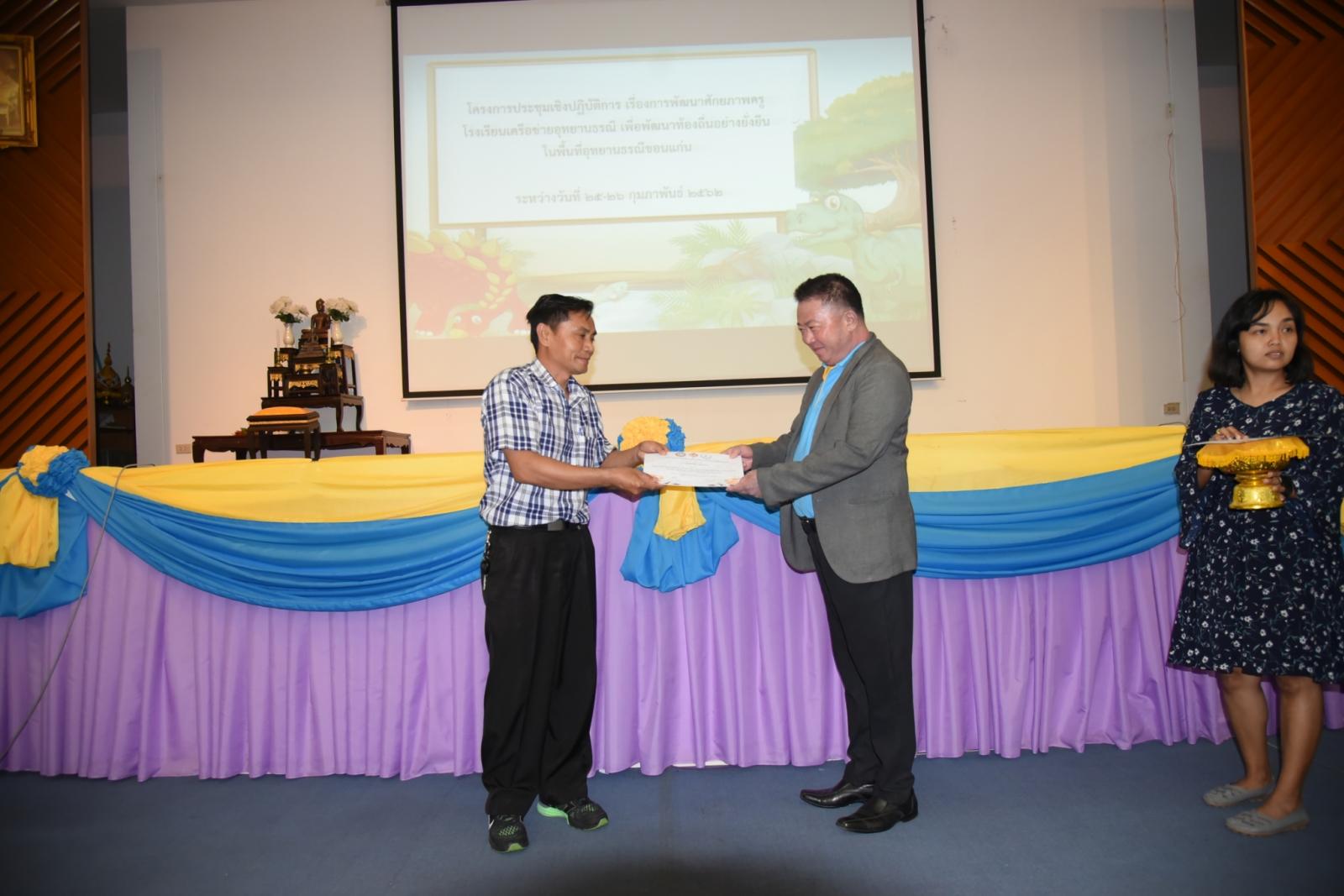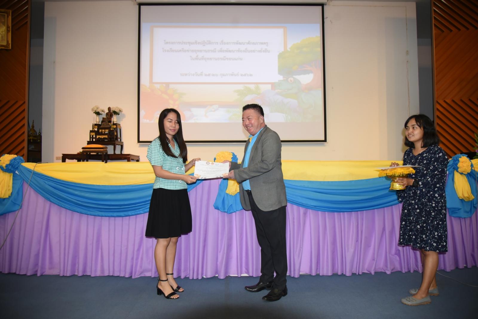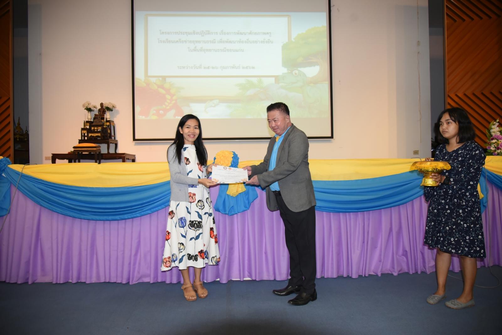 มอบเกียรติบัตรแก่ผู้เข้าร่วมโครงการประชุมเชิงปฎิบัติการ เรื่องการพัฒนาศักยภาพครูโรงเรียนเครือข่ายอุทยานธรณี