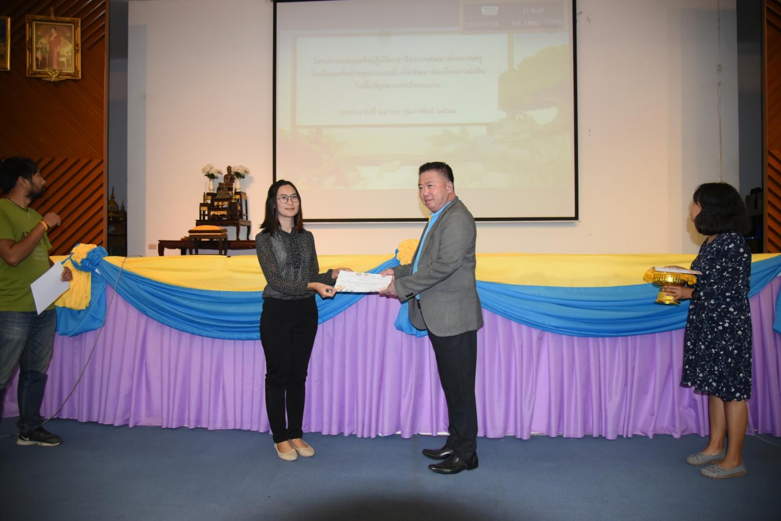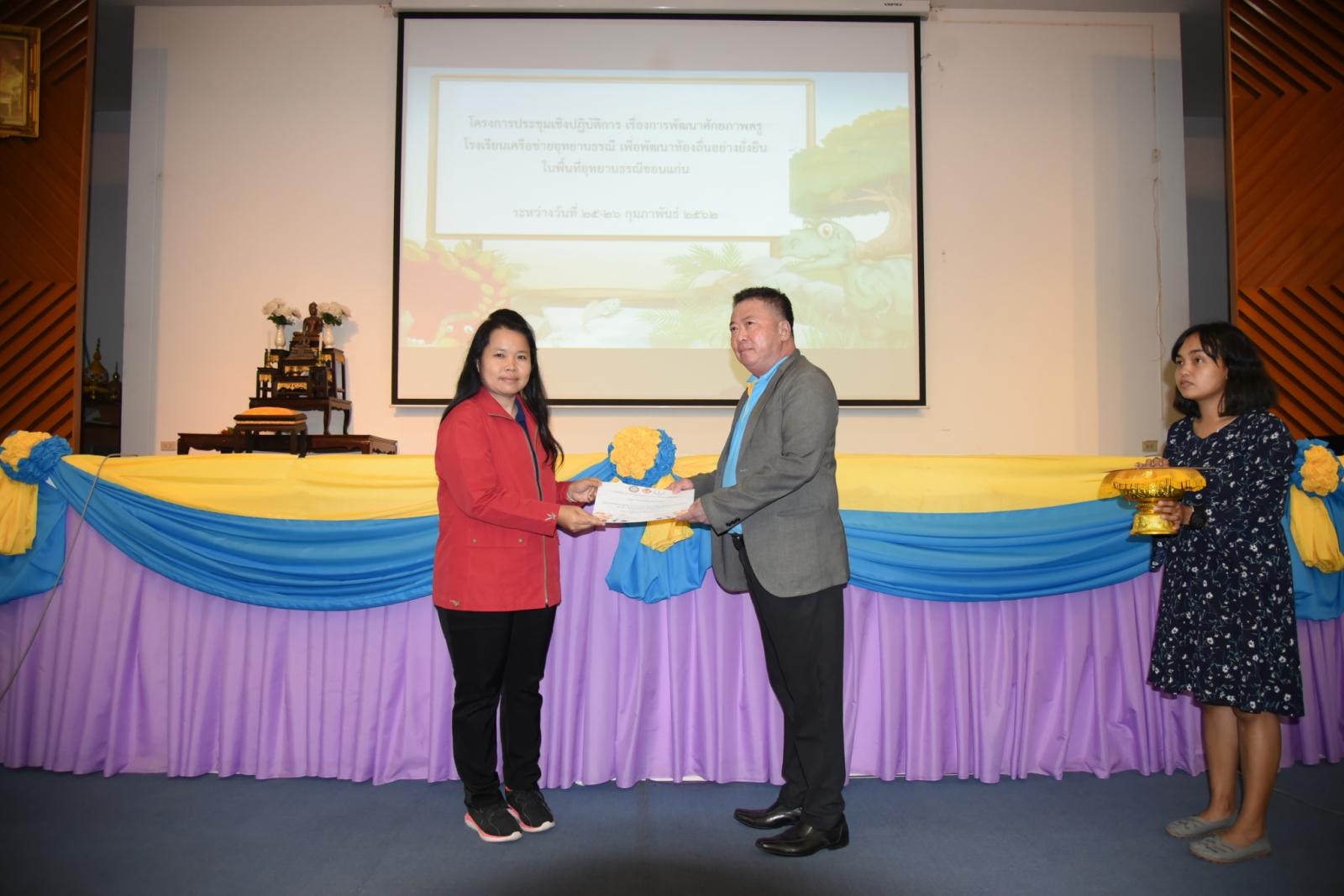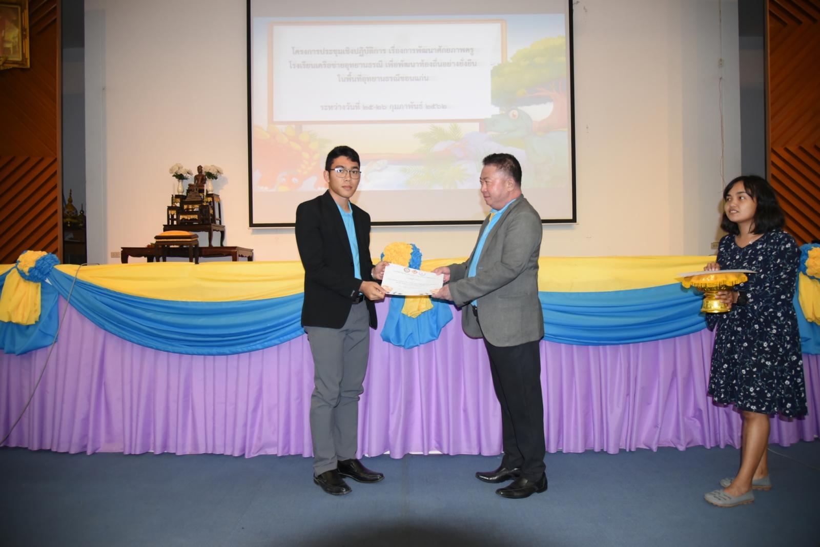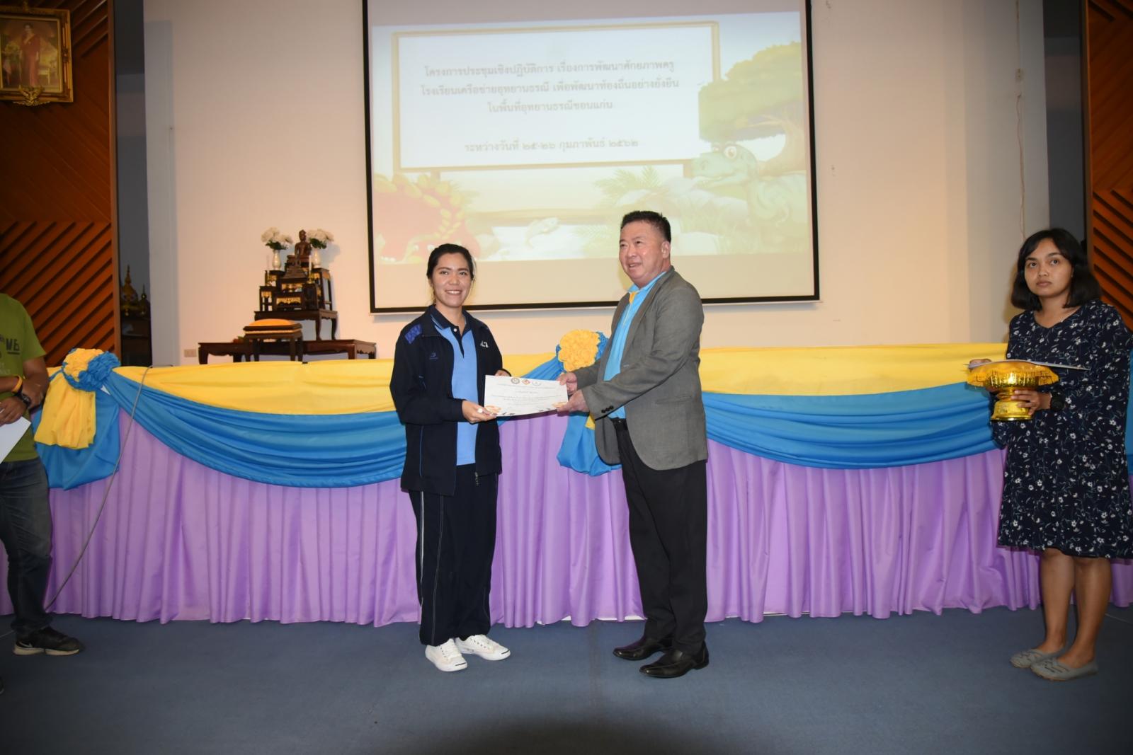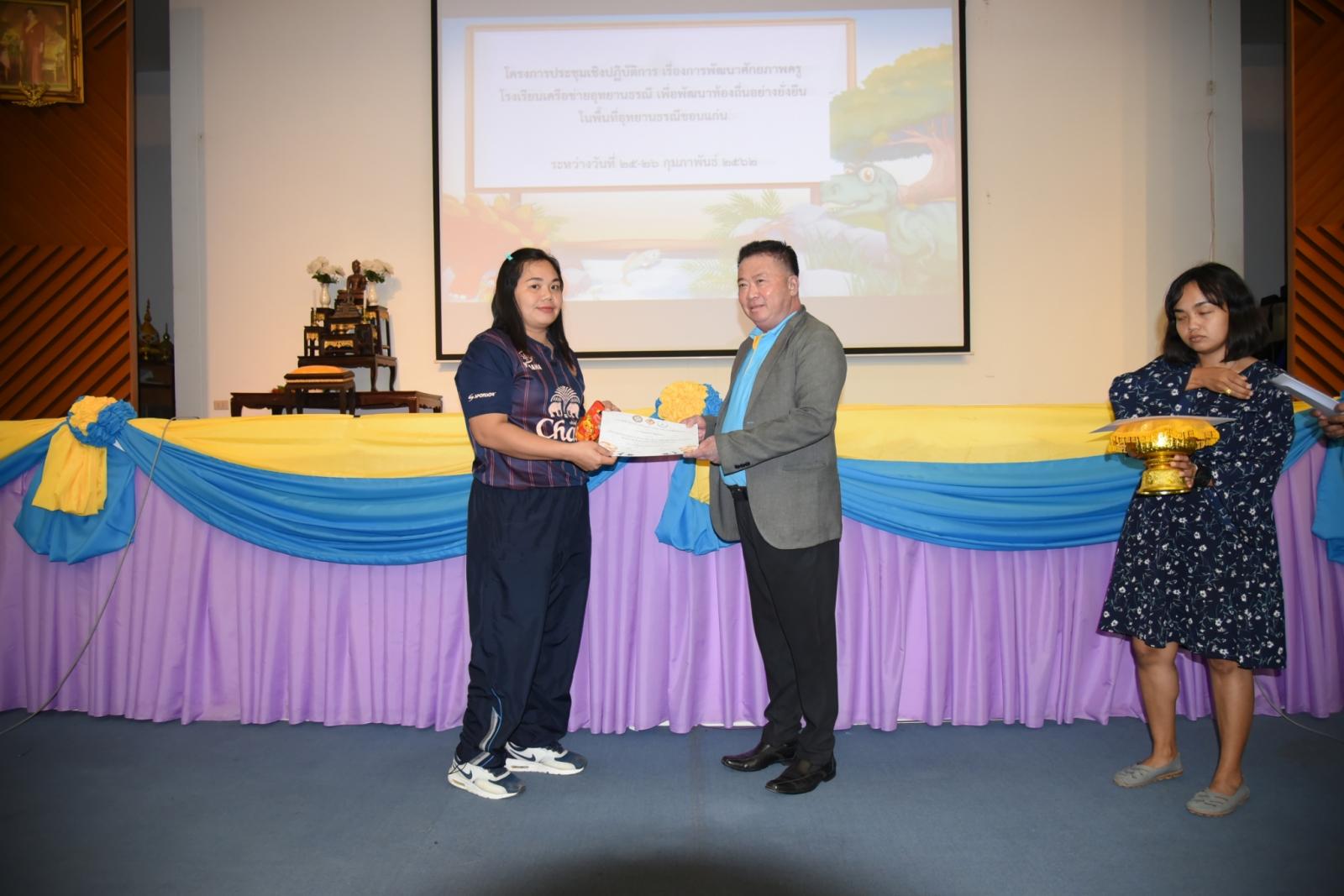 มอบเกียรติบัตรแก่ผู้เข้าร่วมโครงการประชุมเชิงปฎิบัติการ เรื่องการพัฒนาศักยภาพครูโรงเรียนเครือข่ายอุทยานธรณี
