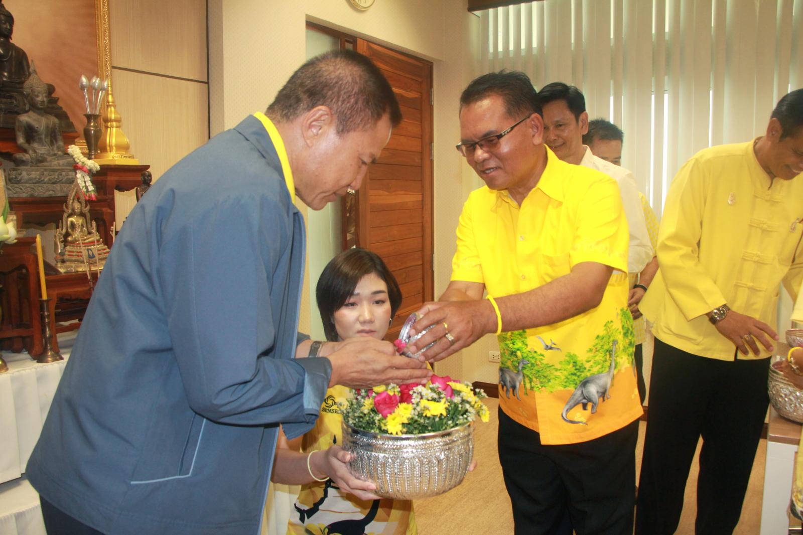 เมื่อวันที่ 10 เมษายน 2562 เวลา 10.00 น. ดร.พงษ์ศักดิ์ ตั้งวานิชกพงษ์ นายก. อบจ.ขอนแก่น มอบหมายให้ นางพัฒนาวดี วิริยปิยะ ปลัด อบจ.ขอนแก่น พร้อมด้วย นางสาวนงลักษณ์ รัตนจันทร์ รองปลัด อบจ.ขอนแก่น คณะผู้บริหาร หัวหน้าส่วนราชการ รดน้ำขอพร นายสันติ เหล่าบุญเสงี่ยม รองผู้ว่าราชการจังหวัดขอนแก่น ณ ห้องปฏิบัติงานรองผู้ว่าราชการจังหวัดขอนแก่น ศาลากลางจังหวัดขอนแก่น ชั้น 4 อ.เมืองขอนแก่น จ.ขอนแก่น