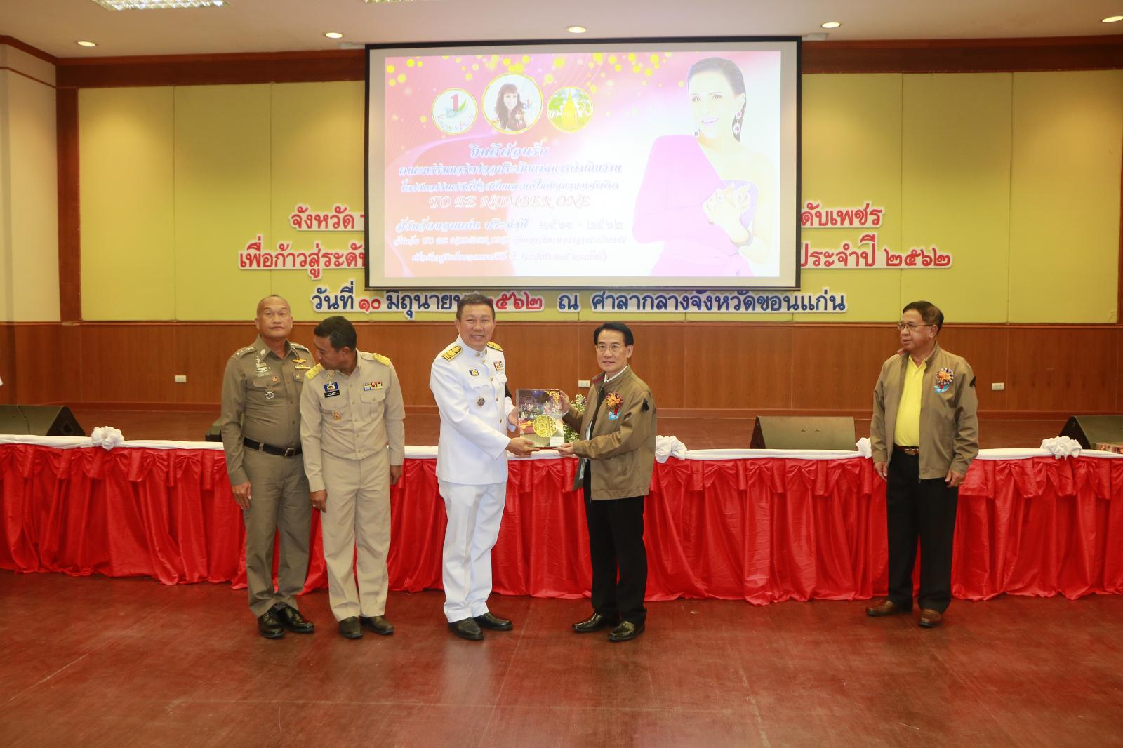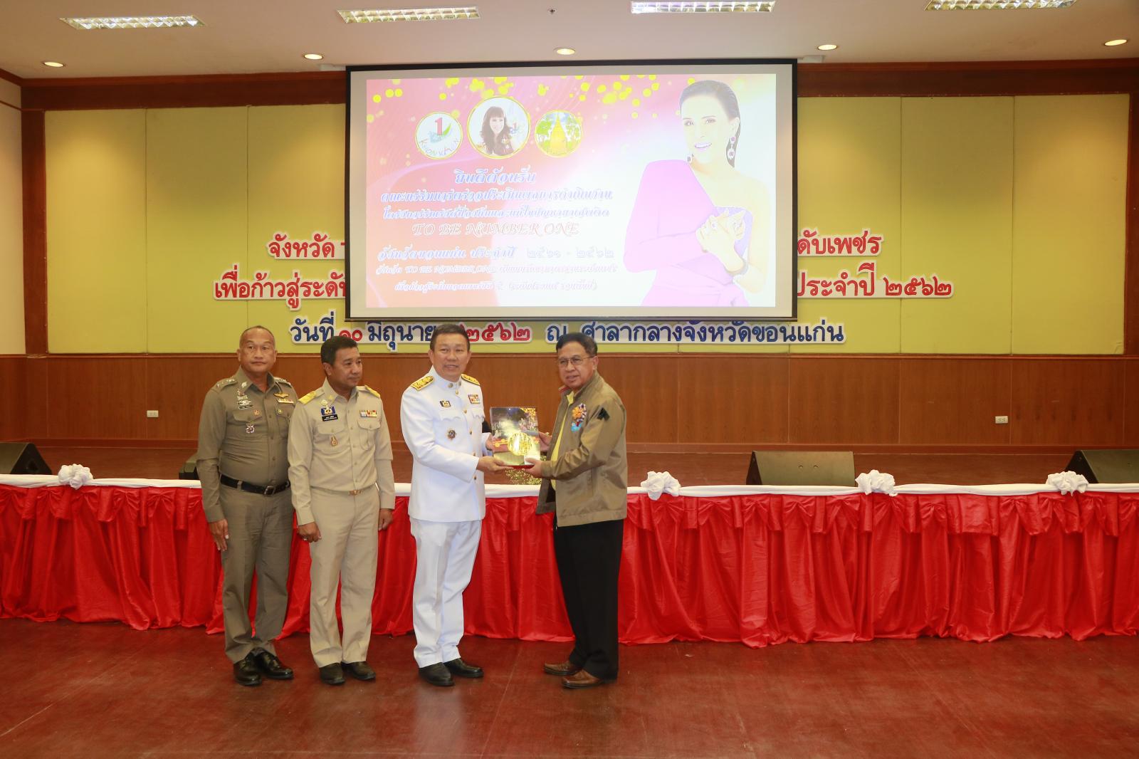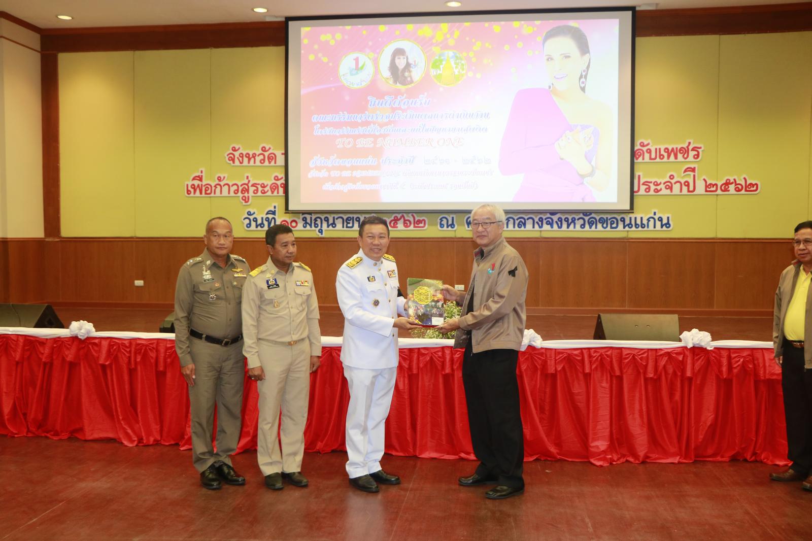 วันที่ 10 มิถุนายน 2562 เวลา 08.30 น. ดร.พงษ์ศักดิ์ ตั้งวานิชกพงษ์ นายก อบจ.ขอนแก่น มอบหมายให้ นางพัฒนาวดี วิริยปิยะ ปลัด อบจ.ขอนแก่น ร่วมนำเสนอประเภทจังหวัด TO BE NUMBER ONE (ยอดเพชร) โดยมี นายสมศักดิ์ จังตระกุล ผวจ.ขอนแก่น นายสุเทพ มณีโชติ รอง ผวจ.ขอนแก่น หัวหน้าส่วนราชการภาครัฐ และคณะกรรมการการดำเนินงาน TO BE NUMBER ONE ในจังหวัดขอนแก่น ให้การต้อนรับ นายแพทย์วชิระ เพ็งจันทร์ ผู้เชี่ยวชาญจากกรมสุขภาพจิต ประธานคณะกรรมการติดตามประเมินผลงานจังหวัดขอนแก่นTO BE NUMBER ONE ระดับประเทศ ต้นแบบระดับยอดเพชรประจำปี 2562 พร้อมคณะในการตรวจติดตามประเมินผลการดำเนินงานจังหวัด TO BE NUMBER ONE ของจังหวัด ณ หอประชุมแก่นเมือง ชั้น 1 ศาลากลางจังหวัดขอนแก่น