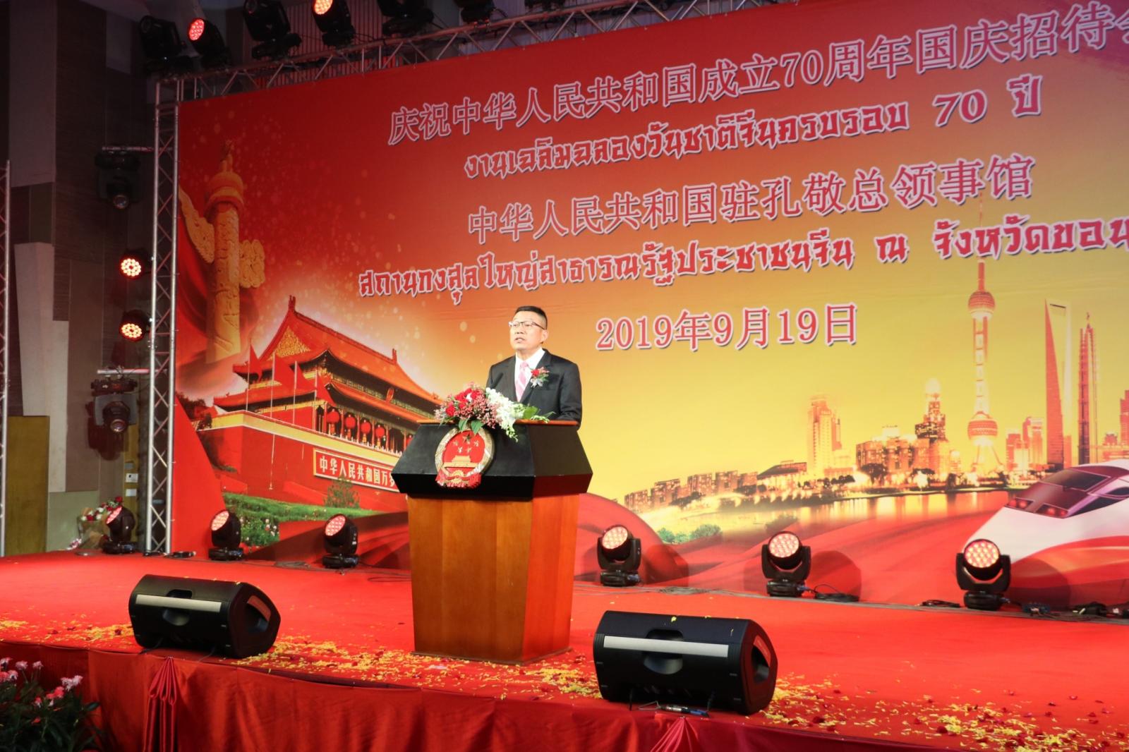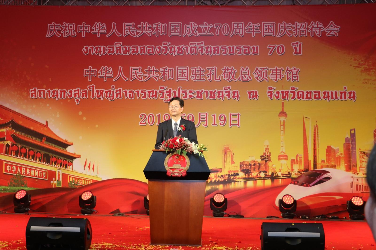 เมื่อวันที่ 19 กันยายน 2562 ดร.พงษ์ศักดิ์ ตั้งวานิชกพงษ์ นายก อบจ.ขอนแก่น มอบหมายให้ นายสิทธิกุล ภูคำวงศ์ รองนายก อบจ.ขอนแก่น ร่วมแสดงความยินดีเนื่องในโอกาส “งานเฉลิมฉลองวันชาติจีนครบรอบ 70 ปี” โดยมี ท่าน เหลี้ยว จุ้นหยุ๋น กงสุลใหญ่สาธารณรัฐประชาชนจีนประจำจังหวัดขอนแก่น กล่าวต้อนรับ ดร.สมศักดิ์ จังตระกุล ผู้ว่าราชการจังหวัดขอนแก่น กล่าวแสดงความยินดี ในโอกาสนี้มี นายหวาง หงอก เซิน กงสุลใหญ่สาธารณรัฐสังคมนิยมเวียดนามประจำจังหวัดขอนแก่น ,นายสมบัติ เพ็งพระจันทร์ กงสุลใหญ่สาธารณรัฐประชาธิปไตยประชาชนลาวประจำจังหวัดขอนแก่น ตลอดจนผู้แทนจากหน่วยงานภาครัฐและเอกชน ในจังหวัดขอนแก่น เข้าร่วมเป็นเกียรติ ณ โรงแรมพูลแมน ขอนแก่น ราชาออคิด อ.เมืองขอนแก่น จ.ขอนแก่น