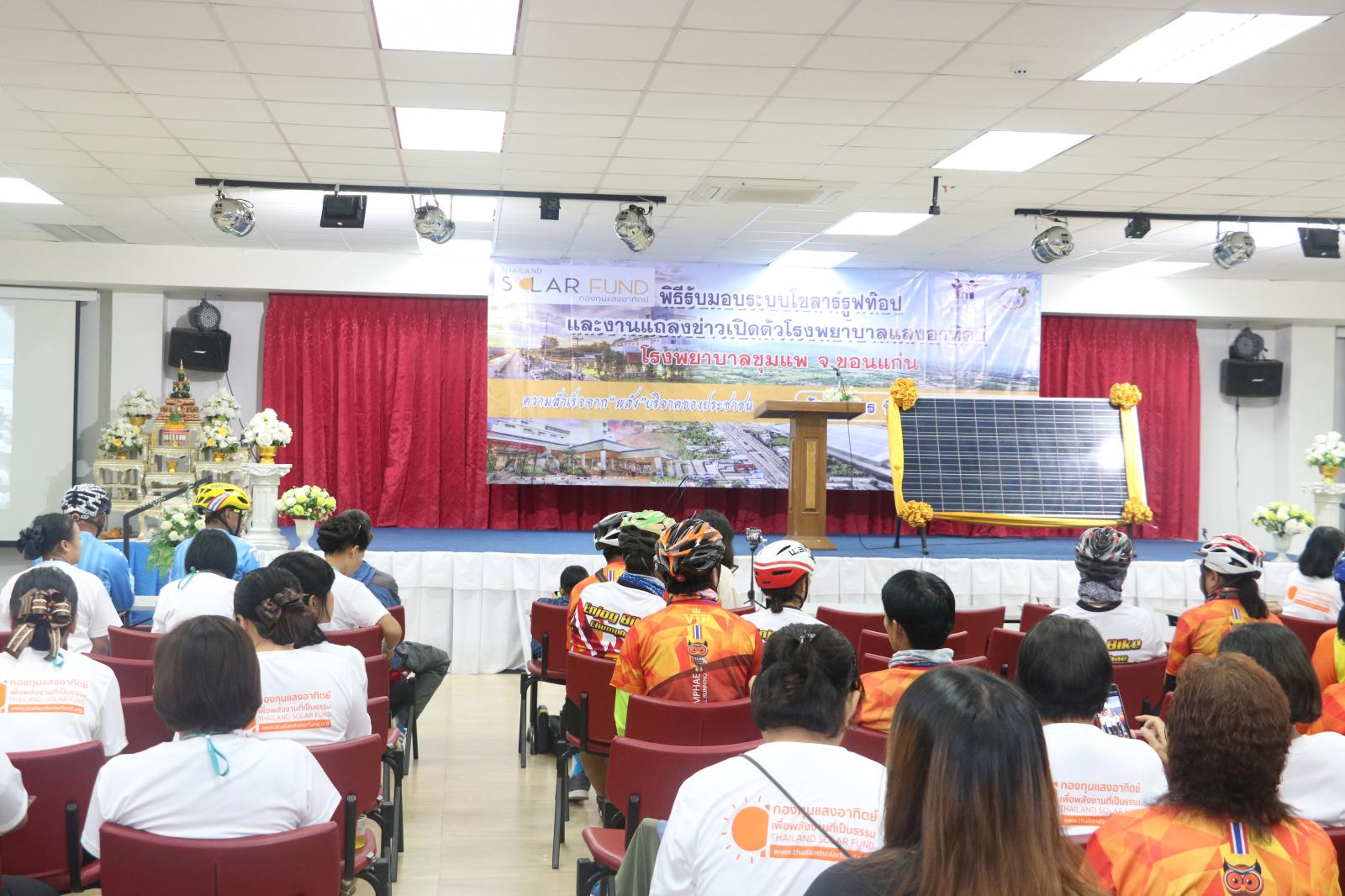 เมื่อวันที่ 22 ตุลาคม 2562 ดร.พงษ์ศักดิ์ ตั้งวานิชกพงษ์ นายก อบจ.ขอนแก่น มอบหมายให้ นายสิทธิกุล ภูคำวงศ์ รองนายก อบจ.ขอนแก่น ร่วมพิธีมอบระบบโซลาร์รูฟท๊อป และแถลงข่าวเปิดตัวโรงพยาบาลแสงอาทิตย์ โดยมี ดร.สมศักดิ์ จังตระกุล ผู้ว่าราชการจังหวัดขอนแก่น เป็นประธาน นางสุภาวดี ศรีสุขวัฒน์ นายอำเภอชุมแพ กล่าวต้อนรับ พญ.ดวงพร อัศวราชันย์ ผอ.โรงพยาบาลชุมแพ กล่าวรายงาน ทั้งนี้มีผู้แทนจากหน่วยงานภาครัฐ และเอกชน เข้าร่วมเป็นเกียรติ ณ โรงพยาบาลชุมแพ อ.ชุมแพ จ.ขอนแก่น