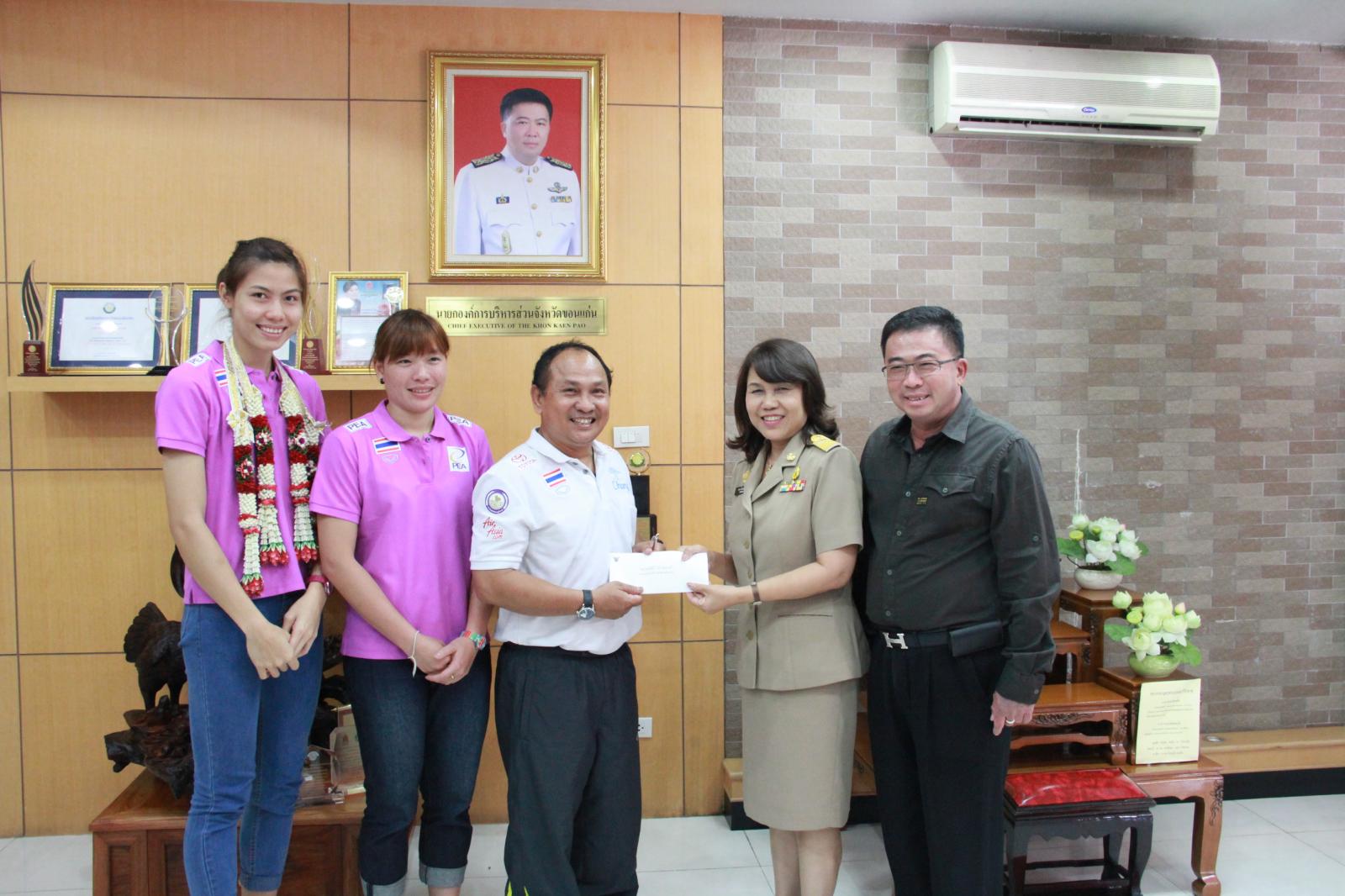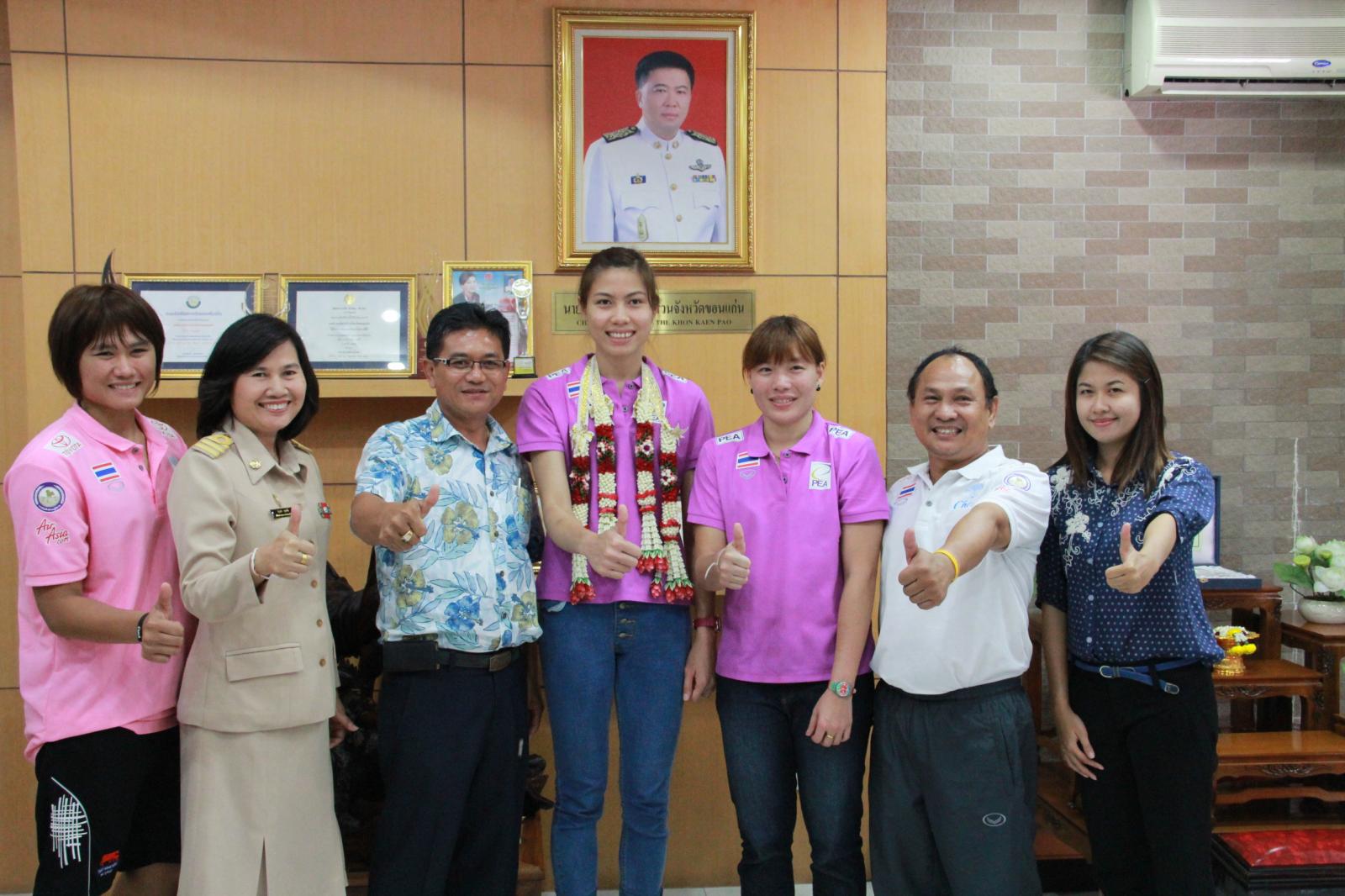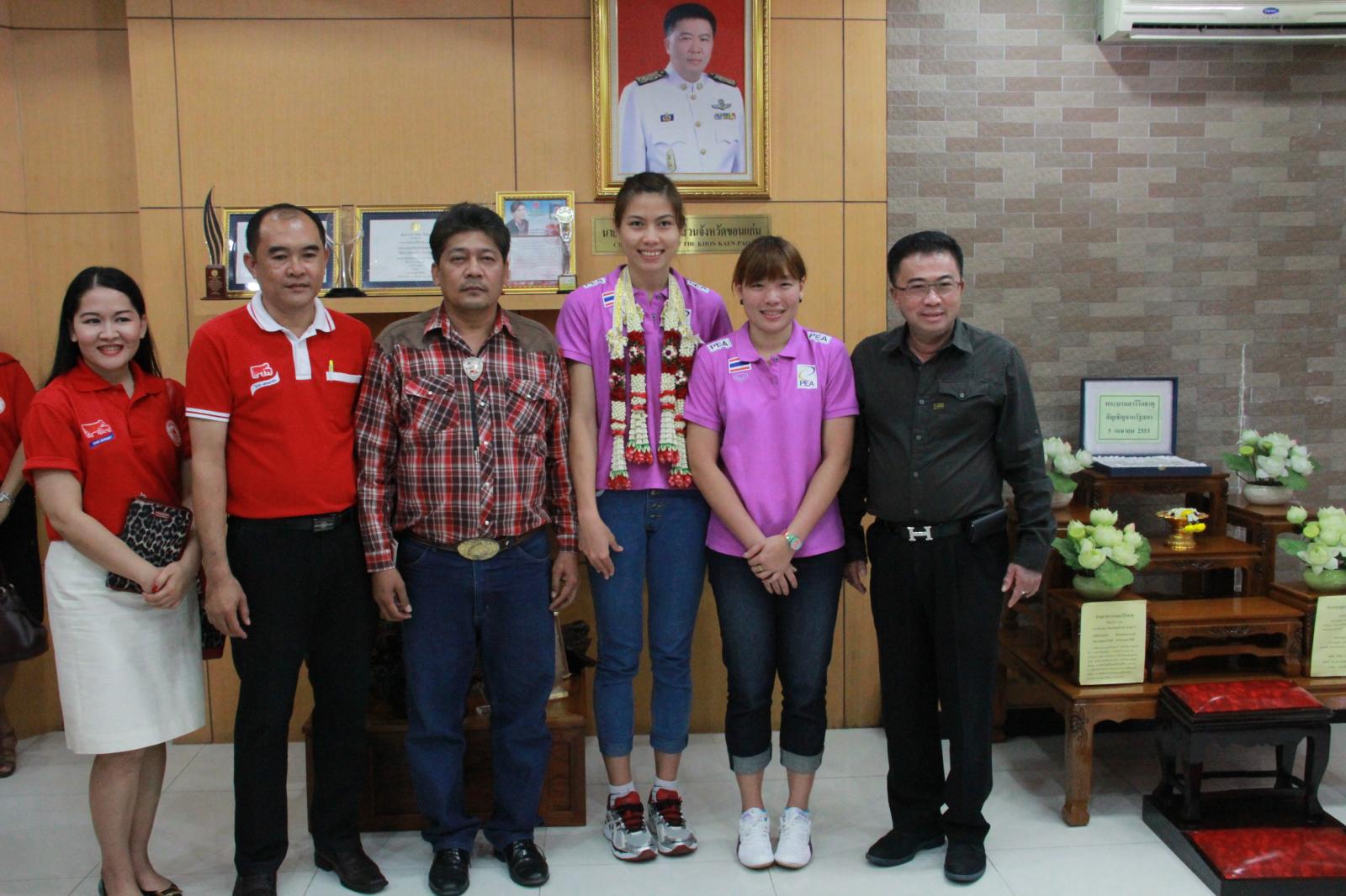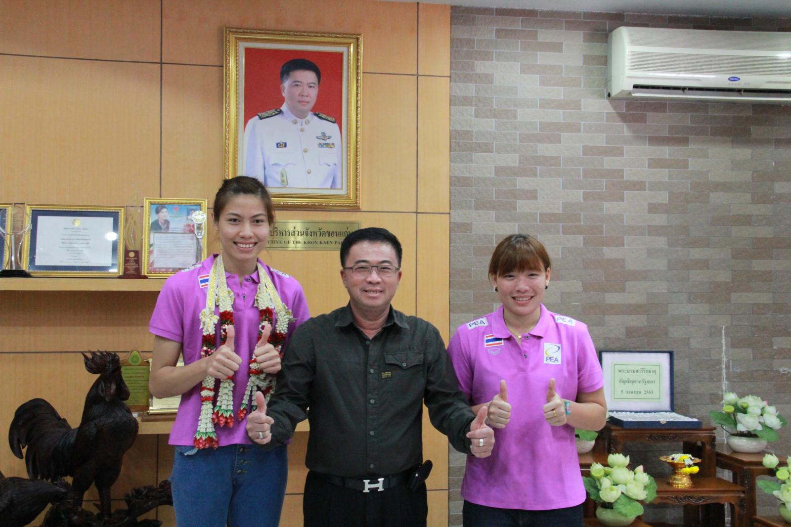 ดร.พงษ์ศักดิ์ ตั้งวานิชกพงษ์ นายกองค์การบริหารส่วนจังหวัดขอนแก่น ให้การต้อนรับ นางสาวทัดดาว(แนน) นึกแจ้ง นางสาวฐาปไพพรรณ(บะหมี่) ไชยศรี นักกีฬาทีมชาติไทยชุด "แชมป์วอลเลย์บอลหญิงแห่งเอเชีย ปี 2013 ครั้งที่ 17" และ นางสาวคัทลีย์ ปิ่นสุวรรณ นักกีฬาวอลเลย์บอลหญิงเยาวชนทีมชาติไทยพร้อมคณะ เมื่อ 30 กันยายน 2556 ที่สำนักงานองค์การบริหารส่วนจังหวัดขอนแก่น ชั้น 2
