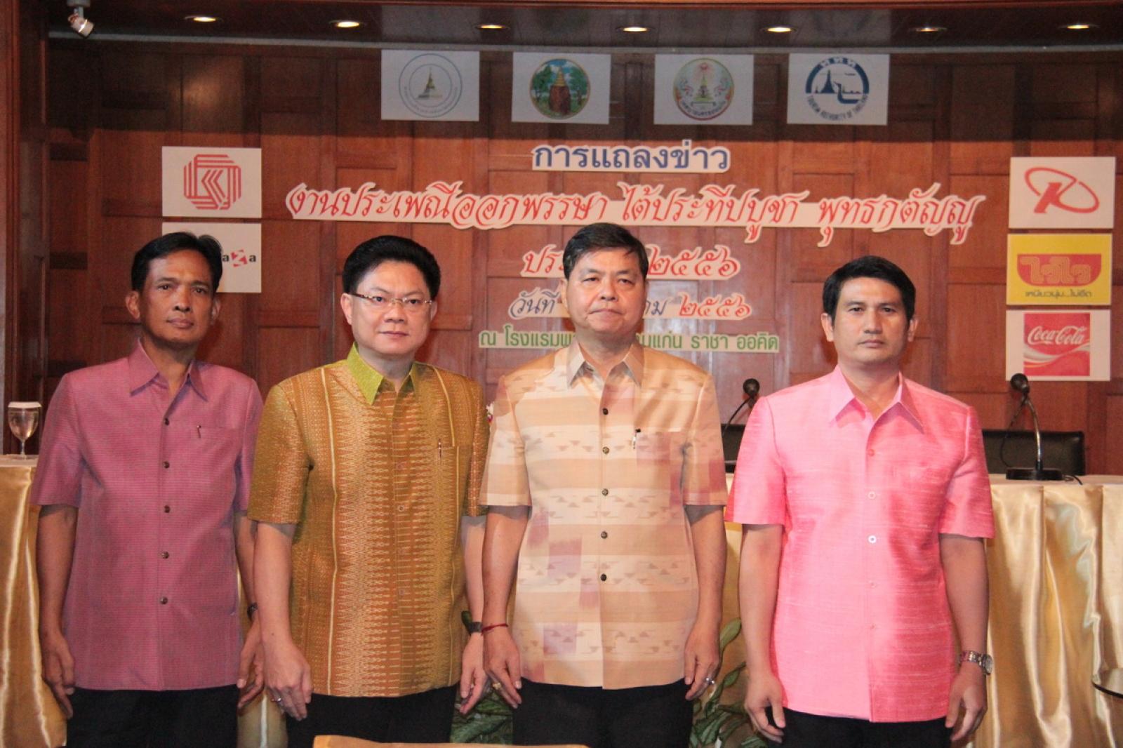 เมื่อวันที่ 3 ต.ค.2556 ที่ผ่านมา นายก อบจ.ขอนแก่น ดร.พงษ์ศักดิ์ ตั้งวานิชกพงษ์ มอบหมายให้ รองนายก อบจ.ขอนแก่น นายสิทธิกุล ภูคำวงศ์ ร่วมพิธีแถลงข่าวการจัด “งานประเพณีออกพรรษา ไต้ประทีปบูชา พุทธกตัญญู ประจำปี 2556” ณ ห้องไหมไทย โรงแรมพูลแมน ราชาออคิดขอนแก่น โดยมี ผวจ.ขอนแก่น นายสมศักดิ์ สุวรรณสุจริต เป็นประธานในพิธี พร้อมด้วย ผอ.ททท.สำนักงานขอนแก่น นายนพรัตน์ กอกหวาน และ นายกเทศมนตรีนครขอนแก่น นายธีระศักดิ์ ฑีฆายุพันธุ์ ร่วมในพิธี