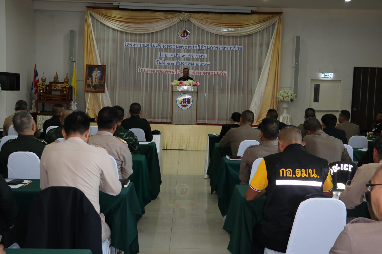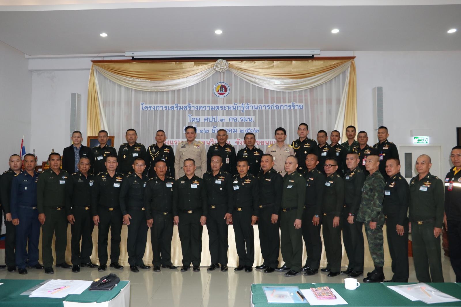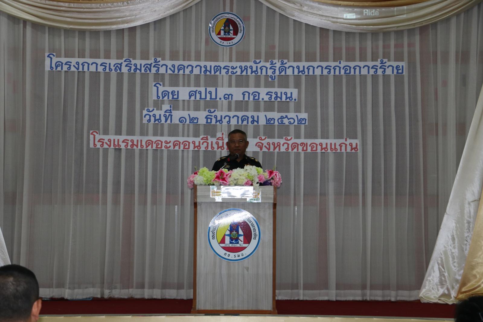 วันที่ 12 ธันวาคม 2562 เวลา 09.00 น. ดร.พงษ์ศักดิ์ ตั้งวานิชกพงษ์ นายก อบจ.ขอนแก่น มอบหมายให้ นายสิทธิกุล ภูคำวงศ์ รองนายก อบจ.ขอนแก่น ร่วมพิธีเปิดการประชุมโครงการเสริมสร้างความตระหนักรู้ด้านก่อการร้าย ประจำปีงบประมาณ 2563 โดยมี พล.ท.อรรถพร เป้าประจักษ์ ผอ.ศปป.3 กอ.รมน. เป็นประธานในพิธี และนายศรัทธา คชพลายุกต์ รองผู้ว่าราชารจังหวัดขอนแก่น ให้เกียรติขึ้นบรรยายพิเศษ ให้กับข้าราชการทหาร ข้าราชการตำรวจ และข้าราชการพลเรือนรับฟัง ณ โรงแรมอำนวยสุข อ.เมือง จ.ขอนแก่น