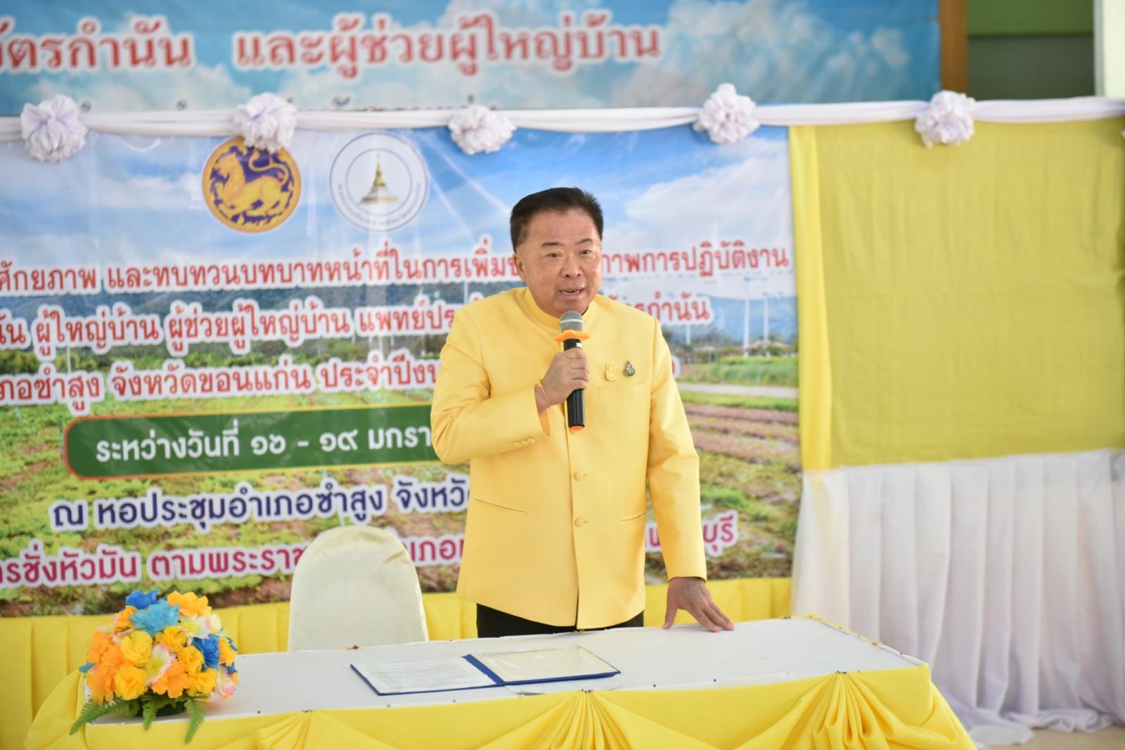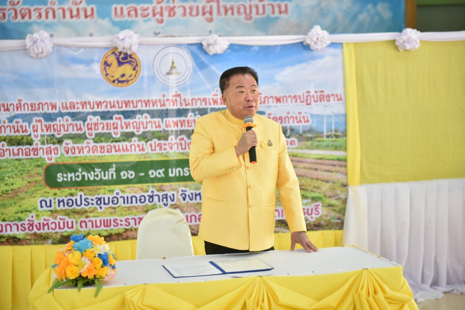 วันที่ 16 มกราคม 2563 เวลา 10.30 น. ท่านนายก อบจ.ขอนแก่น ดร.พงษ์ศักดิ์ ตั้งวานิชกพงษ์ ประธานพิธีเปิดโครงการพัฒนาศักยภาพ และทบทวนบทบาทหน้าที่ในการเพิ่มประสิทธิภาพการปฏิบัติงานของกำนัน ผู้ใหญ่บ้าน ผู้ช่วยผู้ใหญ่บ้าน แพทย์ประจำตำบล สารวัตรกำนัน อำเภอซำสูง จังหวัดขอนแก่น ประจำปีงบประมาณ พ.ศ. 2563 โดยมี นายกิจจา หมอกเจริญ ปลัดอำเภอซำสูง หัวหน้ากลุ่มงานบริหารงานปกครอง กล่าวรายงาน ในโอกาสนี้มี นายอุทัย วิสิลา ส.อบจ.ขอนแก่น อำเภอซำสูง, นายเฉลิมชัย ขวัญเมือง นายอำเภอซำสูง และหัวหน้าส่วนราชการ เข้าร่วมเป็นเกียรติ ณ หอประชุมที่ว่าการอำเภอซำสูง อ.ซำสูง จ.ขอนแก่น
