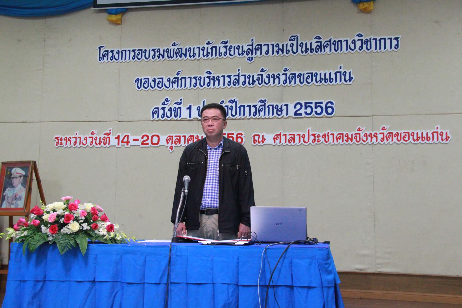 เมื่อวันที่ 14 ตุลาคม 2556 องค์การบริหารส่วนจังหวัดขอนแก่น จัดโครงการ “อบรมพัฒนานักเรียนสู่ความเป็นเลิศทางวิชาการ” ครั้งที่ 1 ประจำปีการศึกษา 2556 ณ ศาลาประชาคมจังหวัดขอนแก่น โดยมี นายกองค์การบริหารส่วนจังหวัดขอนแก่น ดร.พงษ์ศักดิ์ ตั้งวานิชกพงษ์ เป็นประธานเปิดโครงการ พร้อมด้วย สมาชิกสภาองค์การบริหารส่วนจังหวัดขอนแก่น อำเภอเมือง เขต 7 นางวิไลตา จันทนพิมพ์ ผู้อำนวยการสำนักงานเขตพื้นที่การศึกษามัธยมศึกษา เขต 25 นายรังสรรค์ เถื่อนนาดี ปลัดองค์การบริหารส่วนจังหวัดขอนแก่น นางสุมาลี ฐานวิเศษ และคณะผู้บริหาร ข้าราชการองค์การบริหารส่วนจังหวัดขอนแก่น ร่วมเป็นเกียรติ