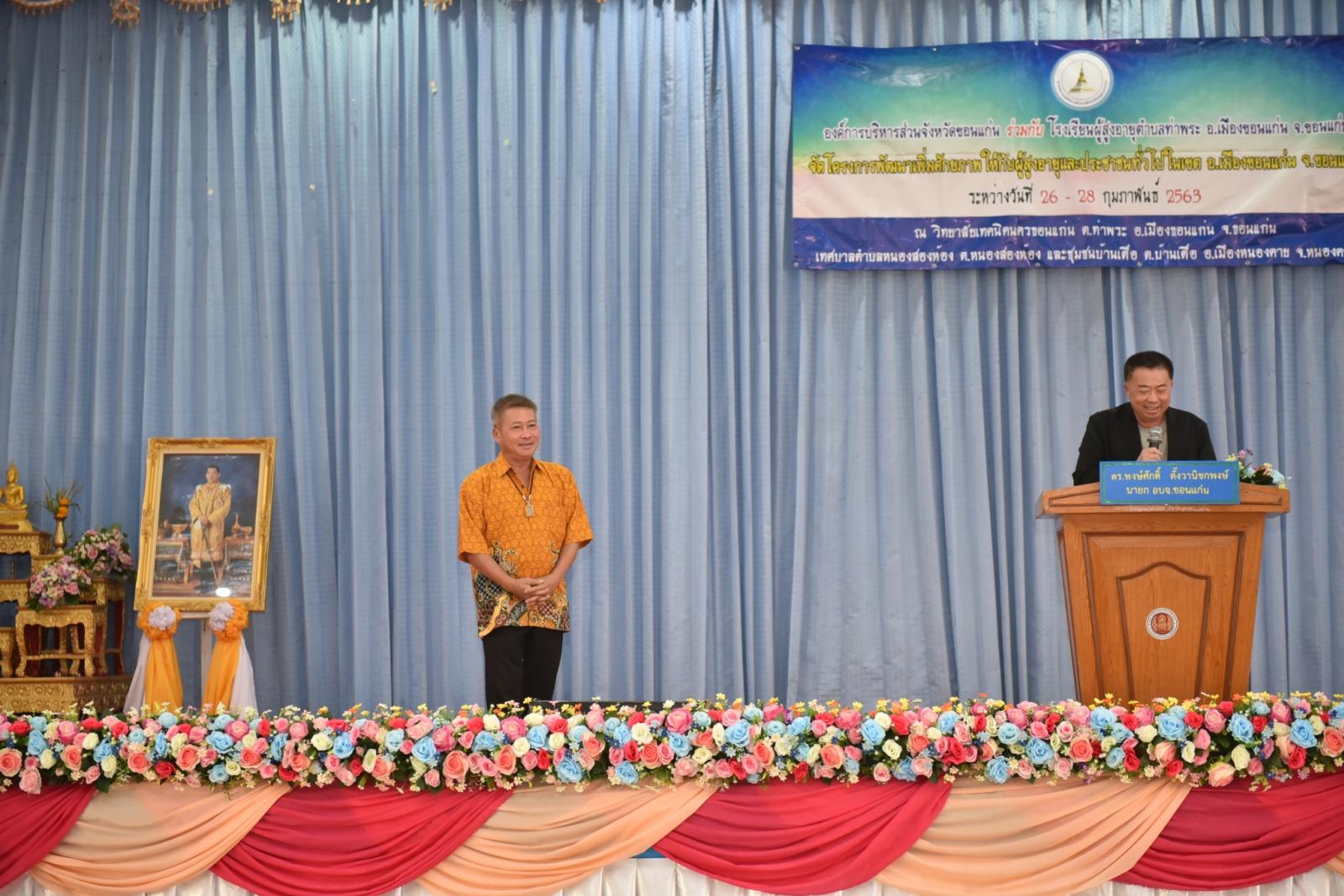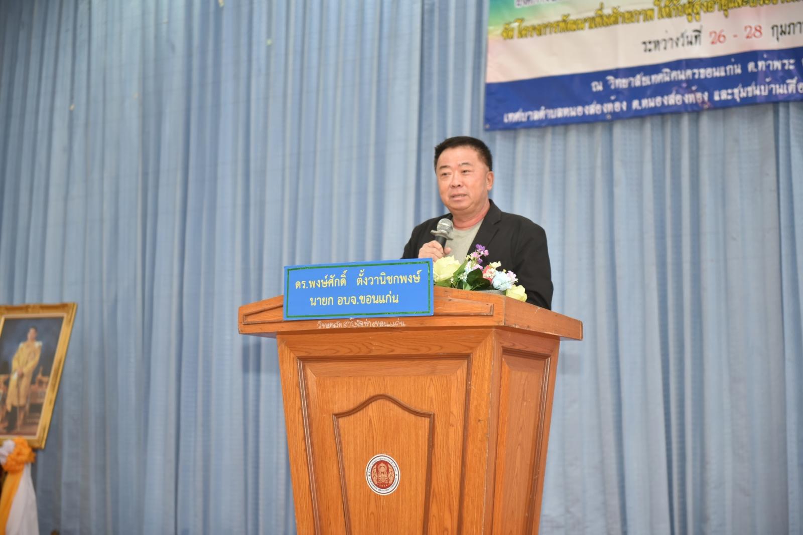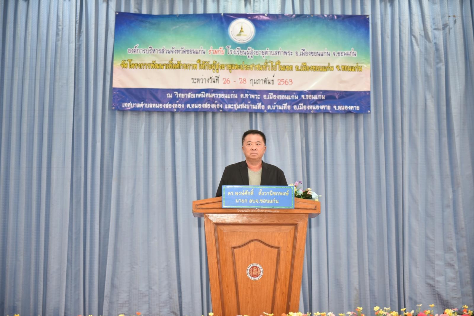 วันที่ 26 กุมภาพันธ์ 2563 เวลา 11.00 น. ดร.พงษ์ศักดิ์ ตั้งวานิชกพงษ์ นายกองค์การบริหารส่วนจังหวัดขอนแก่น เป็นประธานในพิธีเปิดโครงการพัฒนาเพิ่มศักยภาพให้กับผู้สูงอายุและประชาชนทั่วไป ในเขตอำเภอเมืองขอนแก่น จังหวัดขอนแก่น ซึ่งจัดขึ้นโดยองค์การบริหารส่วนจังหวัดขอนแก่น และ โรงเรียนผู้สูงอายุตำบลท่าพระ มีผู้สูงอายุและประชาชนทั่วไป ในเขตพื้นที่ตำบลท่าพระ จำนวน 350 คน เข้าร่วมโครงการฯ ในโอกาสนี้มี นายอนุชา ตั้งวานิชกพงษ์ ส.อบจ.ขอนแก่น อ.เมือง เขต 5 นายศุภชัย ศิริธรรมรักษ์ ผู้อำนวยการวิทยาลัยเทคนิคนครขอนแก่น ร่วมเป็นเกียรติในพิธี ณ หอประชุมวิทยาลัยเทคนิคนครขอนแก่น ตำบลท่าพระ อำเภอเมืองขอนแก่น จังหวัดขอนแก่น