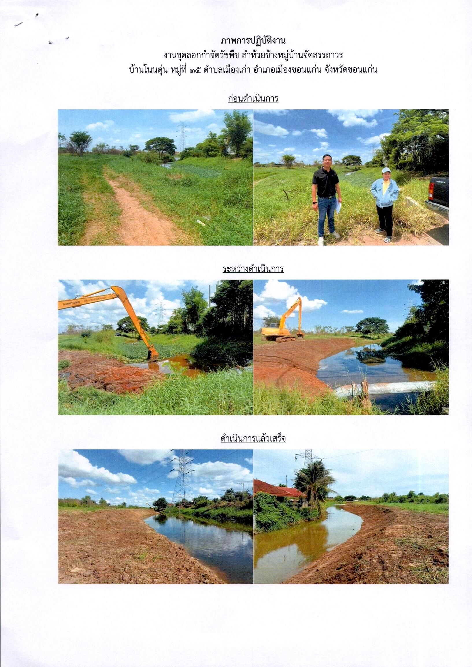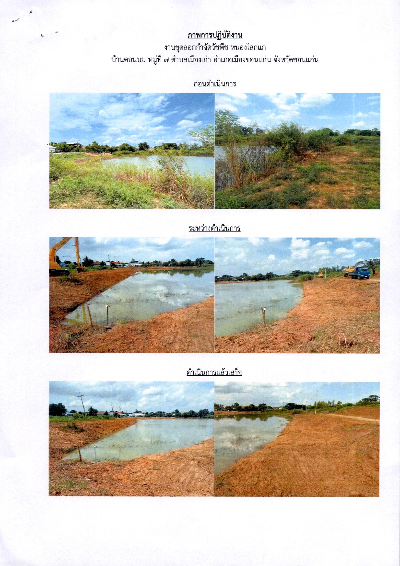 สำนักช่าง ฝ่ายสาธารณูปโภค นำเครื่องจักรกลขุดลอกกำจัดวัชพืชในหนองโสก บ.ดอนบม ม.7 และลำห้วยข้างหมู่บ้านจัดสรรถาวร บ.โนนตุ่น ม.15 ต.เมืองเก่า อ.เมือง จ.ขอนแก่น
