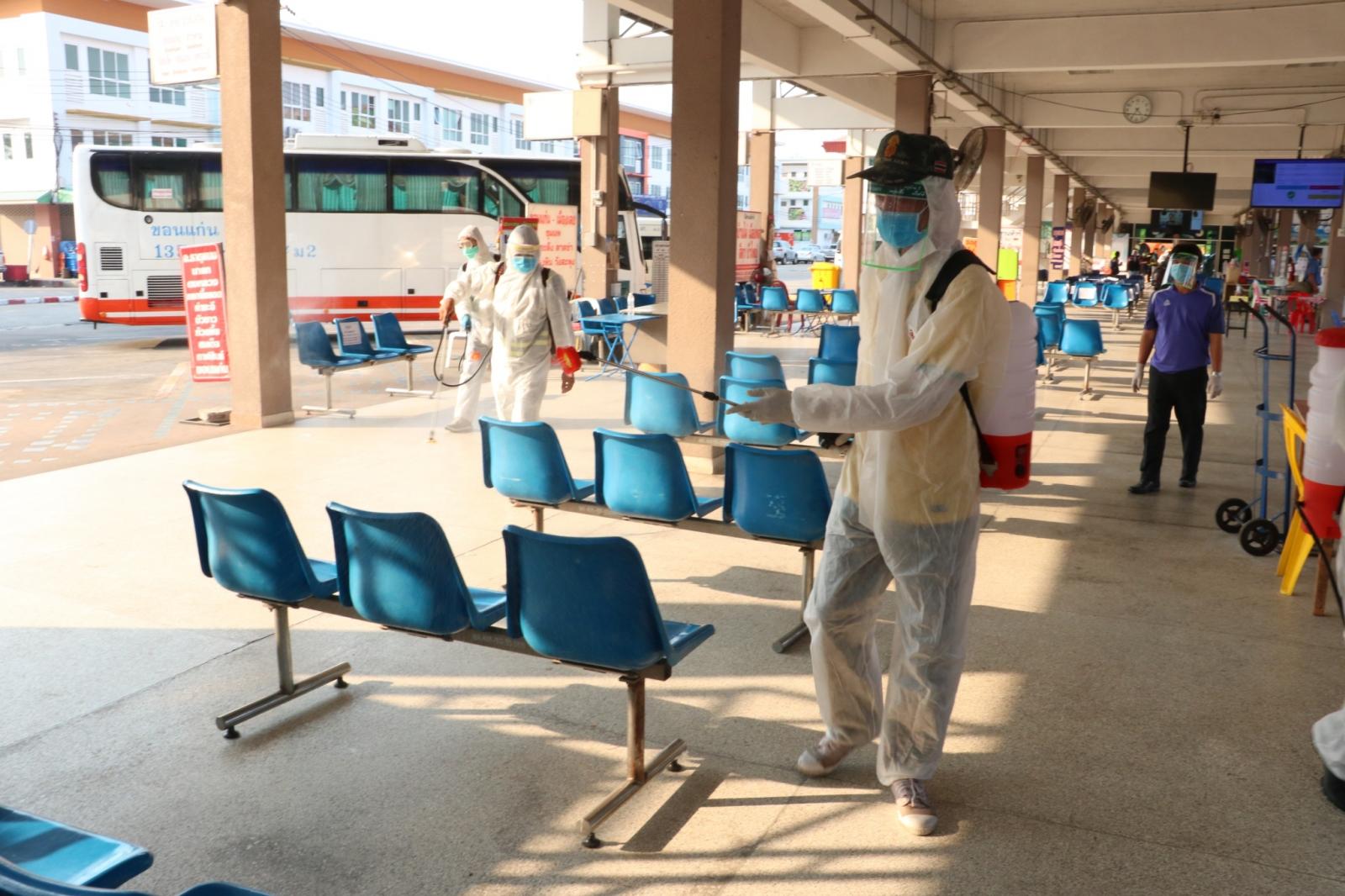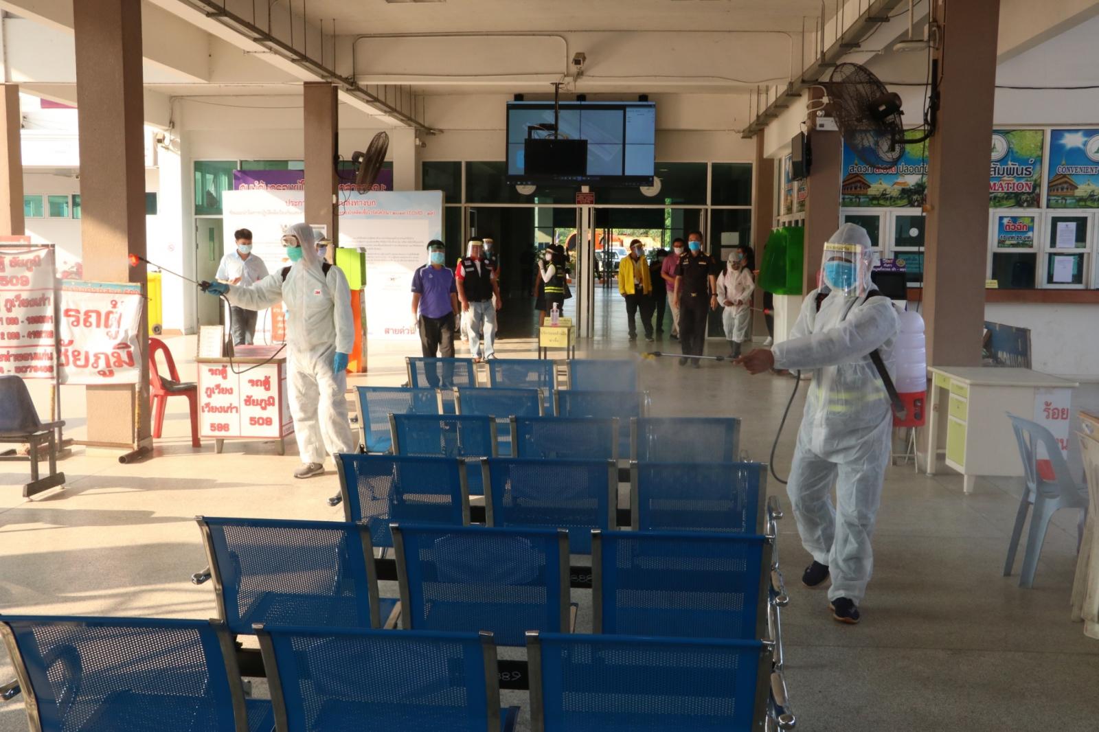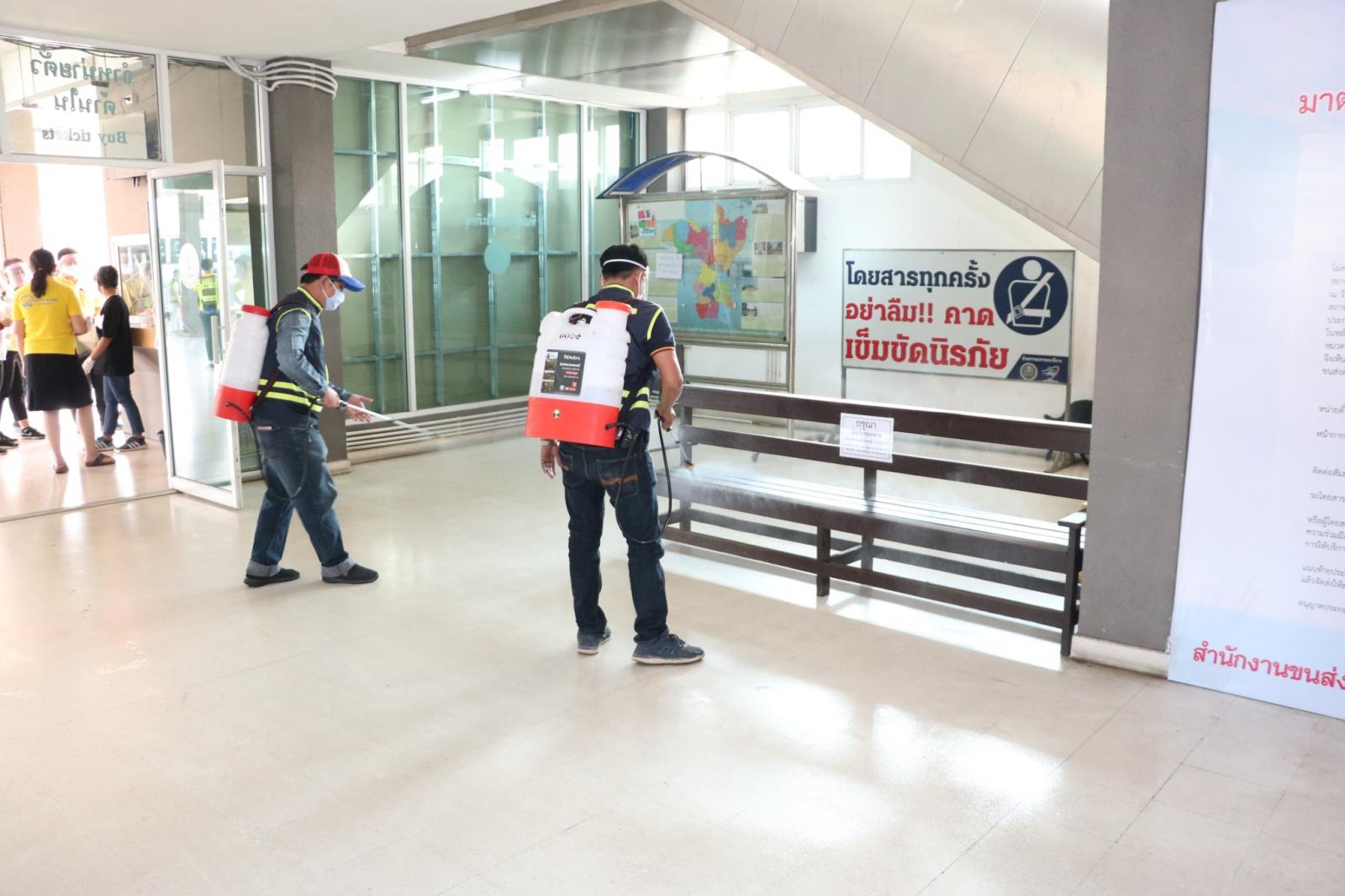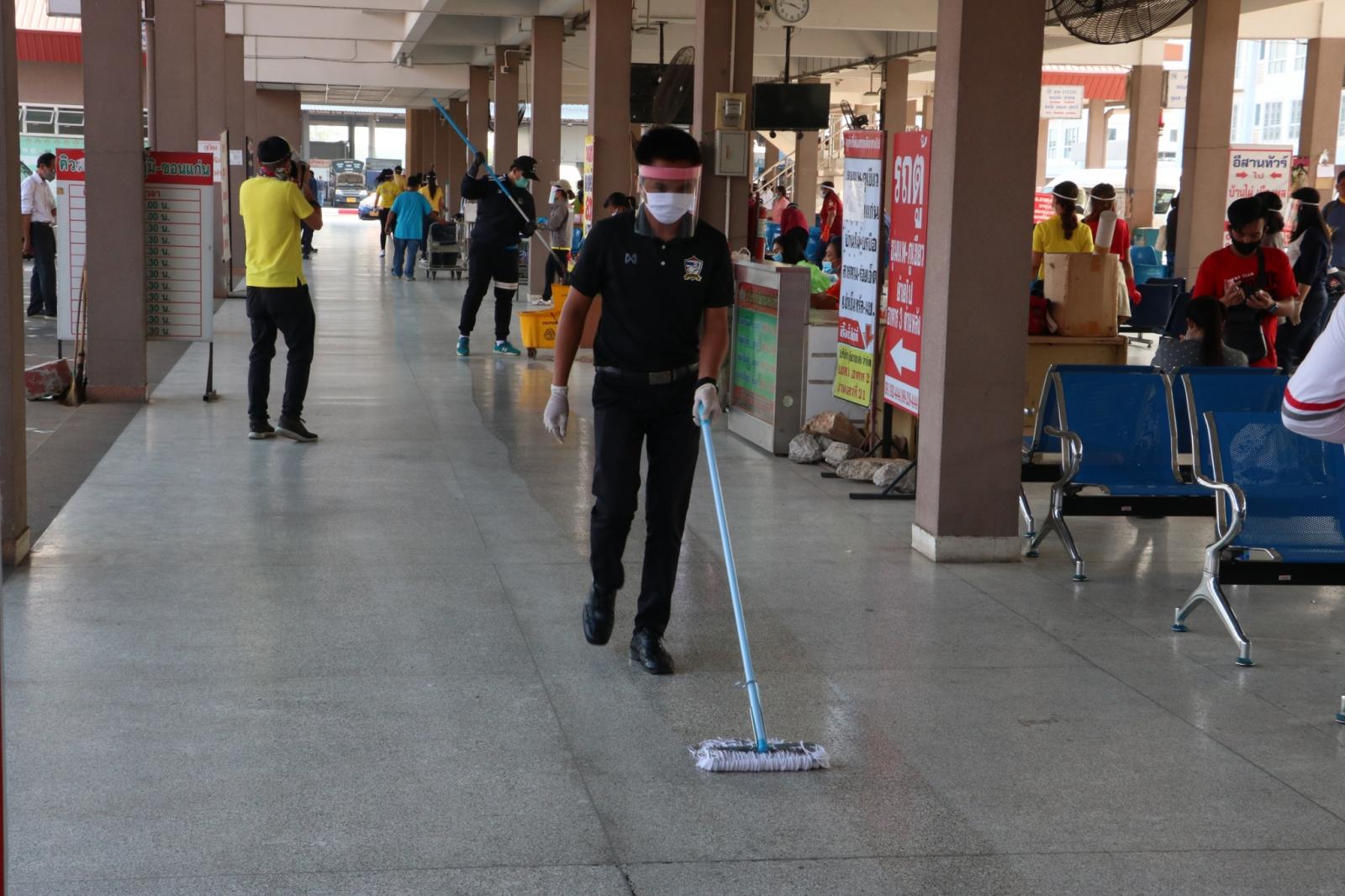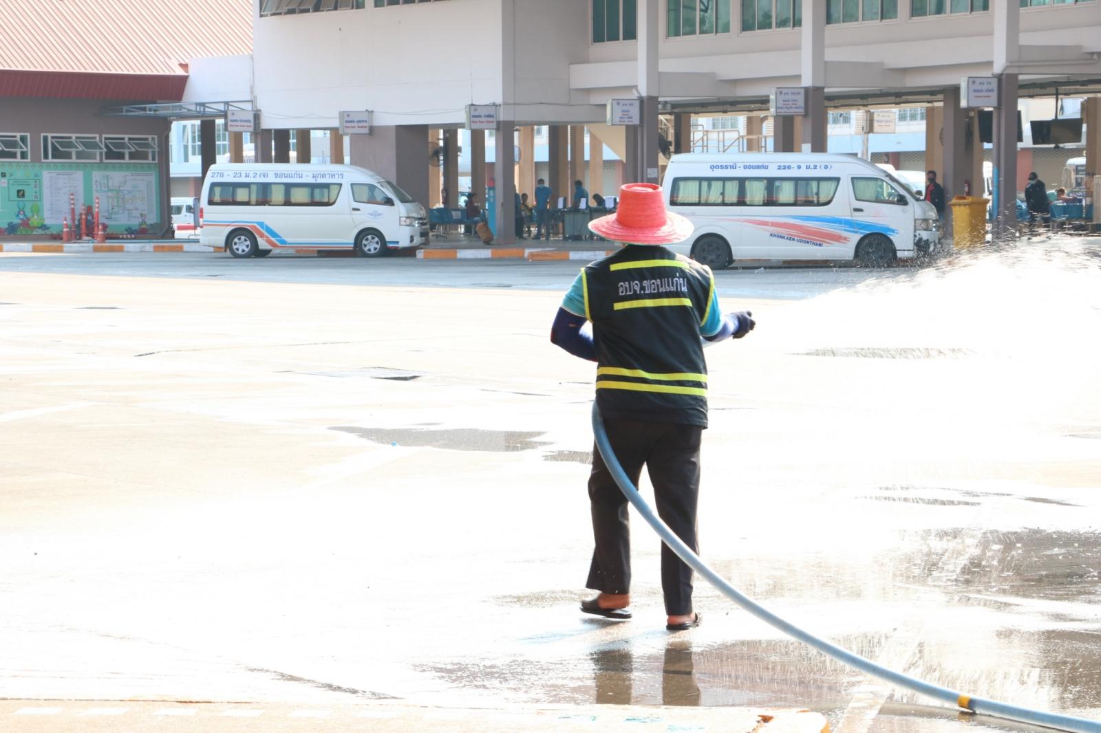 ร่วมให้กำลังใจ ข้าราชการ พนักงาน อบจ.ขอนแก่น ในการทำความสะอาดและฉีดพ่นยาฆ่าเชื้อในอาคารผู้โดยสาร สถานีขนส่งผู้โดยสารจังหวัดขอนแก่นแห่งที่ 3 เพื่อป้องกันและลดความเสี่ยงของการแพร่เชื้อไวรัสโควิด-19