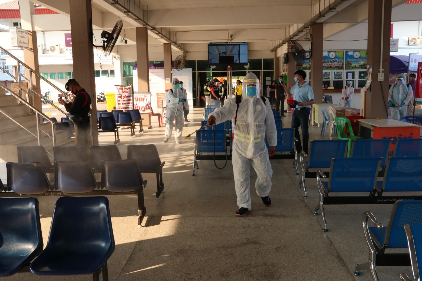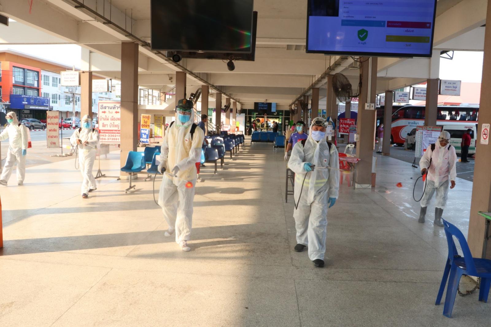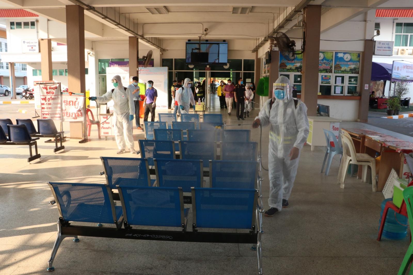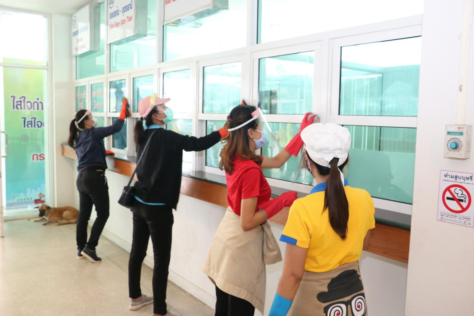 ร่วมให้กำลังใจ ข้าราชการ พนักงาน อบจ.ขอนแก่น ในการทำความสะอาดและฉีดพ่นยาฆ่าเชื้อในอาคารผู้โดยสาร สถานีขนส่งผู้โดยสารจังหวัดขอนแก่นแห่งที่ 3 เพื่อป้องกันและลดความเสี่ยงของการแพร่เชื้อไวรัสโควิด-19