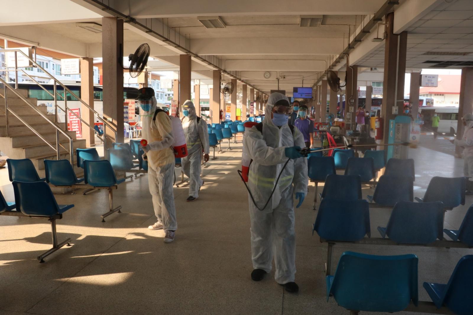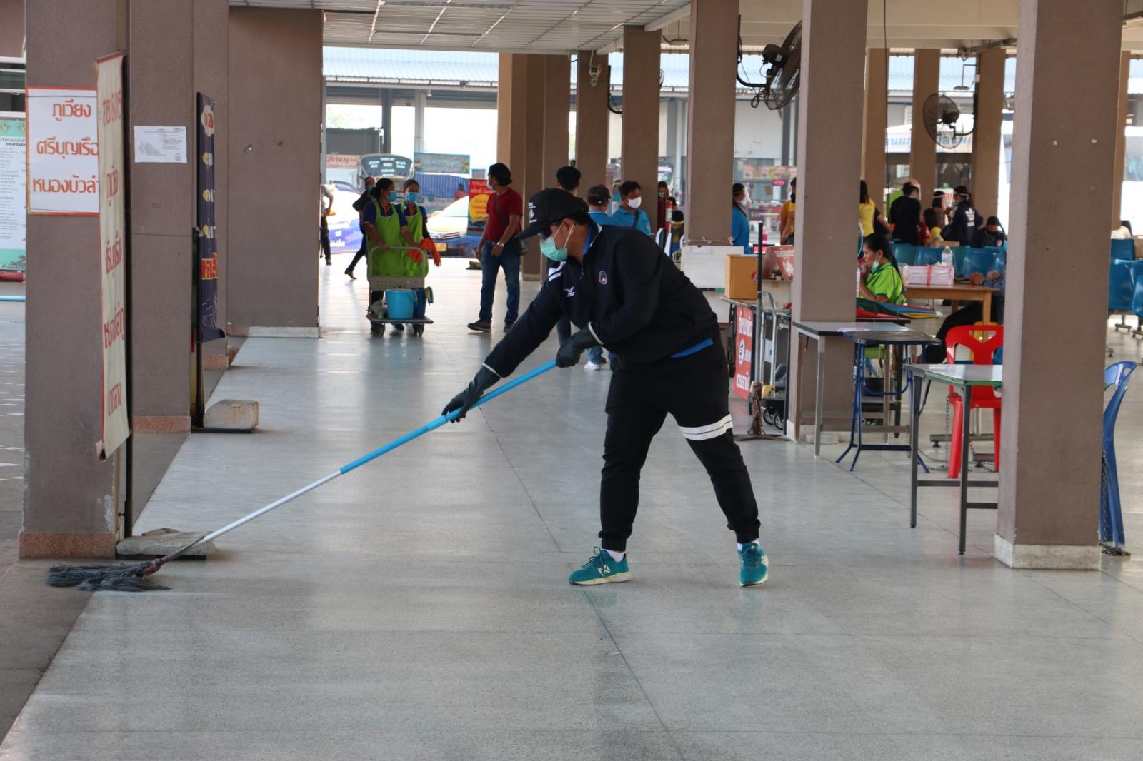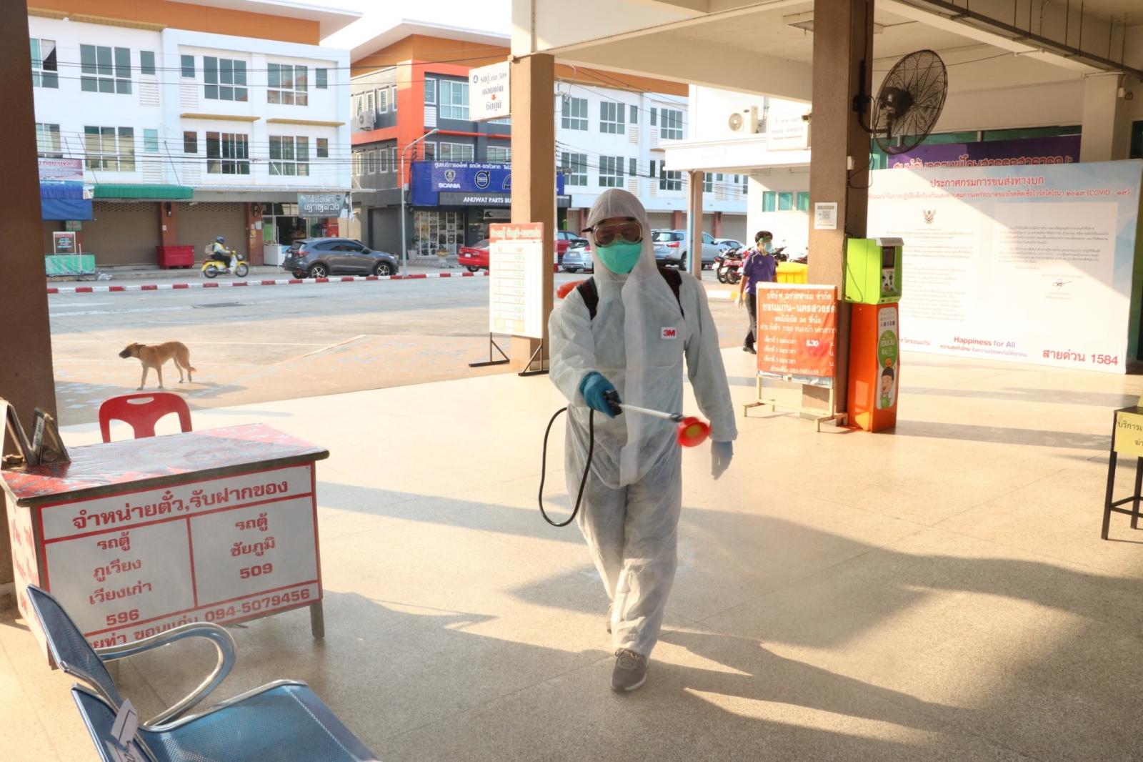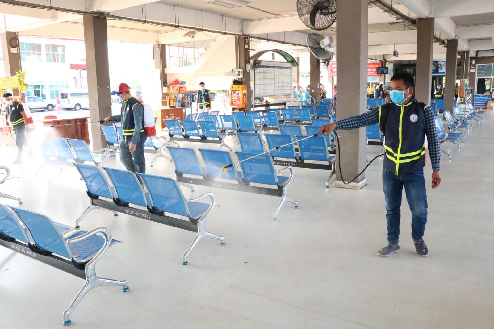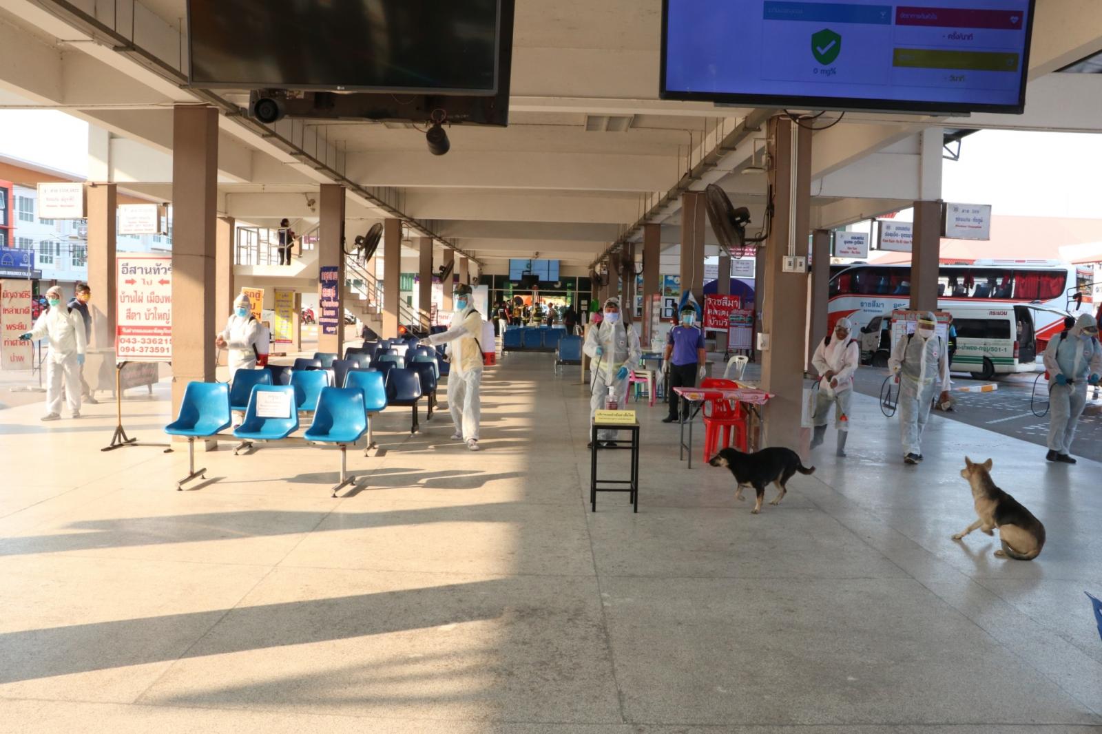 ร่วมให้กำลังใจ ข้าราชการ พนักงาน อบจ.ขอนแก่น ในการทำความสะอาดและฉีดพ่นยาฆ่าเชื้อในอาคารผู้โดยสาร สถานีขนส่งผู้โดยสารจังหวัดขอนแก่นแห่งที่ 3 เพื่อป้องกันและลดความเสี่ยงของการแพร่เชื้อไวรัสโควิด-19