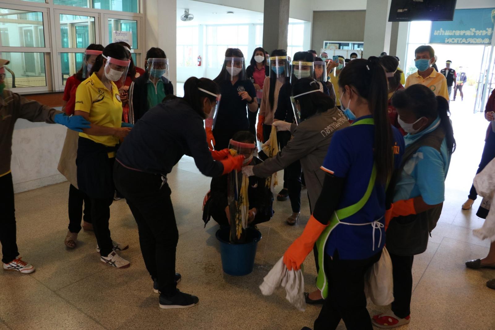 เมื่อวันที่ 27 มีนาคม 2563 เวลา 15.00 น. ดร.พงษ์ศักดิ์ ตั้งวานิชกพงษ์ นายก อบจ.ขอนแก่น มอบหมายให้ นางพัฒนาวดี วิริยปิยะ ปลัด อบจ.ขอนแก่น พร้อมด้วย คณะผู้บริหาร หัวหน้าส่วนราชการ ร่วมให้กำลังใจ ข้าราชการ พนักงาน อบจ.ขอนแก่น ในการทำความสะอาดและฉีดพ่นยาฆ่าเชื้อในอาคารผู้โดยสาร สถานีขนส่งผู้โดยสารจังหวัดขอนแก่นแห่งที่ 3 เพื่อป้องกันและลดความเสี่ยงของการแพร่เชื้อไวรัสโควิด-19