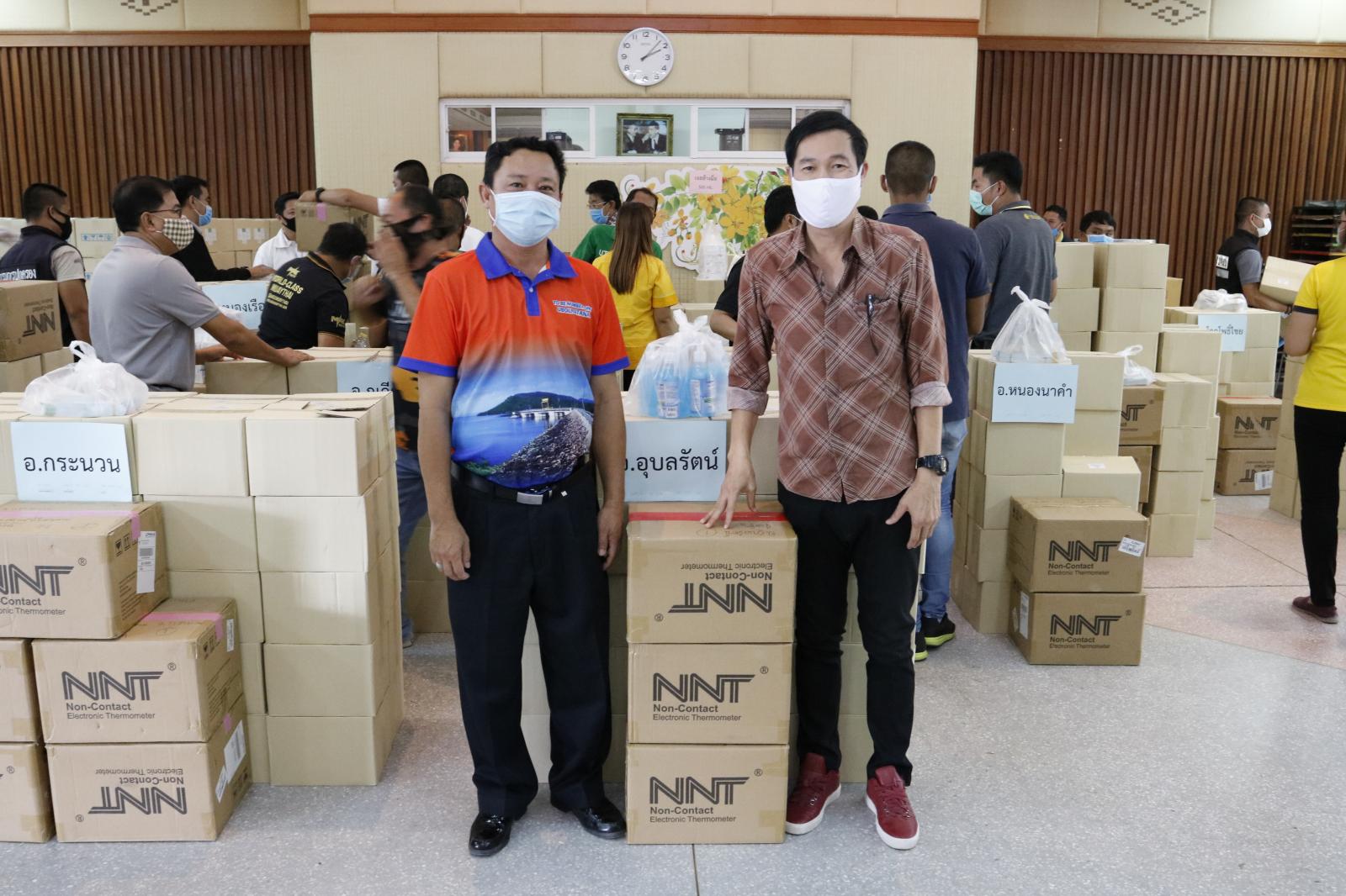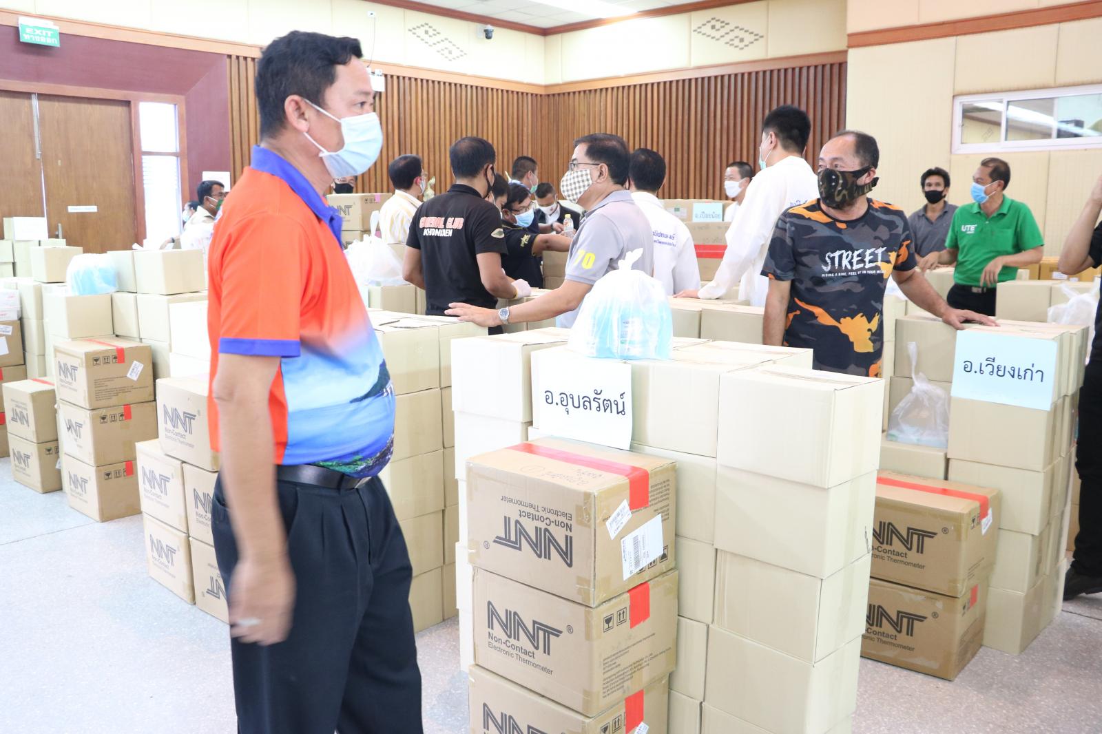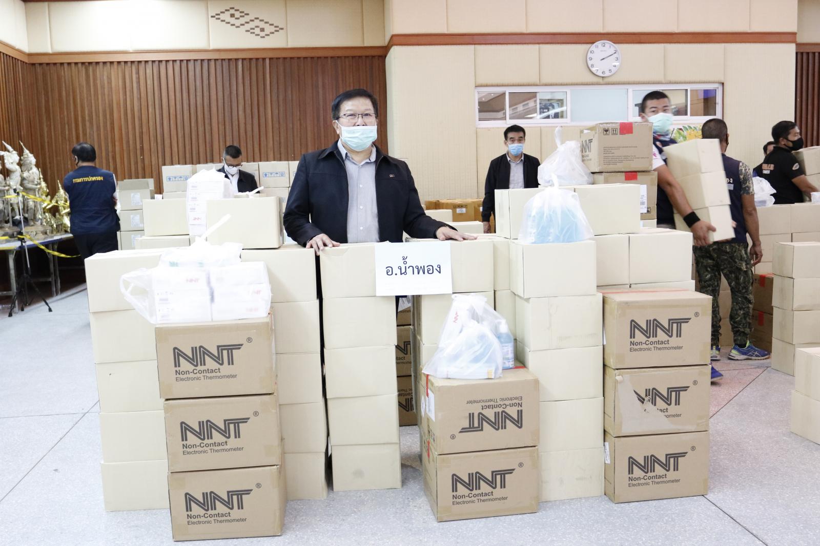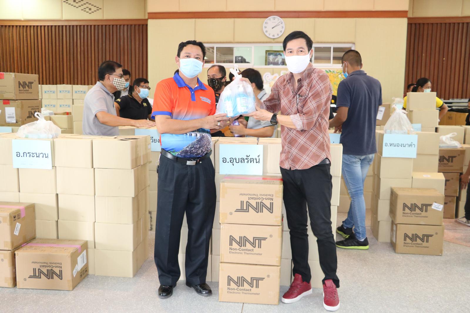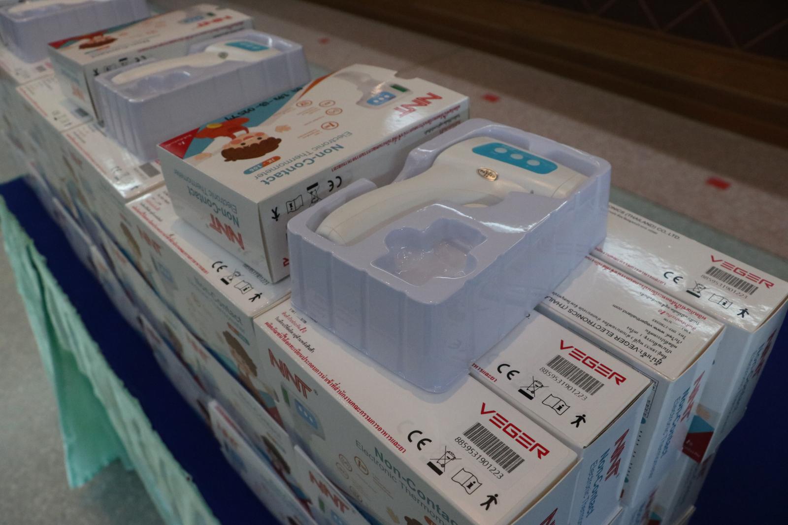 มอบเจลล้างมือแอลกอฮอล์ เครื่องวัดอุณหภูมิดิจิตอลอินฟาเรด และแผ่นพับประชาสัมพันธ์