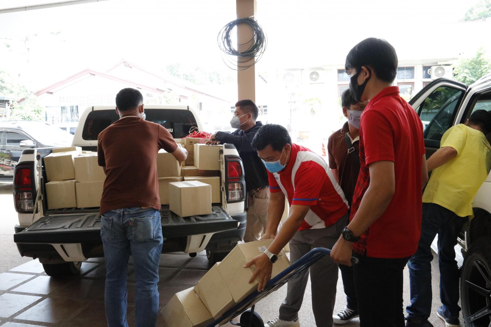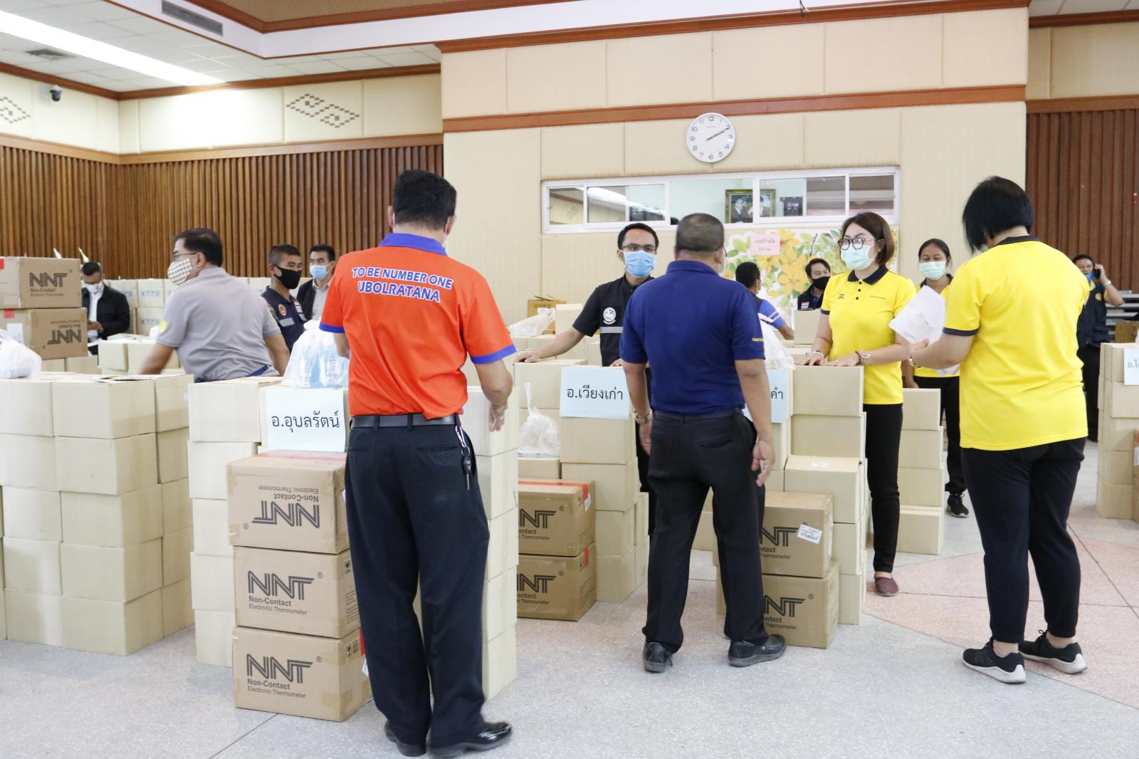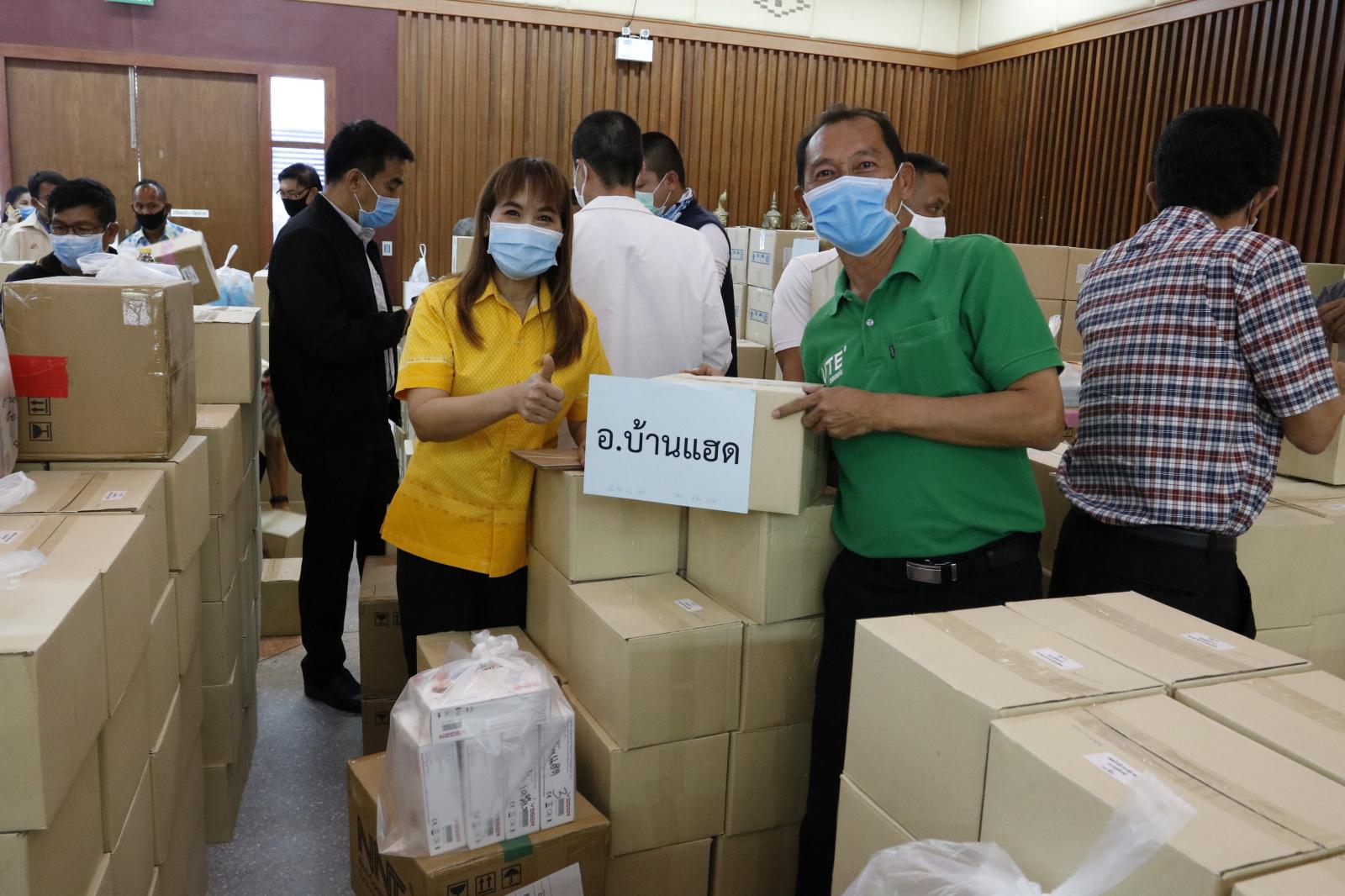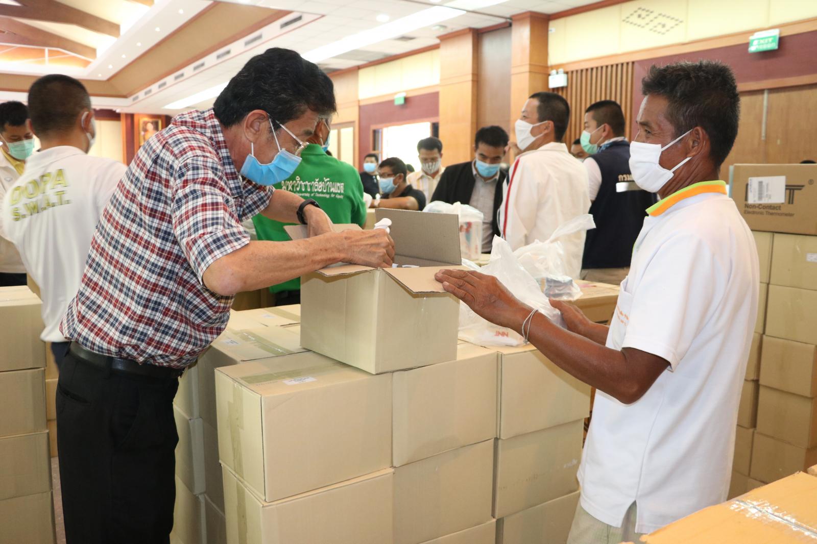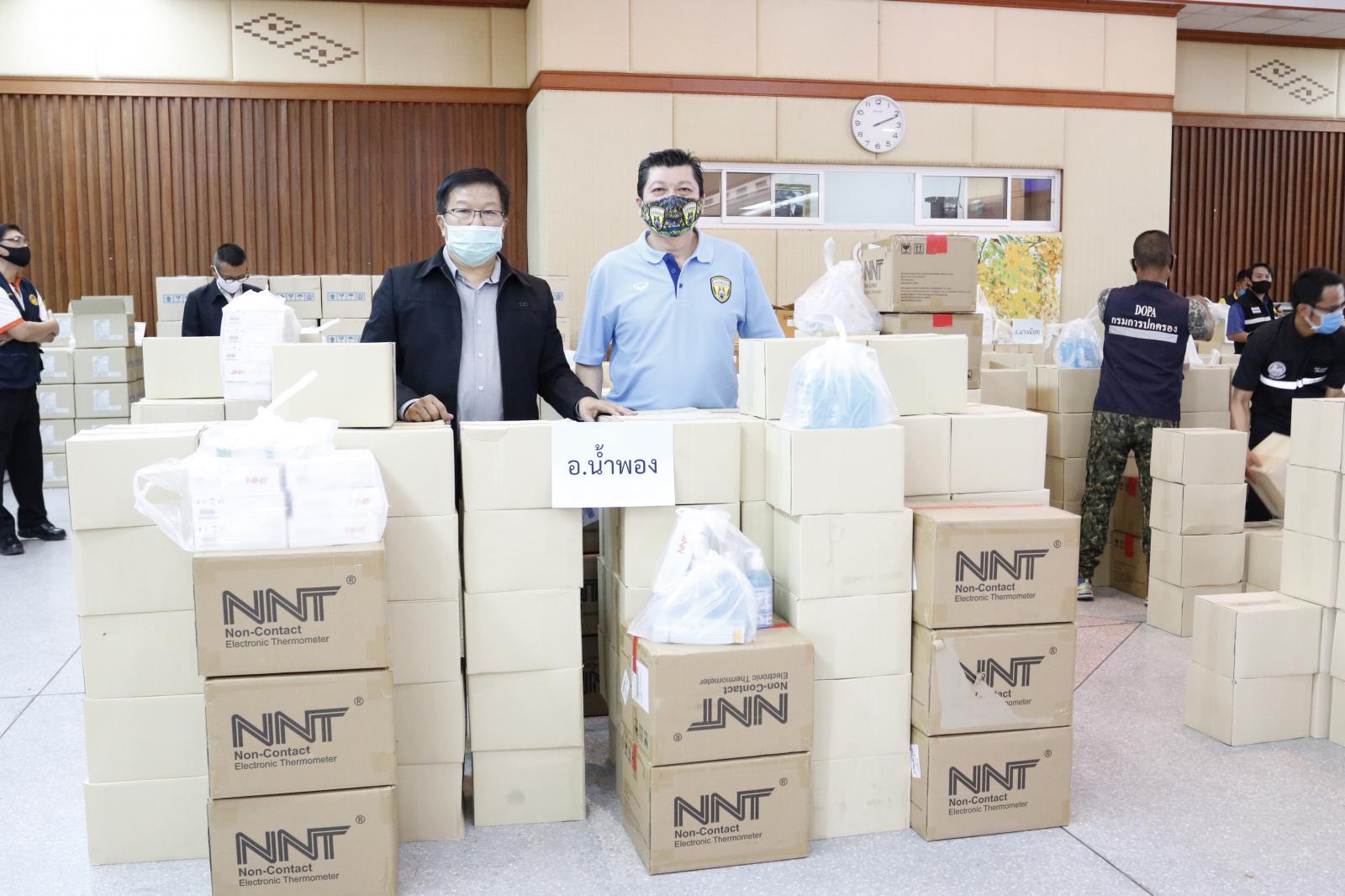 มอบเจลล้างมือแอลกอฮอล์ เครื่องวัดอุณหภูมิดิจิตอลอินฟาเรด และแผ่นพับประชาสัมพันธ์