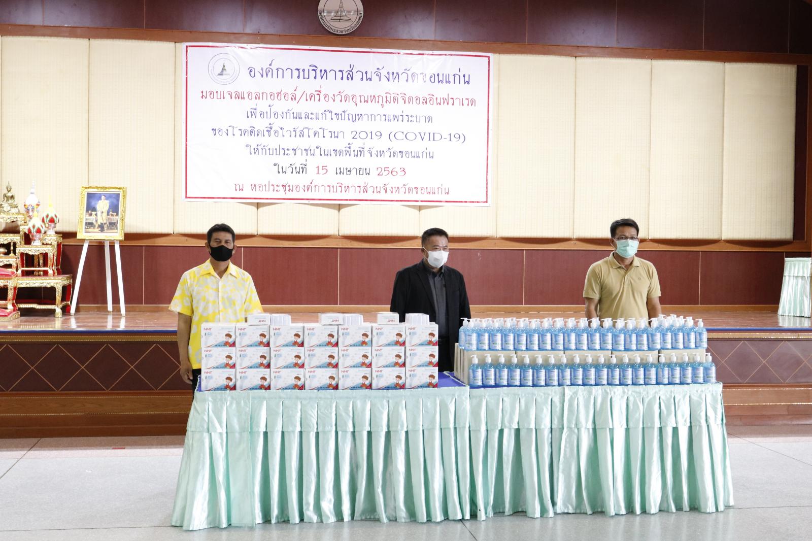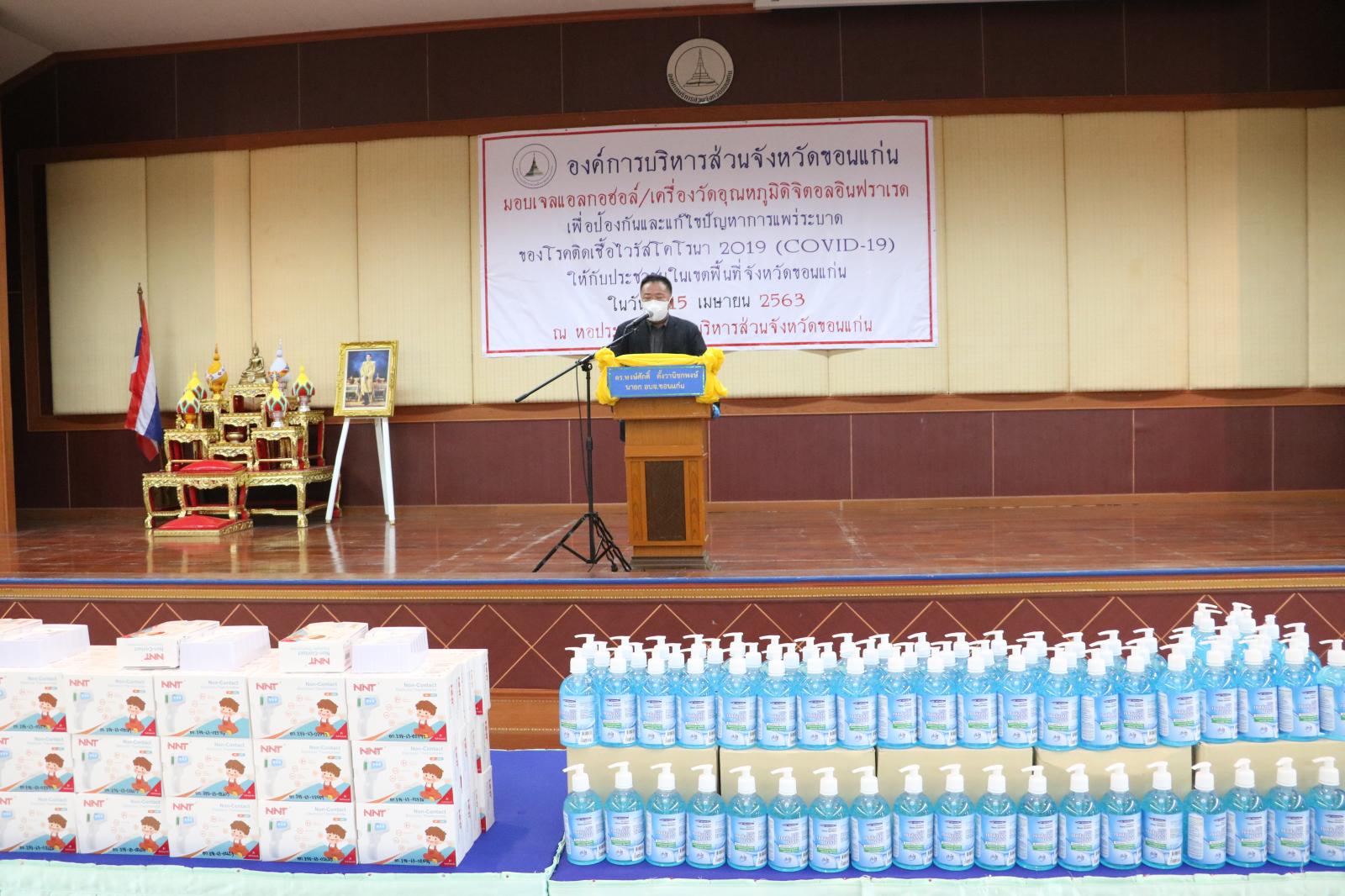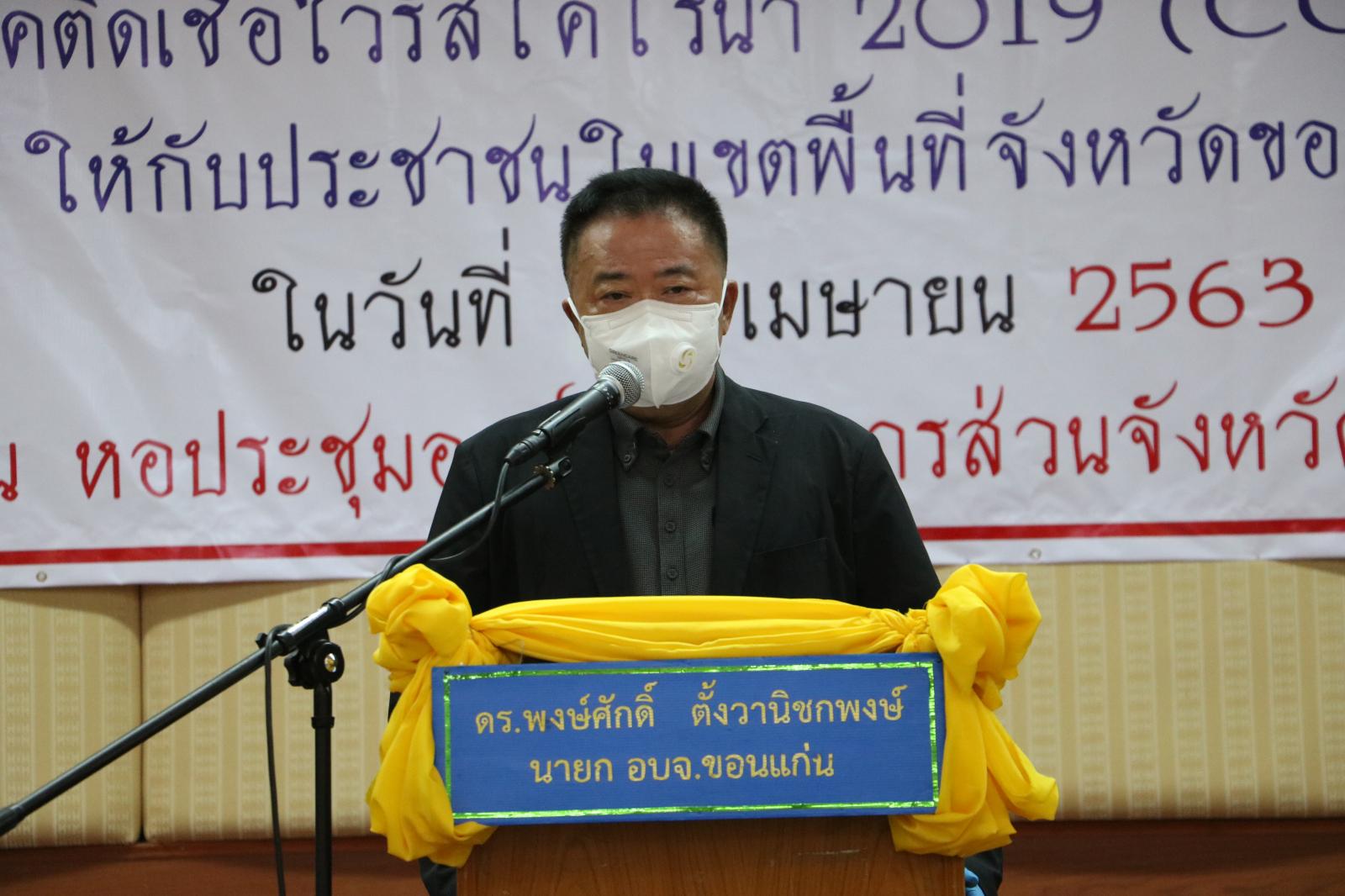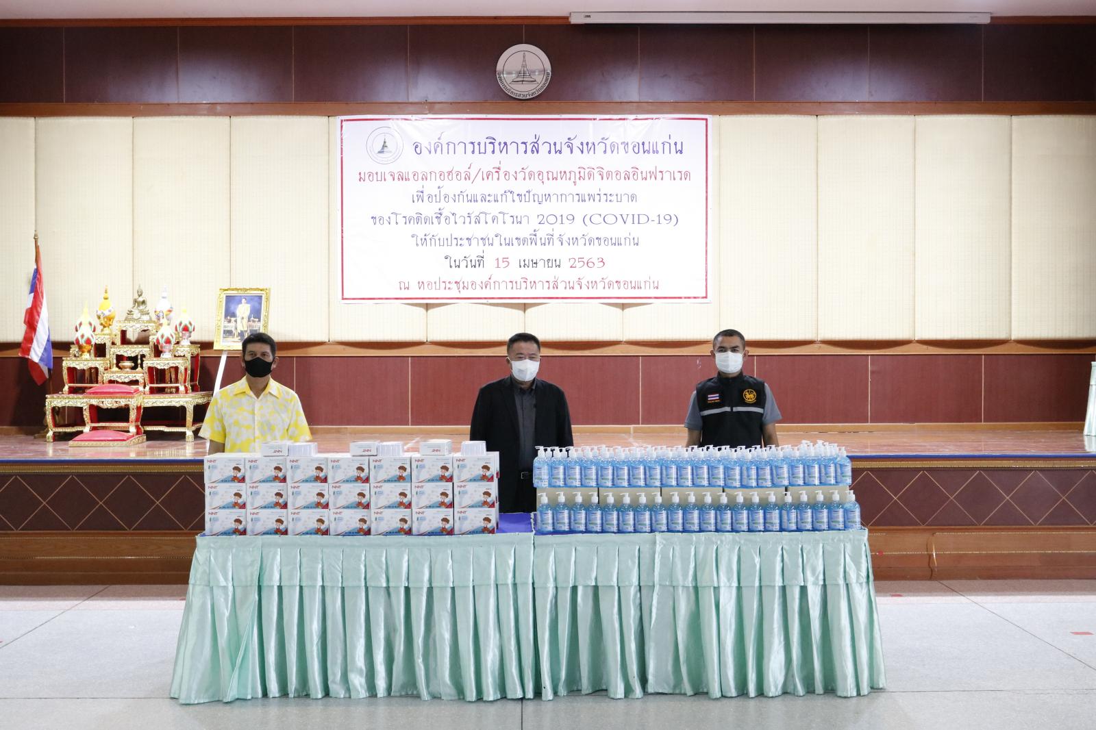 เมื่อวันที่ 15 เมษายน 2563 เวลา 13.30 น. ดร.พงษ์ศักดิ์ ตั้งวานิชกพงษ์ นายก อบจ.ขอนแก่น เป็นประธานในการมอบเจลล้างมือแอลกอฮอล์ เครื่องวัดอุณหภูมิดิจิตอลอินฟาเรด และแผ่นพับประชาสัมพันธ์ ตามโครงการป้องกันและควบคุมการแพร่ระบาดของโรคติดเชื้อไวรัสโคโรนา 2019 โดยมี นายสิทธิกุล ภูคำวงศ์ รองนายก อบจ.ขอนแก่น, ดร.สุชาติ ไตรองค์ถาวร ประธานสภา อบจ.ขอนแก่น, นายอำเภอ และผู้แทนนายอำเภอทั้ง 26 อำเภอ, สมาชิกสภา อบจ.ขอนแก่น, นางพัฒนาวดี วิริยปิยะ ปลัดอบจ.ขอนแก่น คณะผู้บริหาร หัวหน้าส่วนราชการ อบจ.ขอนแก่น เข้าร่วมเป็นเกียรติ ณ หอประชุมองค์การบริหารส่วนจังหวัดขอนแก่น อ.เมืองขอนแก่น จ.ขอนแก่น