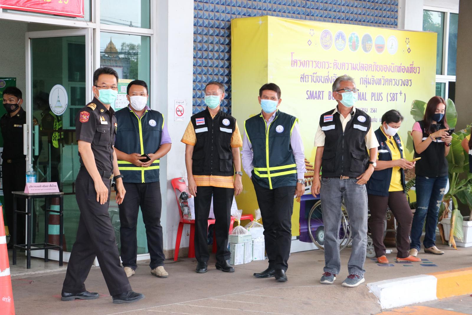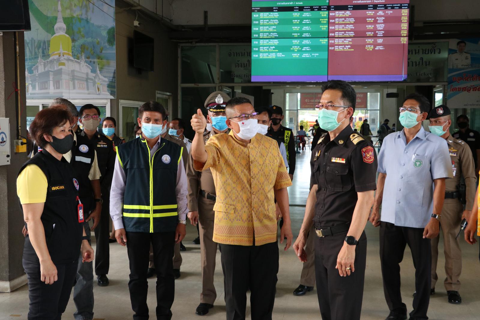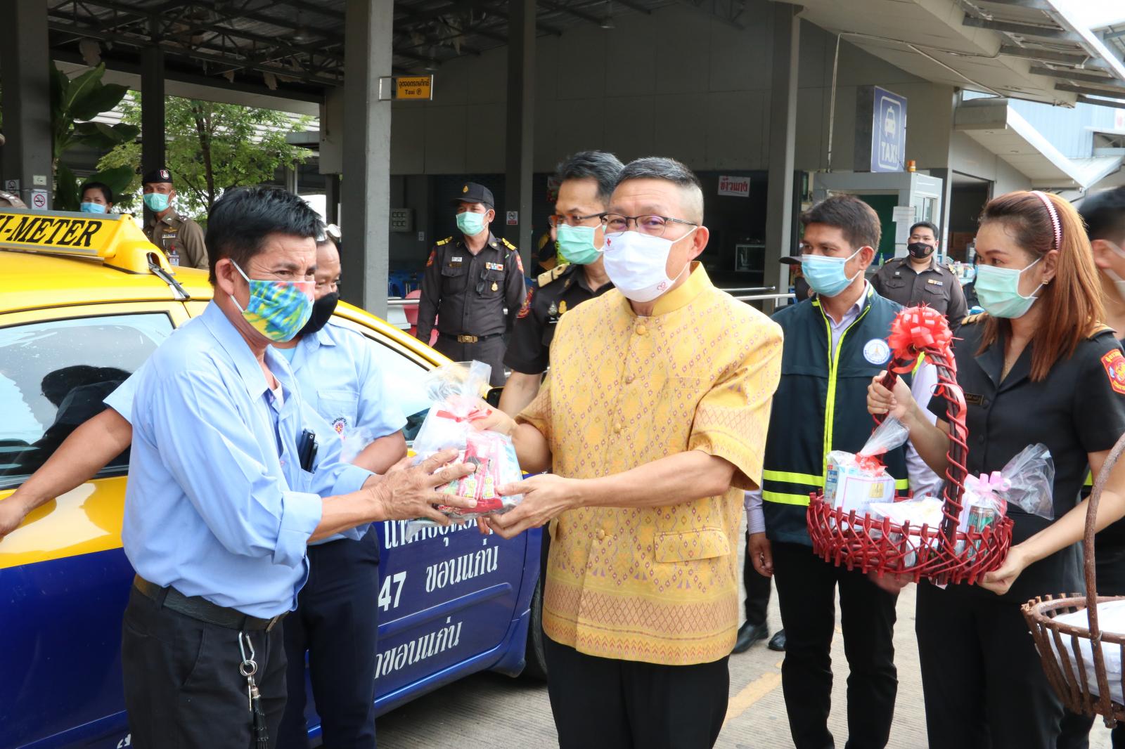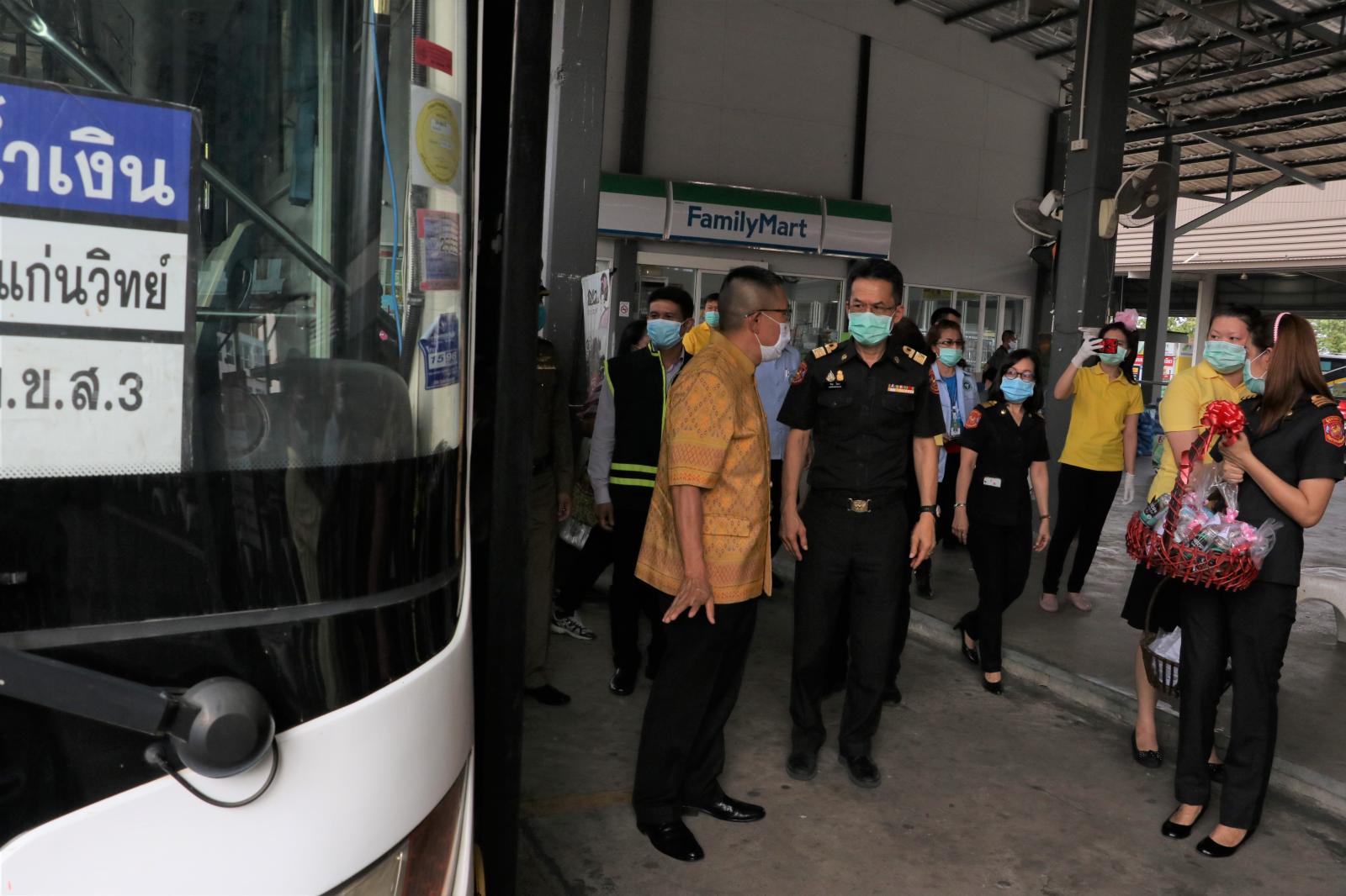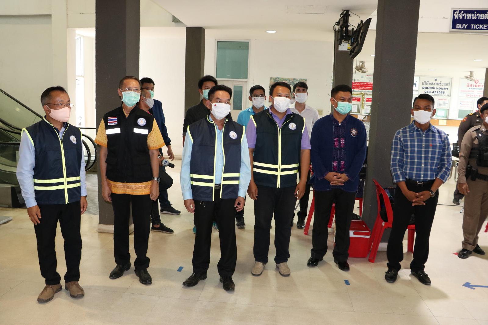 เมื่อวันที่ 22 พฤษภาคม 2563 ดร.พงษ์ศักดิ์ ตั้งวานิชกพงษ์ นายก อบจ.ขอนแก่น มอบหมายให้ นายสิทธิกุล ภูคำวงศ์ รองนายก อบจ.ขอนแก่น พร้อมด้วย นายประสิทธิ์ อุดมธนะธีระ รองปลัด อบจ.ขอนแก่น, นายเพ็ชร มูลป้อม ผอ.กองแผนและงบประมาณ, นายประชิต อึ้งประเสริฐ ผอ.กองกิจการขนส่ง หัวหน้าส่วนราชการ ข้าราชการ อบจ.ขอนแก่น ให้การต้อนรับ ดร.สมศักดิ์ จังตระกุล ผู้ว่าราชการจังหวัดขอนแก่น และคณะ ในโอกาสลงพื้นที่ตรวจติดตามมาตรการคัดกรองและป้องกันการแพร่ระบาดของเชื้อไวรัสโควิด-19 พร้อมกำหนดมาตรการให้มีหน่วยเคลื่อนที่ออกให้คำแนะนำและอำนวยความสะดวกให้กับผู้ประกอบการร้านค้า ในการลงทะเบียนร้านค้าผ่านแพลตฟอร์มไทยชนะ ณ สถานีขนส่งผู้โดยสารจังหวัดขอนแก่น แห่งที่ 3 อ.เมืองขอนแก่น จ.ขอนแก่น