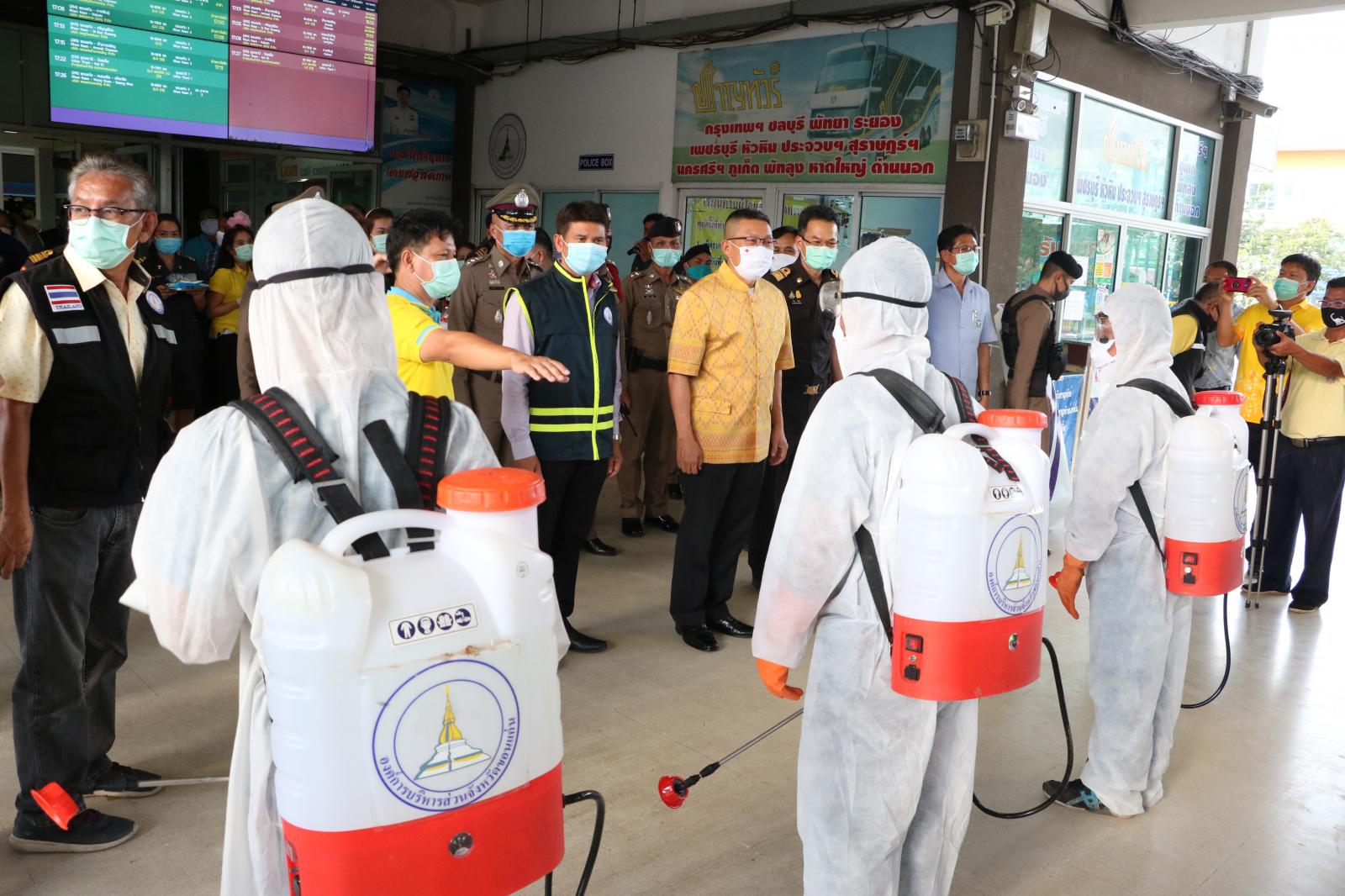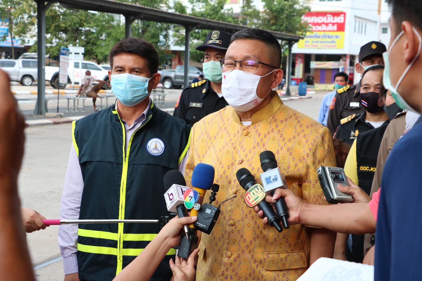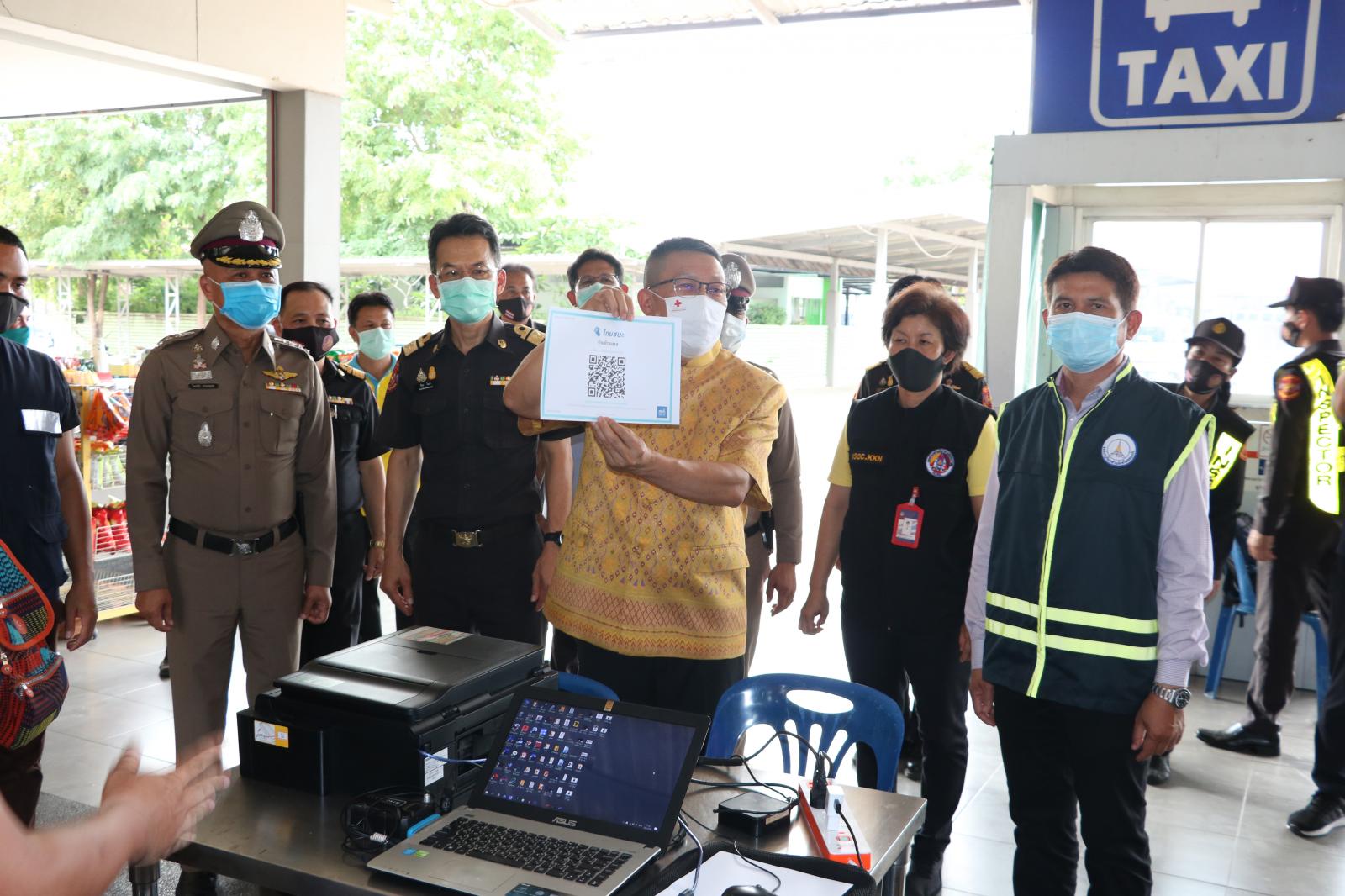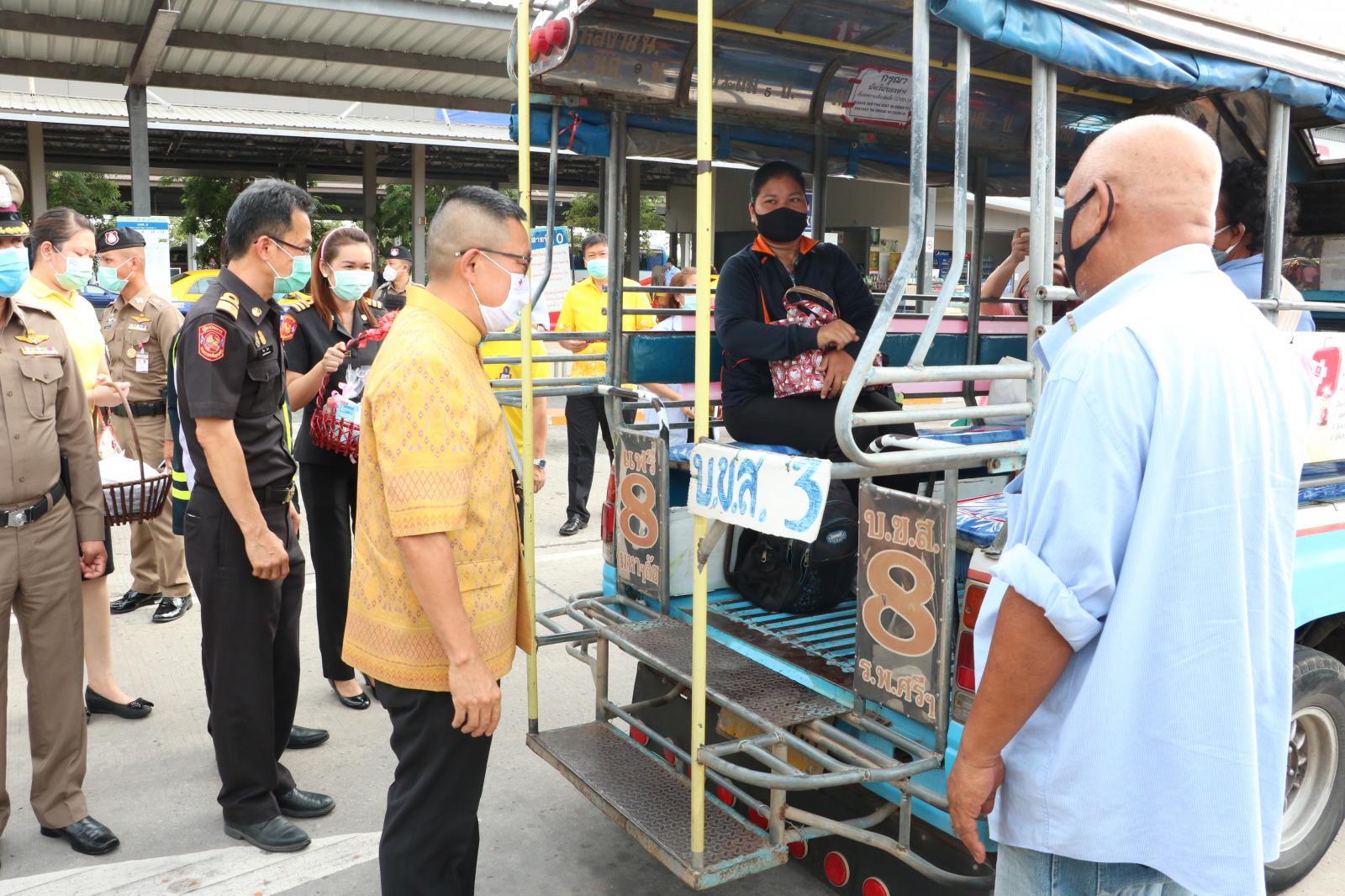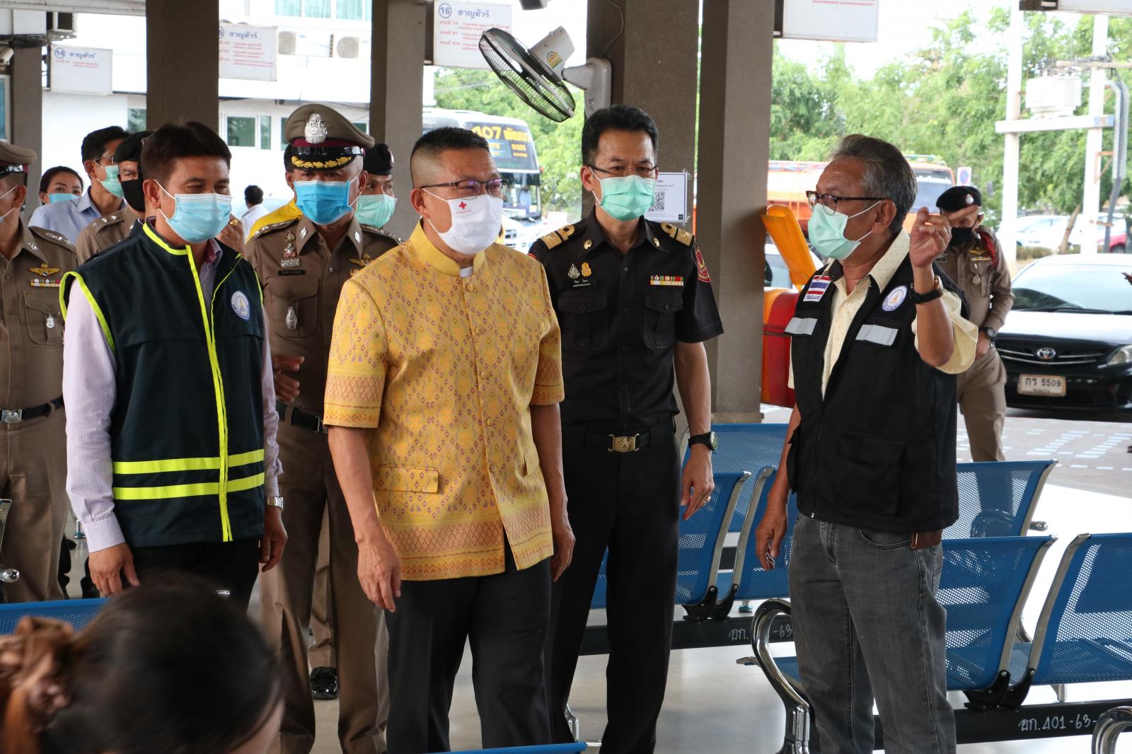 เมื่อวันที่ 22 พฤษภาคม 2563 ดร.พงษ์ศักดิ์ ตั้งวานิชกพงษ์ นายก อบจ.ขอนแก่น มอบหมายให้ นายสิทธิกุล ภูคำวงศ์ รองนายก อบจ.ขอนแก่น พร้อมด้วย นายประสิทธิ์ อุดมธนะธีระ รองปลัด อบจ.ขอนแก่น, นายเพ็ชร มูลป้อม ผอ.กองแผนและงบประมาณ, นายประชิต อึ้งประเสริฐ ผอ.กองกิจการขนส่ง หัวหน้าส่วนราชการ ข้าราชการ อบจ.ขอนแก่น ให้การต้อนรับ ดร.สมศักดิ์ จังตระกุล ผู้ว่าราชการจังหวัดขอนแก่น และคณะ ในโอกาสลงพื้นที่ตรวจติดตามมาตรการคัดกรองและป้องกันการแพร่ระบาดของเชื้อไวรัสโควิด-19 พร้อมกำหนดมาตรการให้มีหน่วยเคลื่อนที่ออกให้คำแนะนำและอำนวยความสะดวกให้กับผู้ประกอบการร้านค้า ในการลงทะเบียนร้านค้าผ่านแพลตฟอร์มไทยชนะ ณ สถานีขนส่งผู้โดยสารจังหวัดขอนแก่น แห่งที่ 3 อ.เมืองขอนแก่น จ.ขอนแก่น