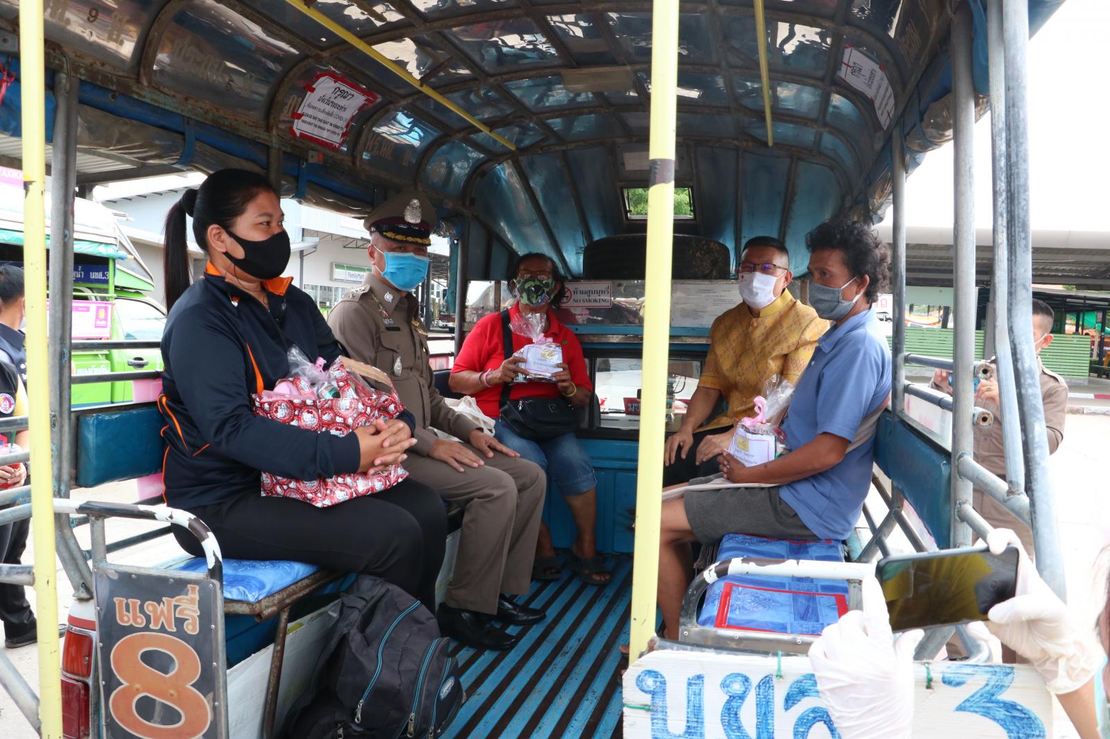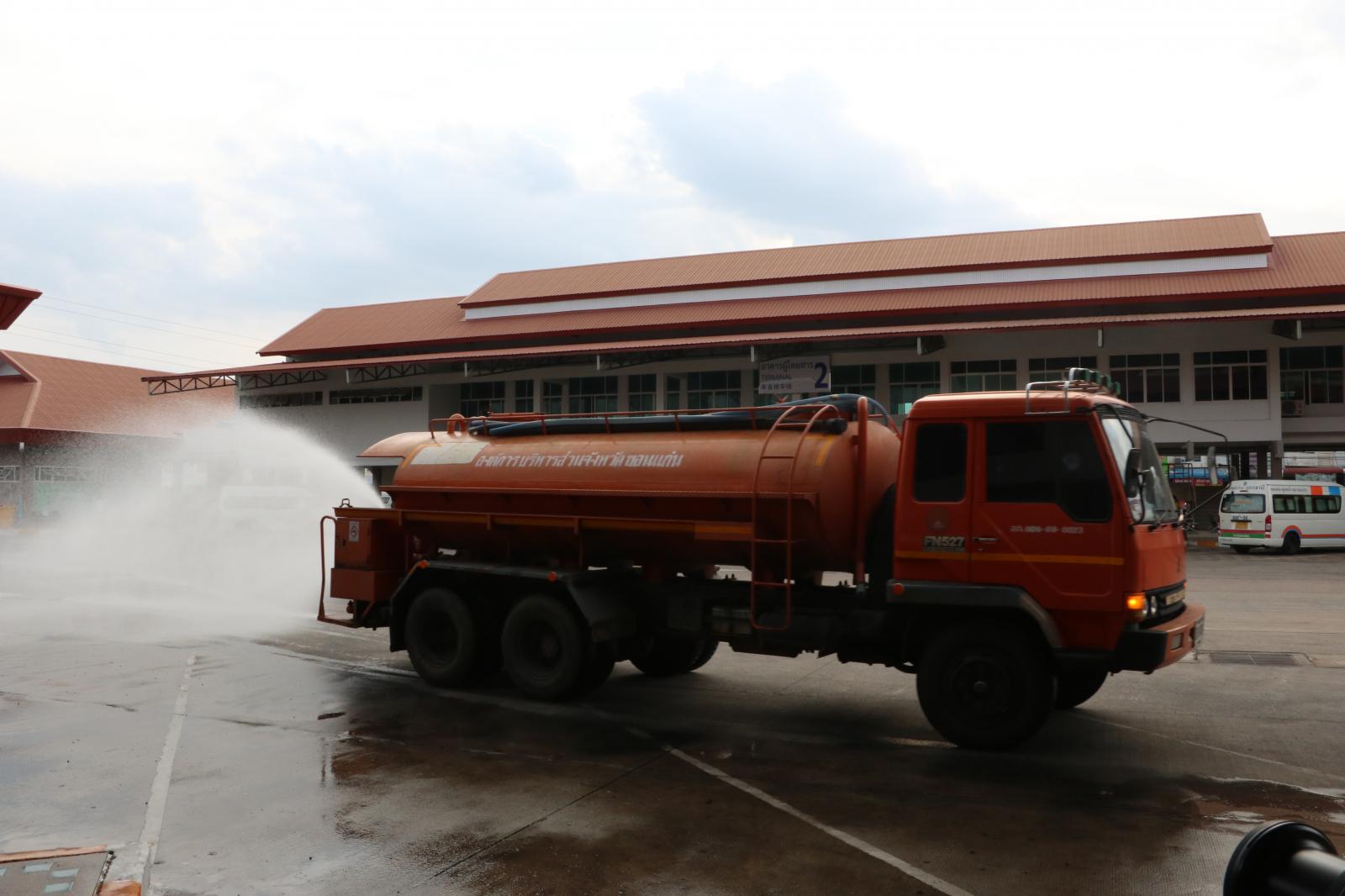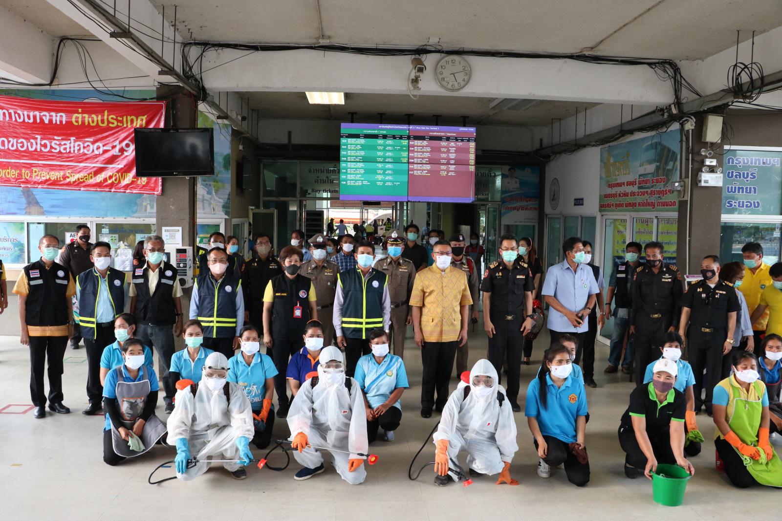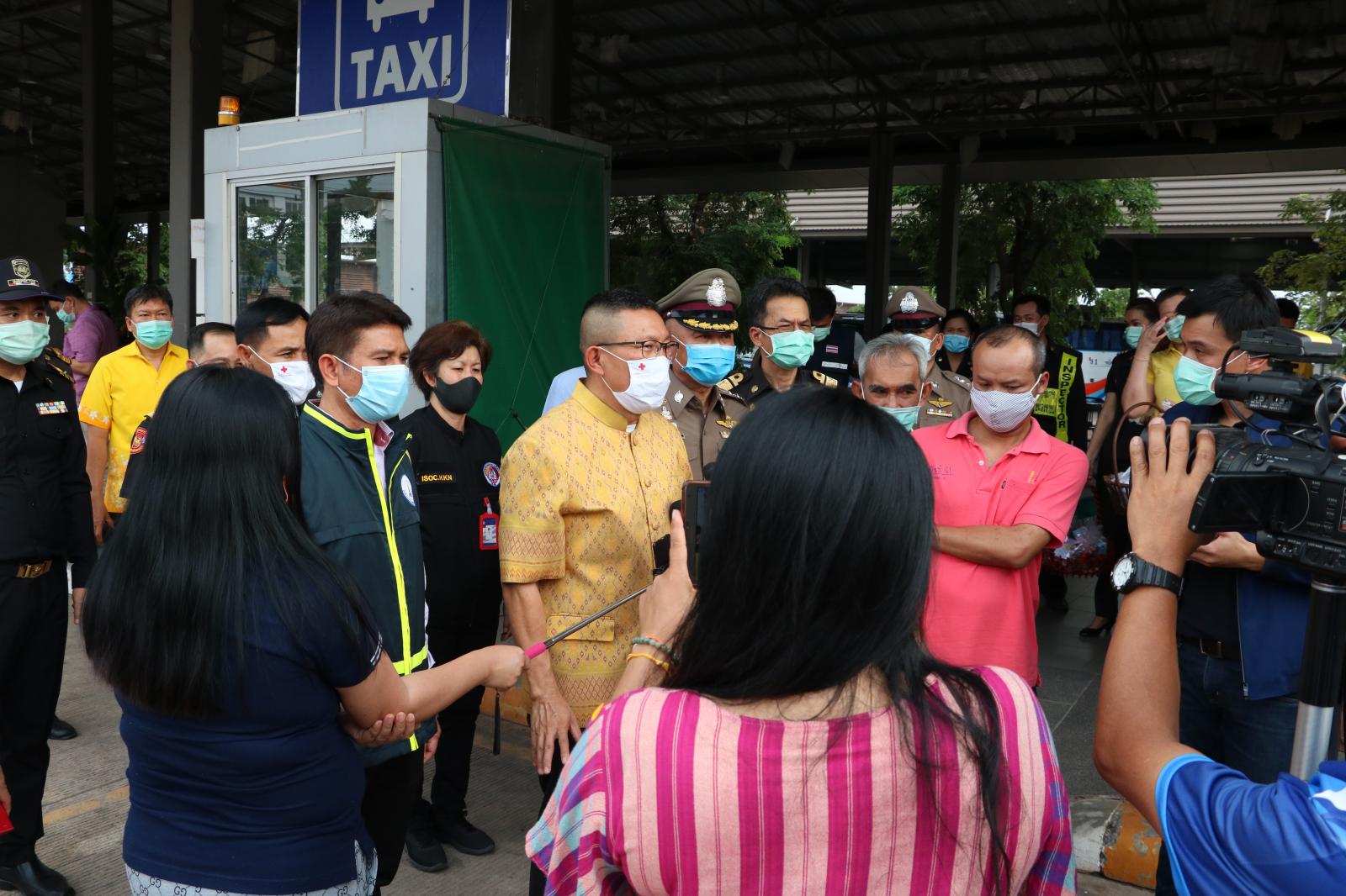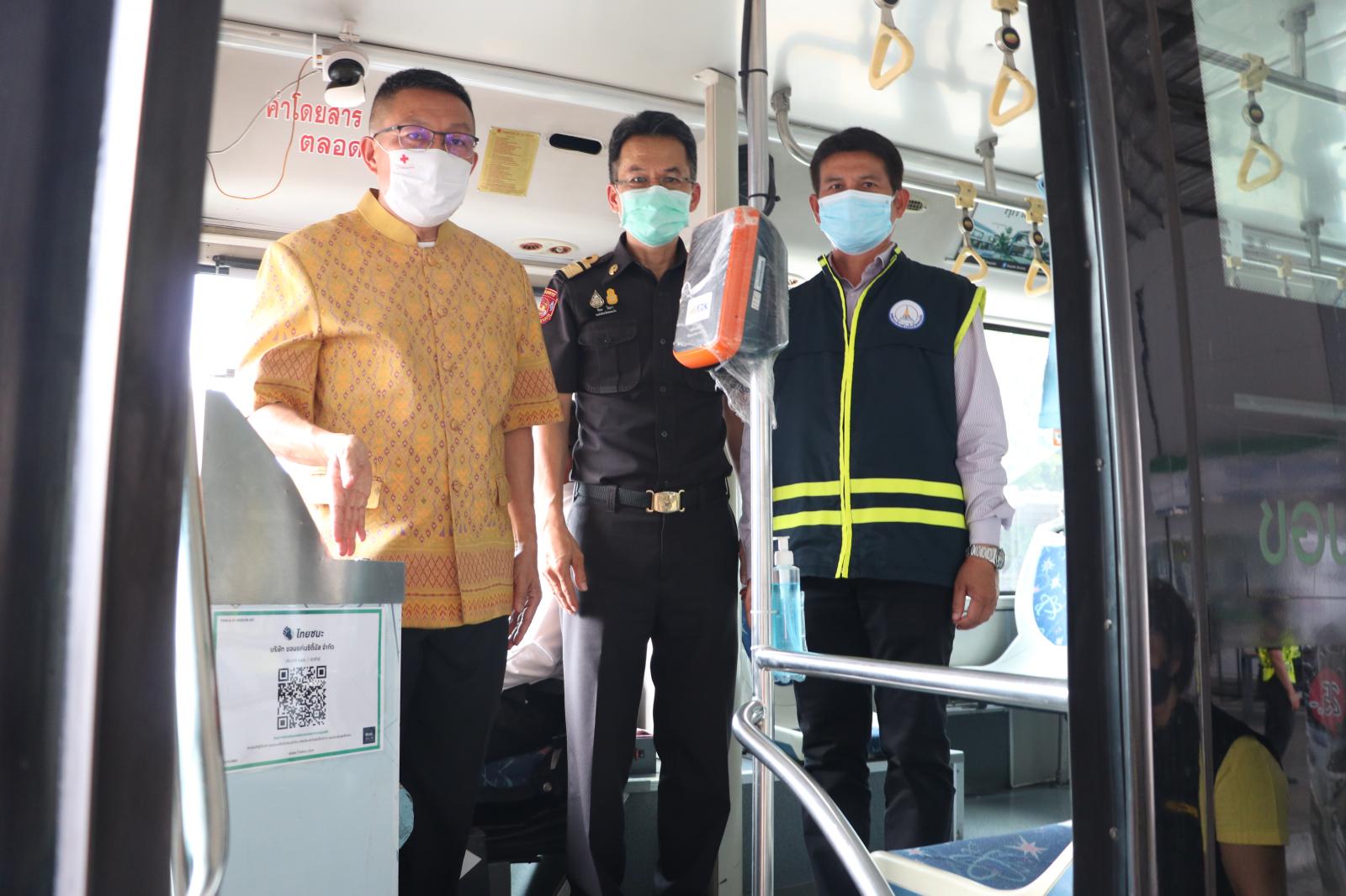 เมื่อวันที่ 22 พฤษภาคม 2563 ดร.พงษ์ศักดิ์ ตั้งวานิชกพงษ์ นายก อบจ.ขอนแก่น มอบหมายให้ นายสิทธิกุล ภูคำวงศ์ รองนายก อบจ.ขอนแก่น พร้อมด้วย นายประสิทธิ์ อุดมธนะธีระ รองปลัด อบจ.ขอนแก่น, นายเพ็ชร มูลป้อม ผอ.กองแผนและงบประมาณ, นายประชิต อึ้งประเสริฐ ผอ.กองกิจการขนส่ง หัวหน้าส่วนราชการ ข้าราชการ อบจ.ขอนแก่น ให้การต้อนรับ ดร.สมศักดิ์ จังตระกุล ผู้ว่าราชการจังหวัดขอนแก่น และคณะ ในโอกาสลงพื้นที่ตรวจติดตามมาตรการคัดกรองและป้องกันการแพร่ระบาดของเชื้อไวรัสโควิด-19 พร้อมกำหนดมาตรการให้มีหน่วยเคลื่อนที่ออกให้คำแนะนำและอำนวยความสะดวกให้กับผู้ประกอบการร้านค้า ในการลงทะเบียนร้านค้าผ่านแพลตฟอร์มไทยชนะ ณ สถานีขนส่งผู้โดยสารจังหวัดขอนแก่น แห่งที่ 3 อ.เมืองขอนแก่น จ.ขอนแก่น