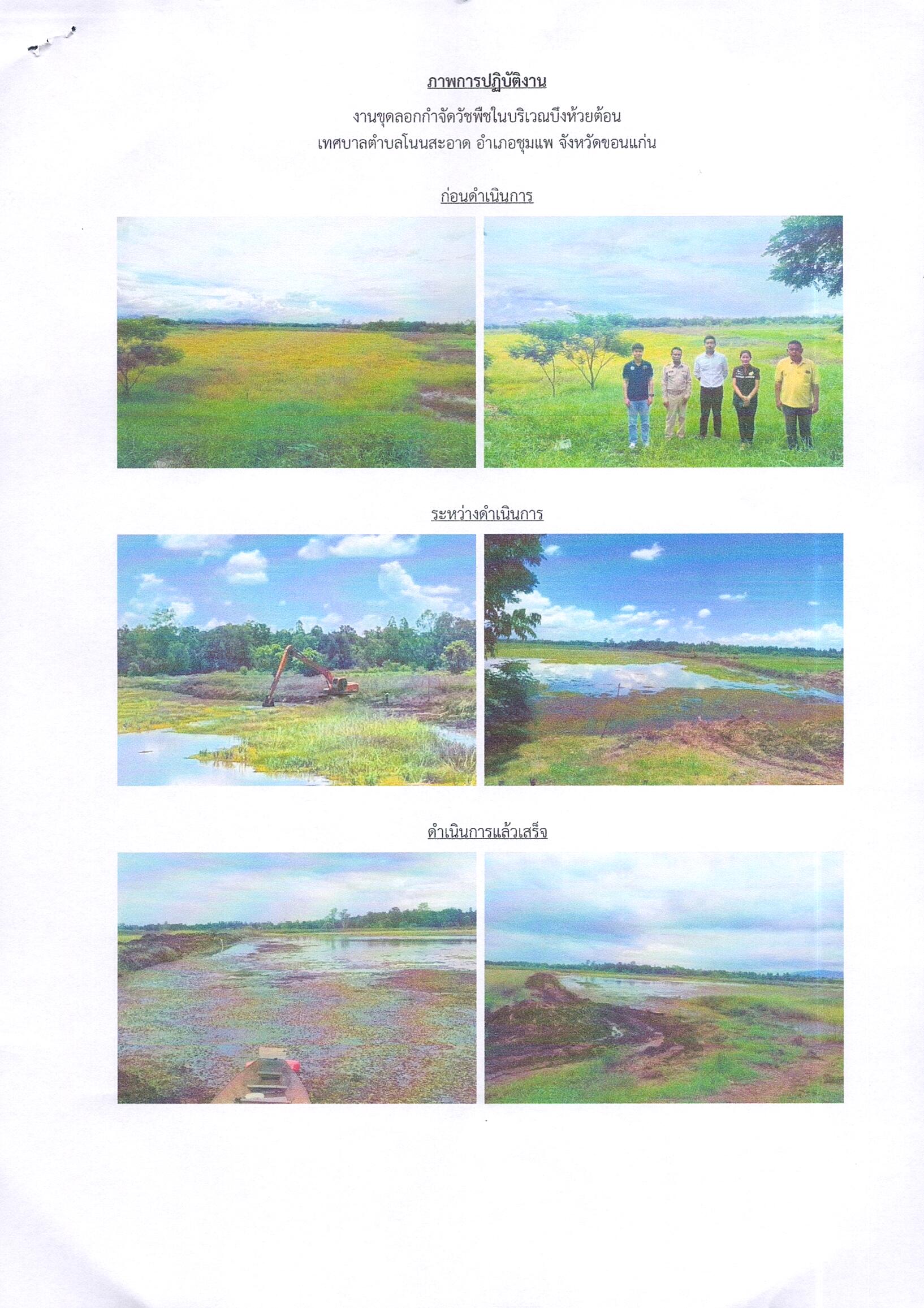 สำนักช่าง ฝ่ายสาธารณูปโภค นำเครื่องจักรกลเข้าดำเนินการกำจัดวัชพืชในบริเวณบึงห้วยต้อน เทศบาลตำบลโนนสะอาด อ.ชุมแพ จ.ขอนแก่น
