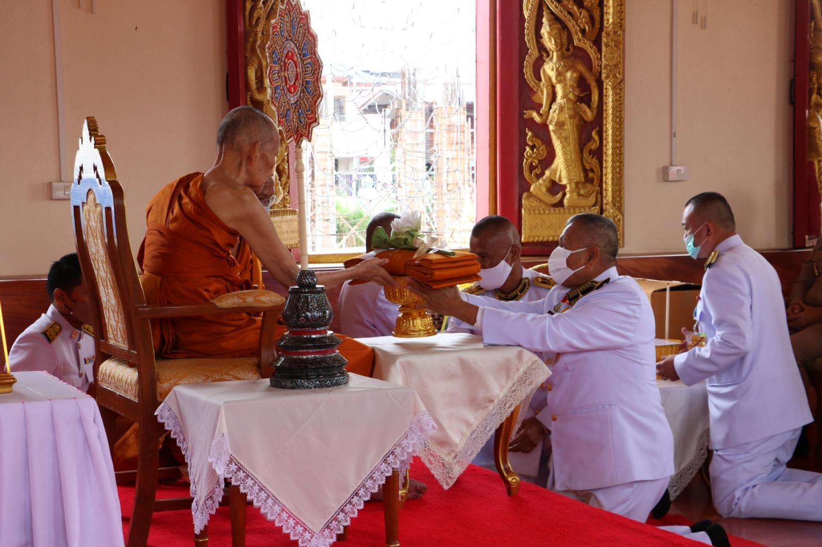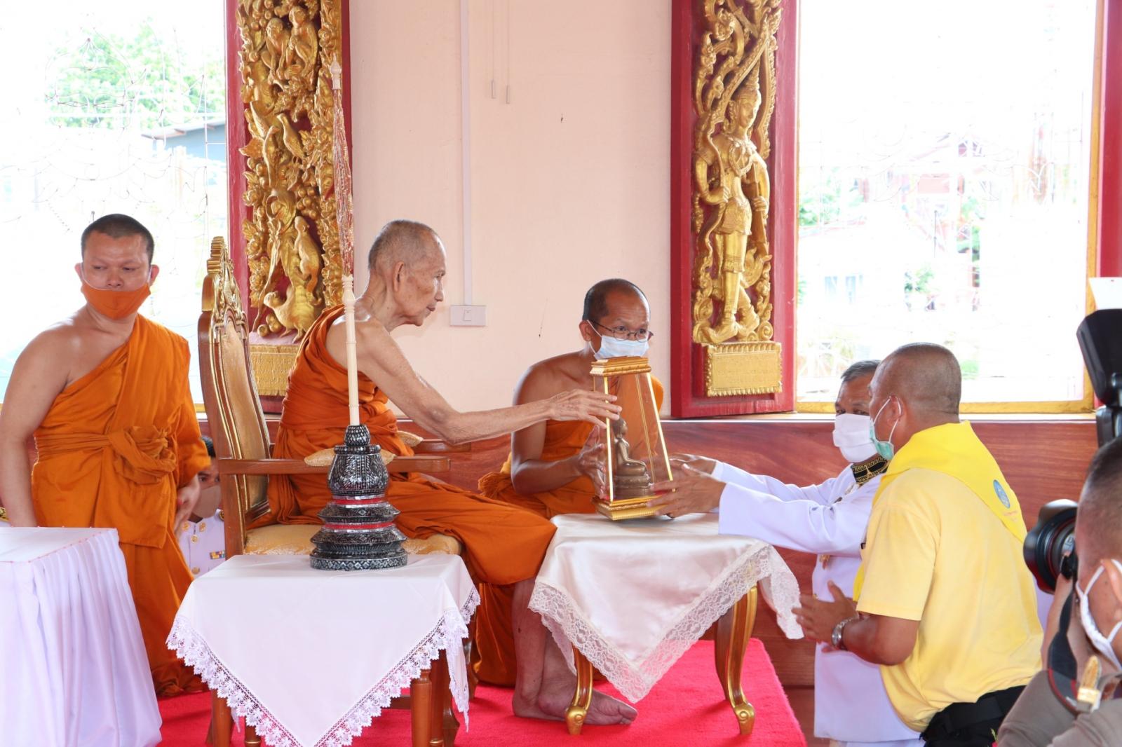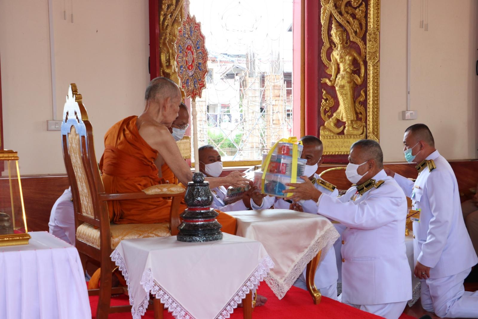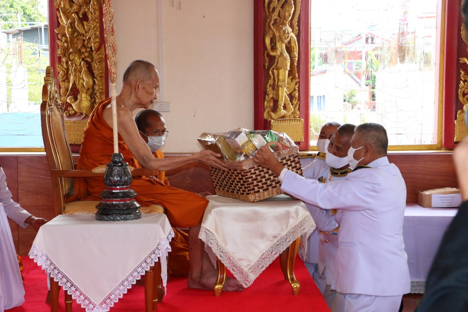 ร่วมพิธีอัญเชิญผ้าไตรและถวายเครื่องสังฆทานพระราชทาน ถวายแด่พระครูสิริธรรมนิเทศ อายุ 84 พรรษา 64