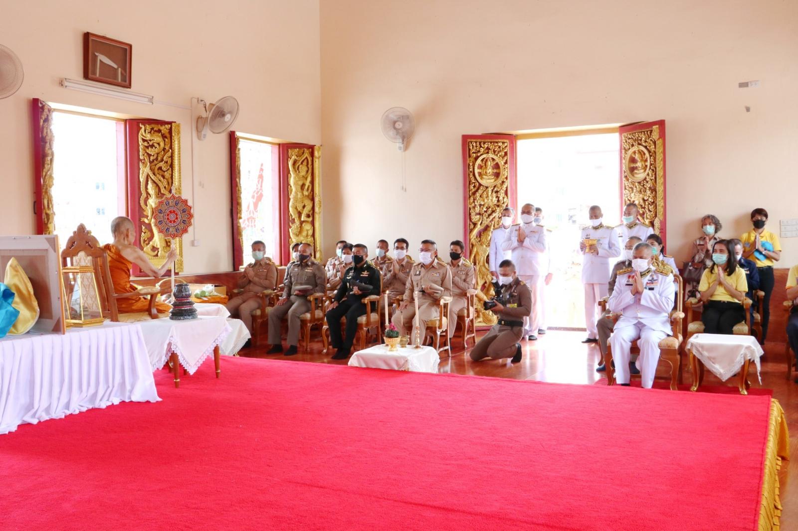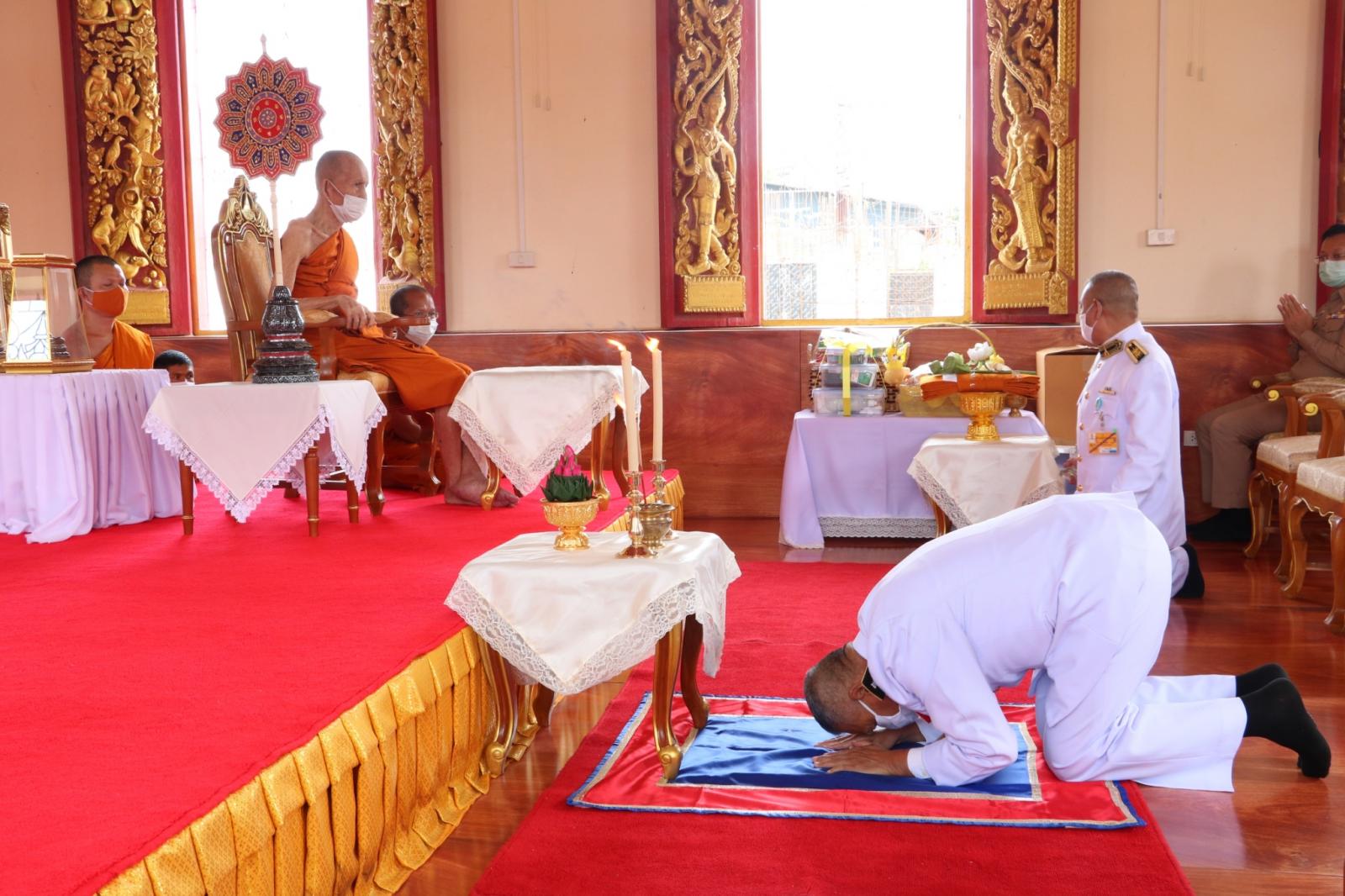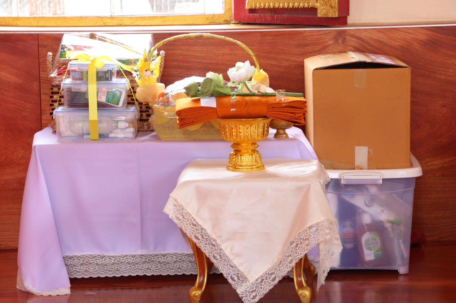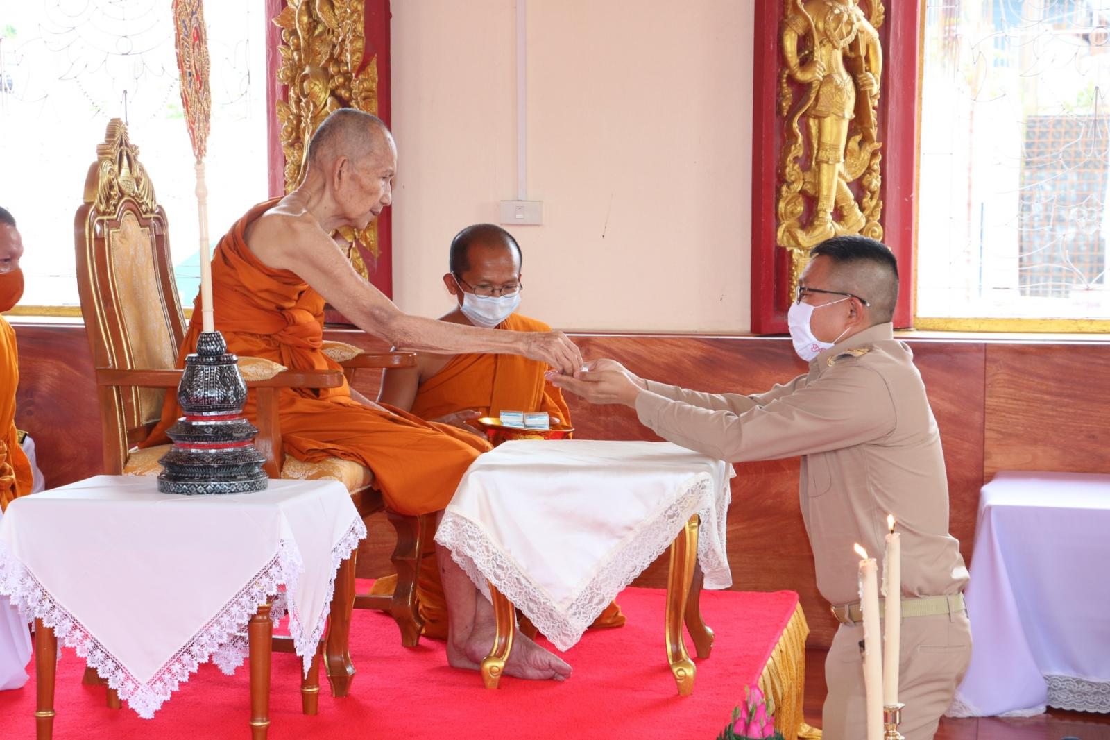 ร่วมพิธีอัญเชิญผ้าไตรและถวายเครื่องสังฆทานพระราชทาน ถวายแด่พระครูสิริธรรมนิเทศ อายุ 84 พรรษา 64