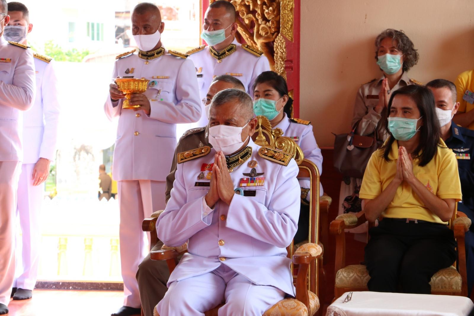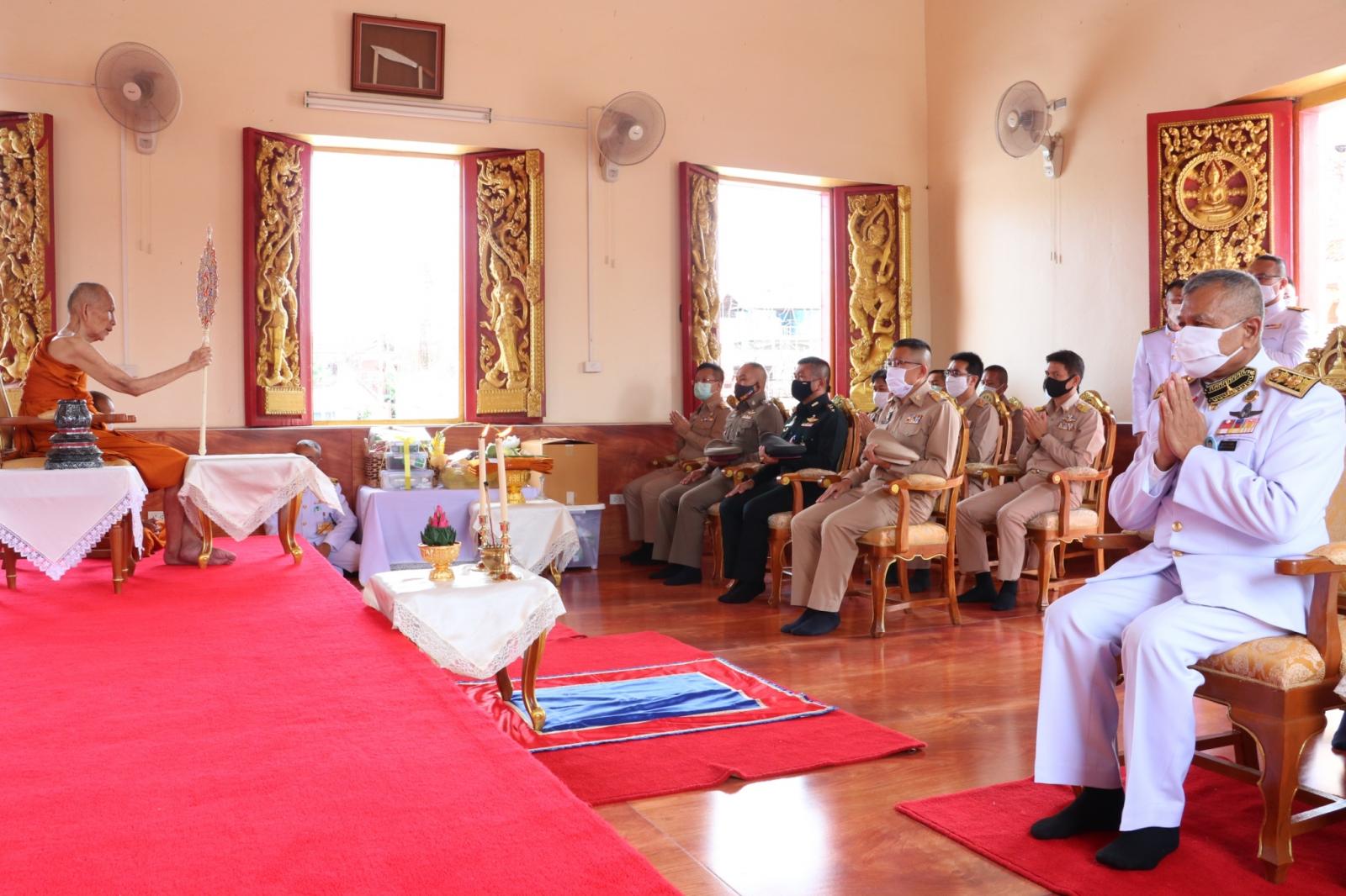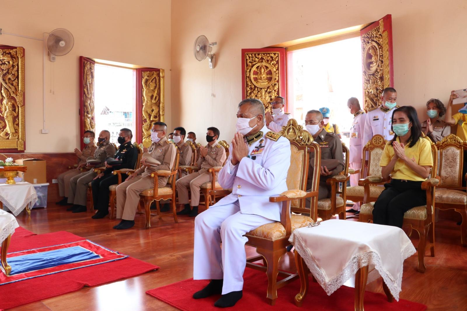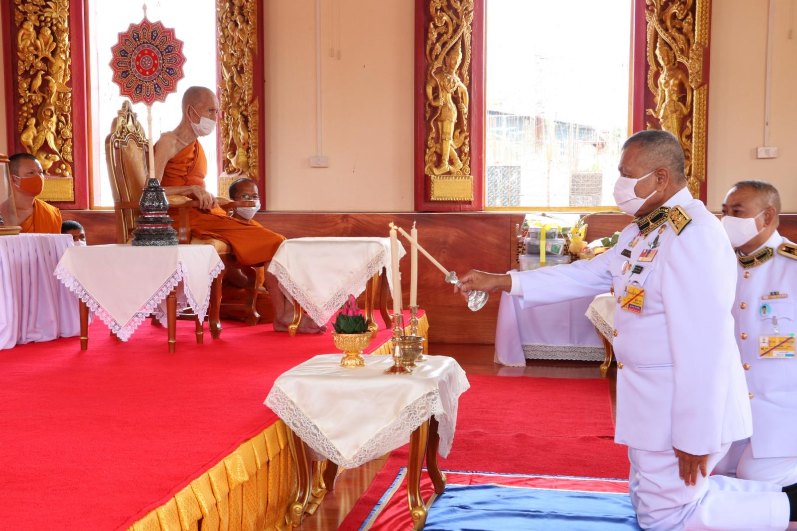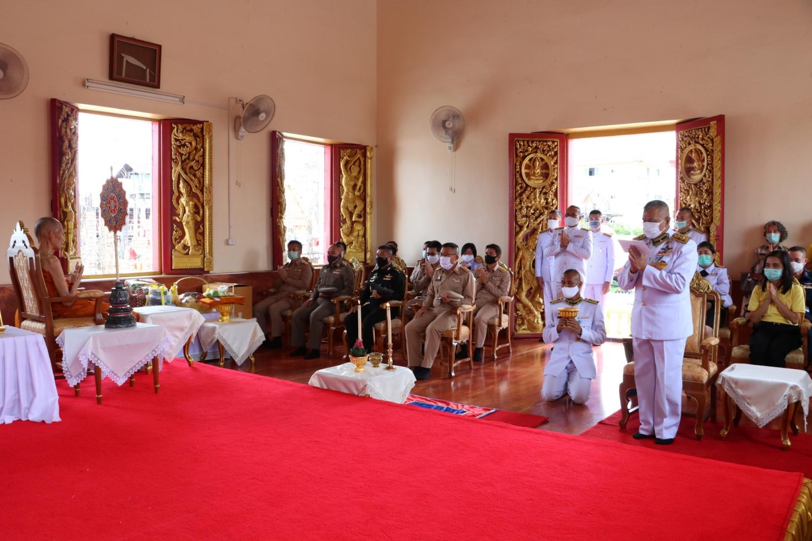 ร่วมพิธีอัญเชิญผ้าไตรและถวายเครื่องสังฆทานพระราชทาน ถวายแด่พระครูสิริธรรมนิเทศ อายุ 84 พรรษา 64