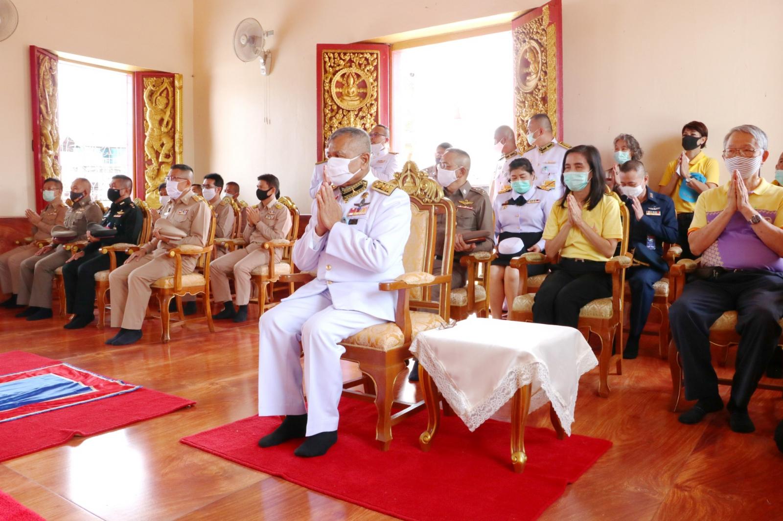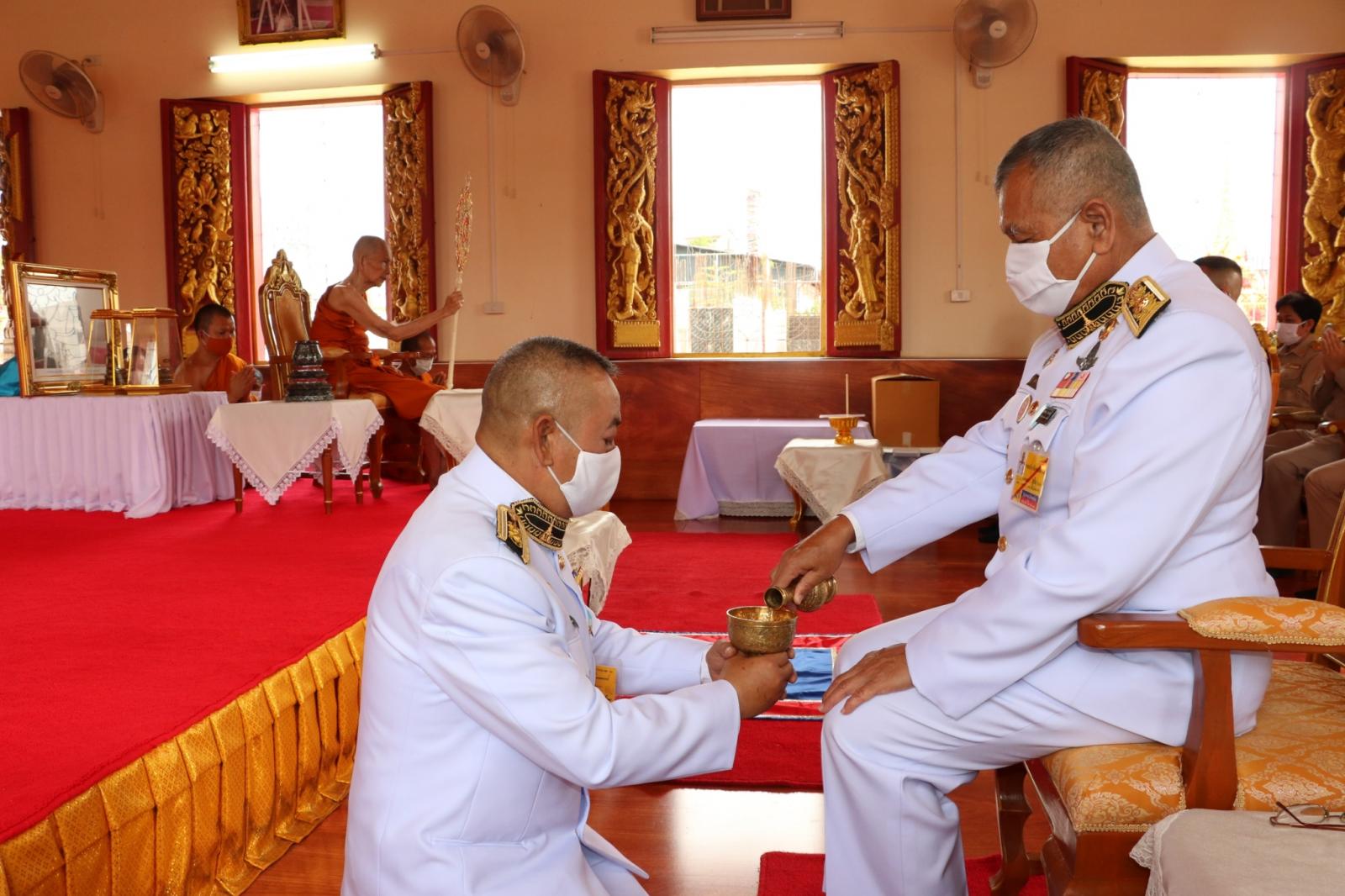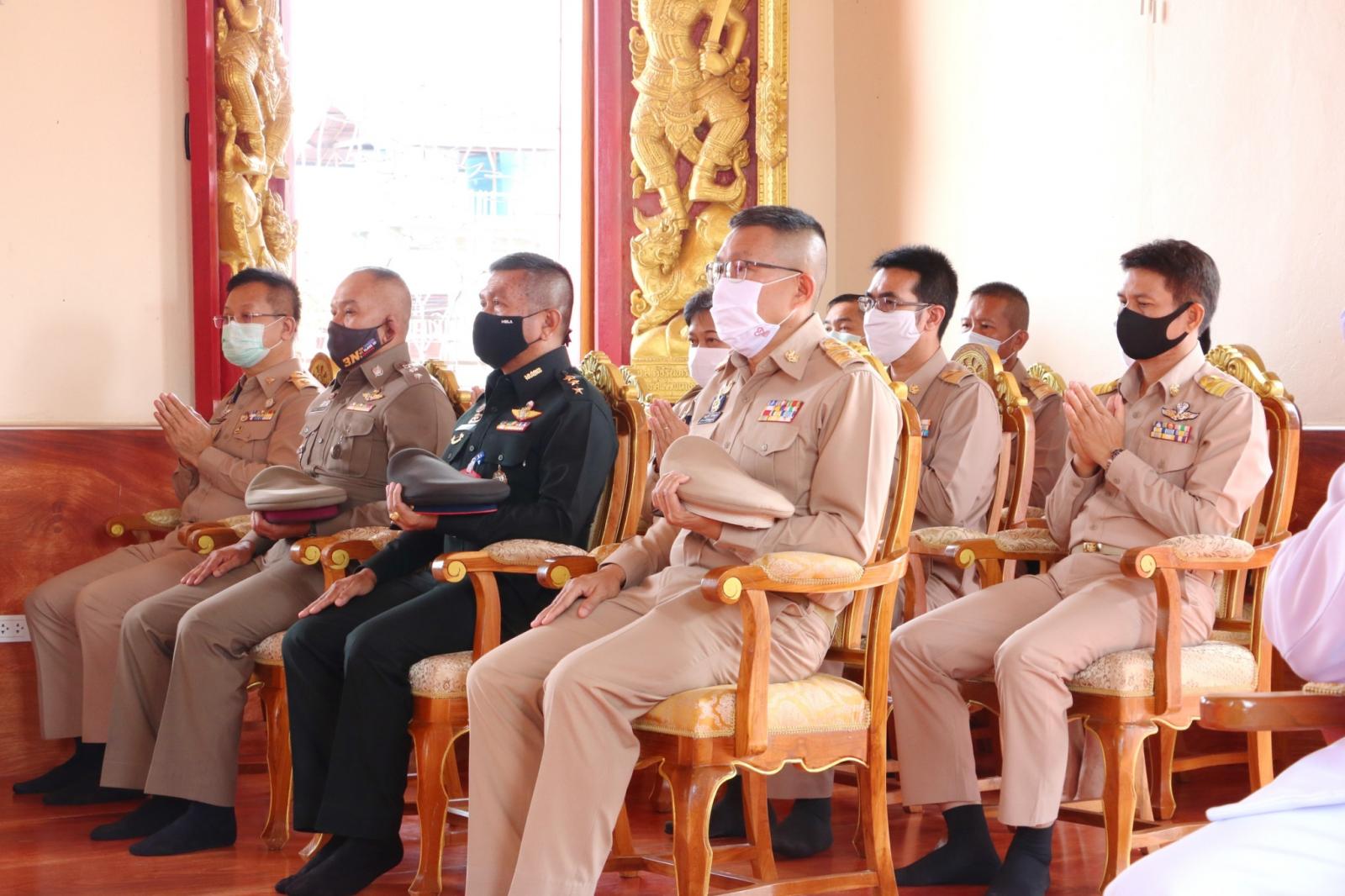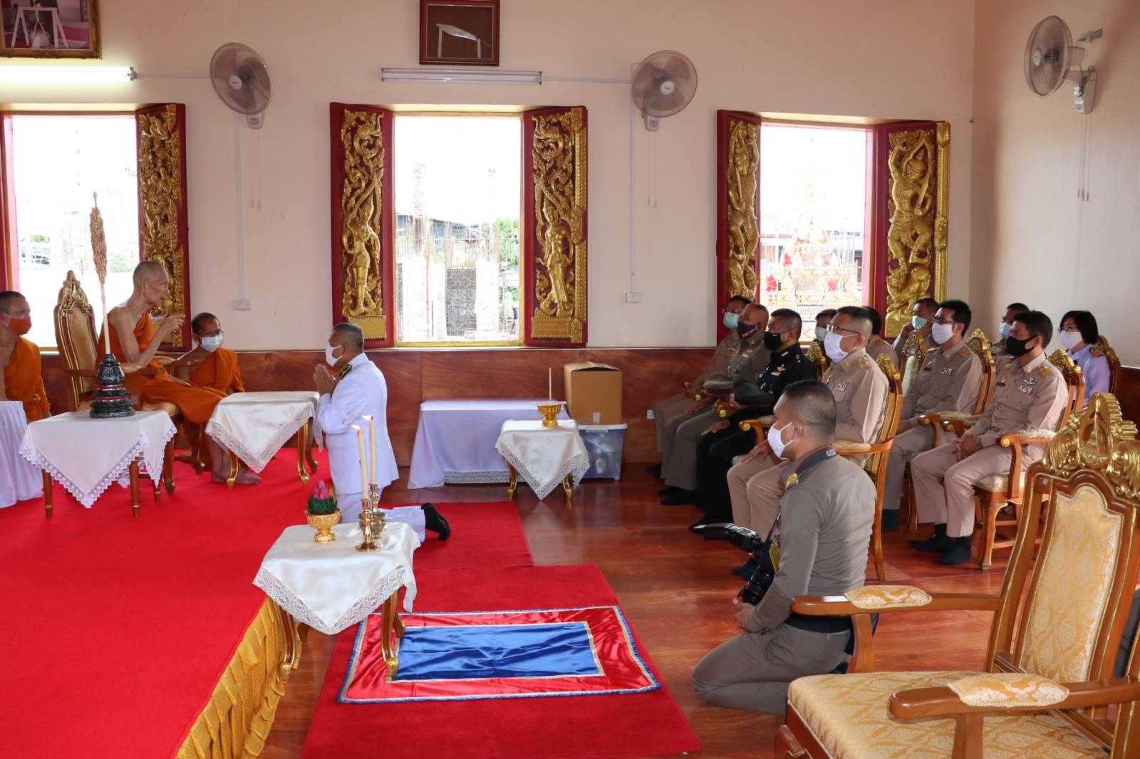 ร่วมพิธีอัญเชิญผ้าไตรและถวายเครื่องสังฆทานพระราชทาน ถวายแด่พระครูสิริธรรมนิเทศ อายุ 84 พรรษา 64