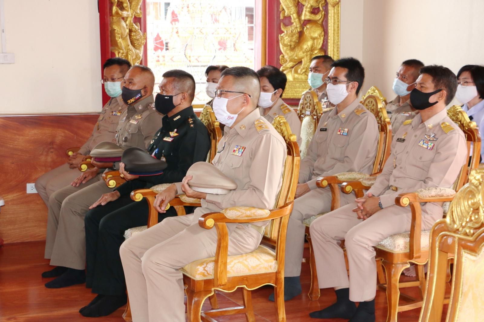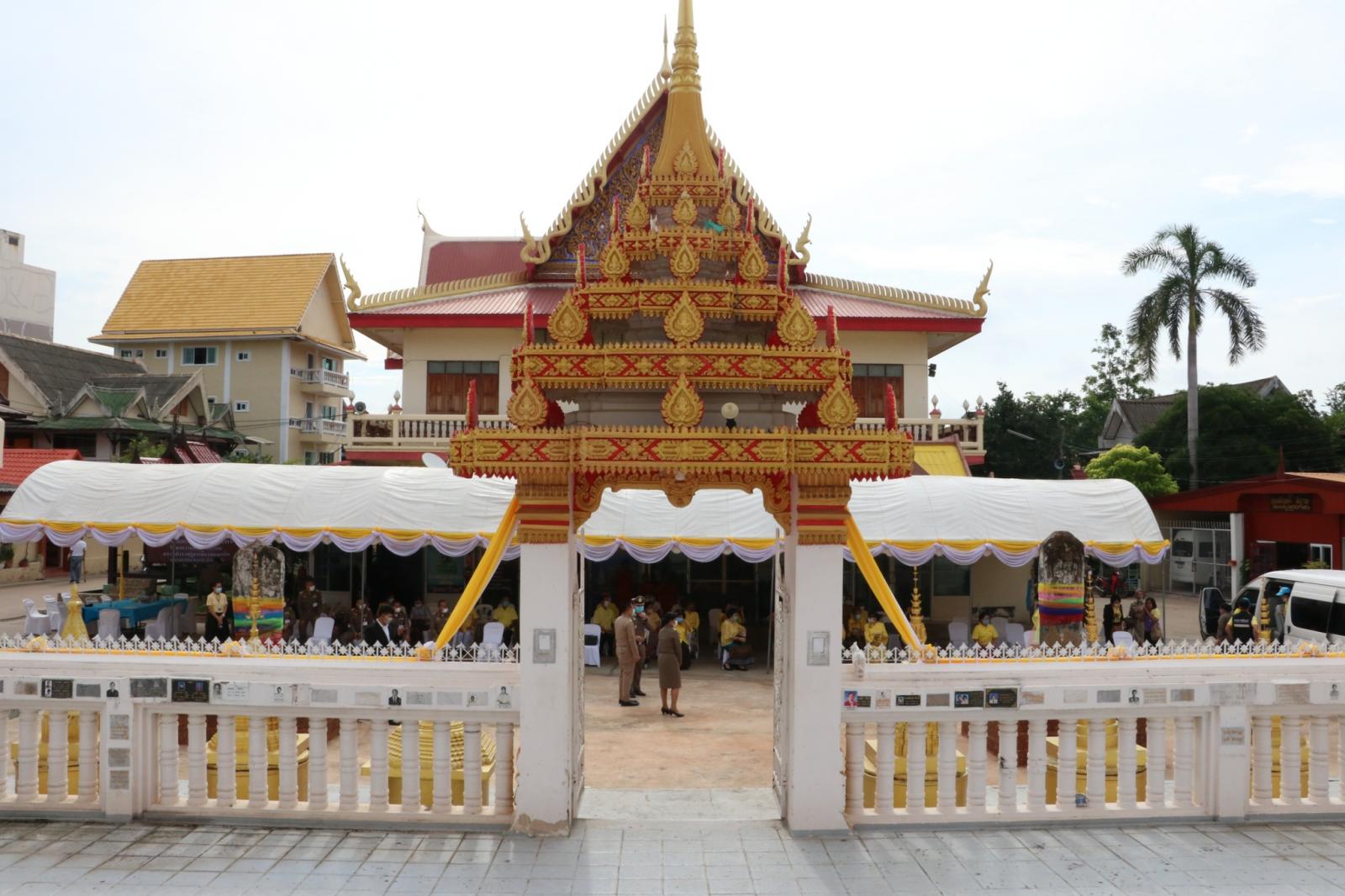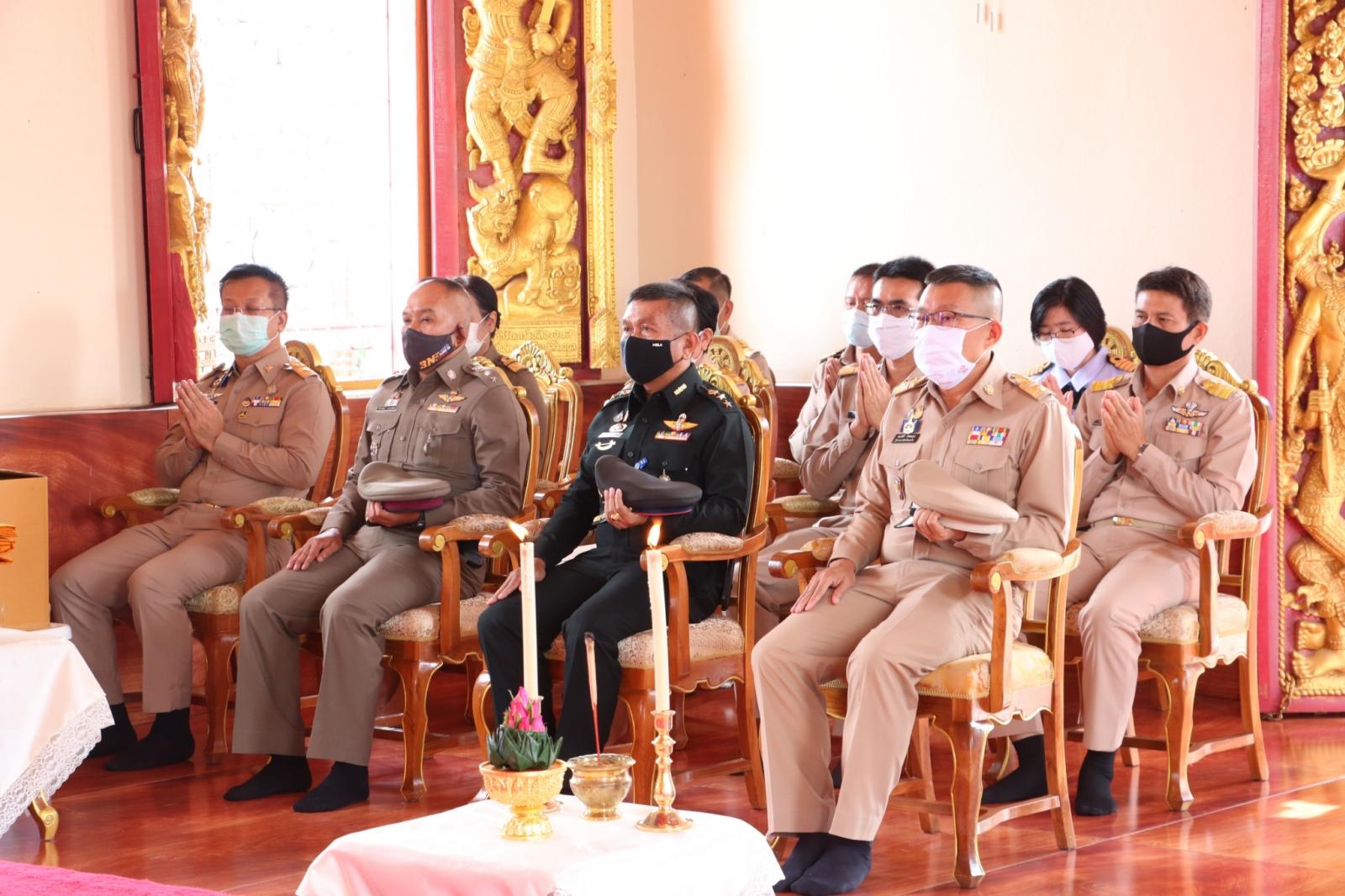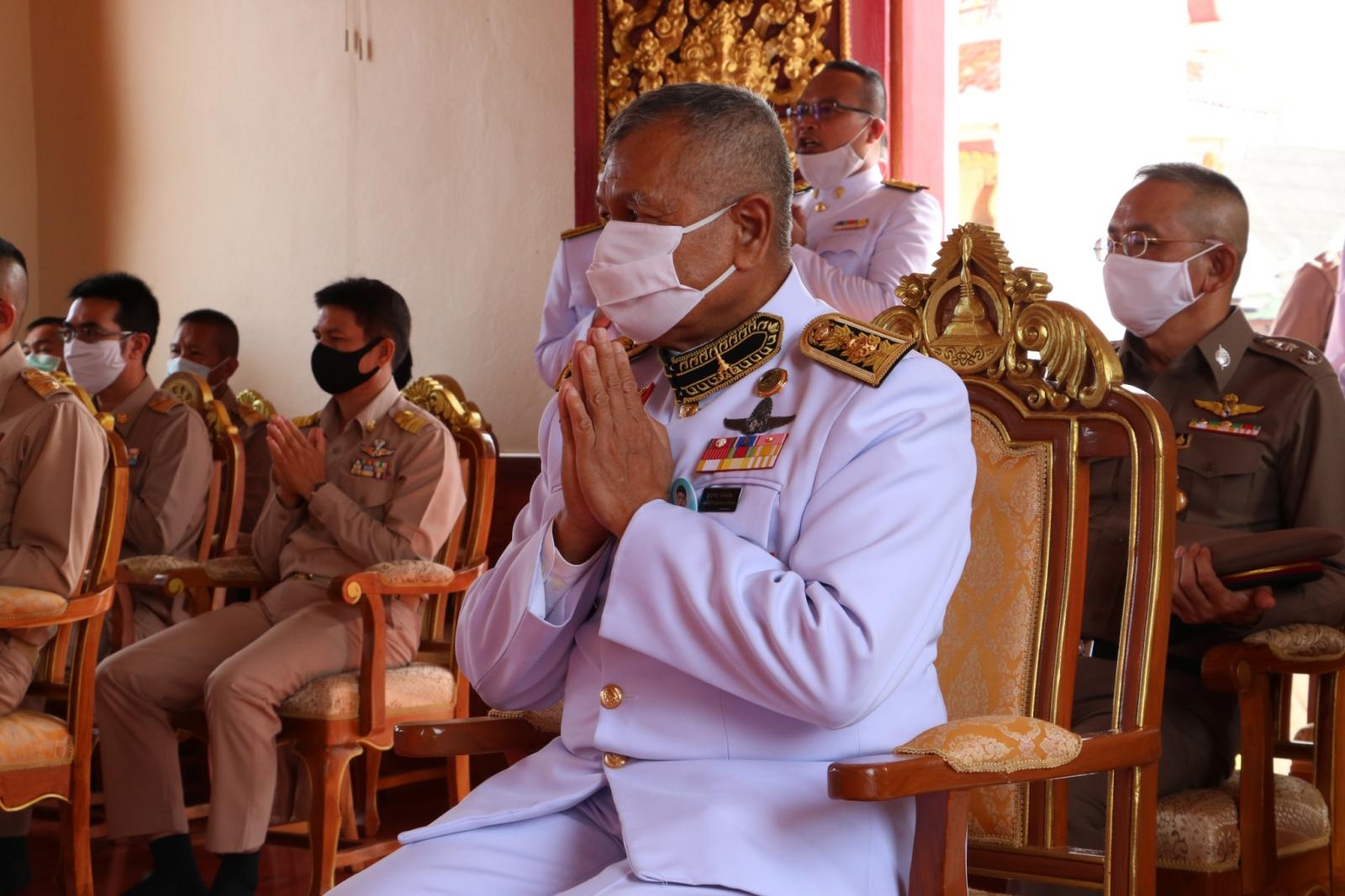 ร่วมพิธีอัญเชิญผ้าไตรและถวายเครื่องสังฆทานพระราชทาน ถวายแด่พระครูสิริธรรมนิเทศ อายุ 84 พรรษา 64