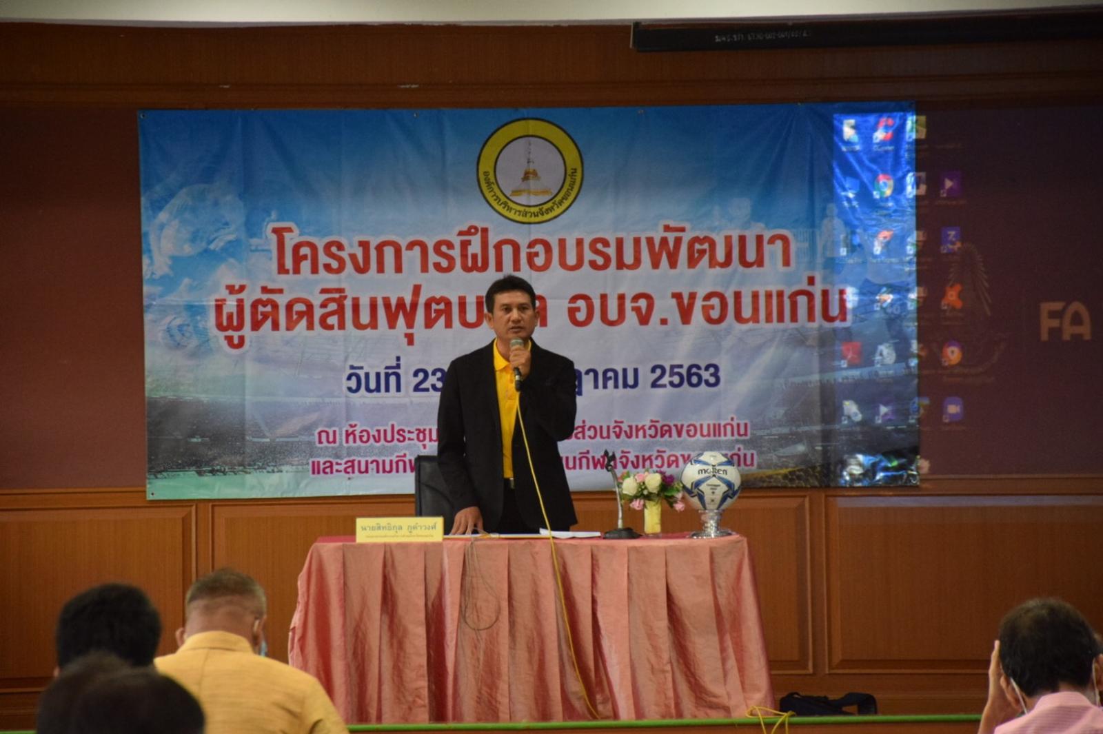 วันที่ 22 กรกฎาคม 2563 เวลา 09.00 น. ดร.พงษ์ศักดิ์ ตั้งวานิชกพงษ์ นายก อบจ.ขอนแก่น มอบหมายให้ นายสิทธิกุล ภูคำวงศ์ รองนายก อบจ.ขอนแก่น เป็นประธานเปิด โครงการอบรมพัฒนาผู้ตัดสินกีฬาฟุตบอล ณ มหาวิทยาลัยมหาจุฬาลงกรณราชวิทยาลัย วิทยาเขตขอนแก่น